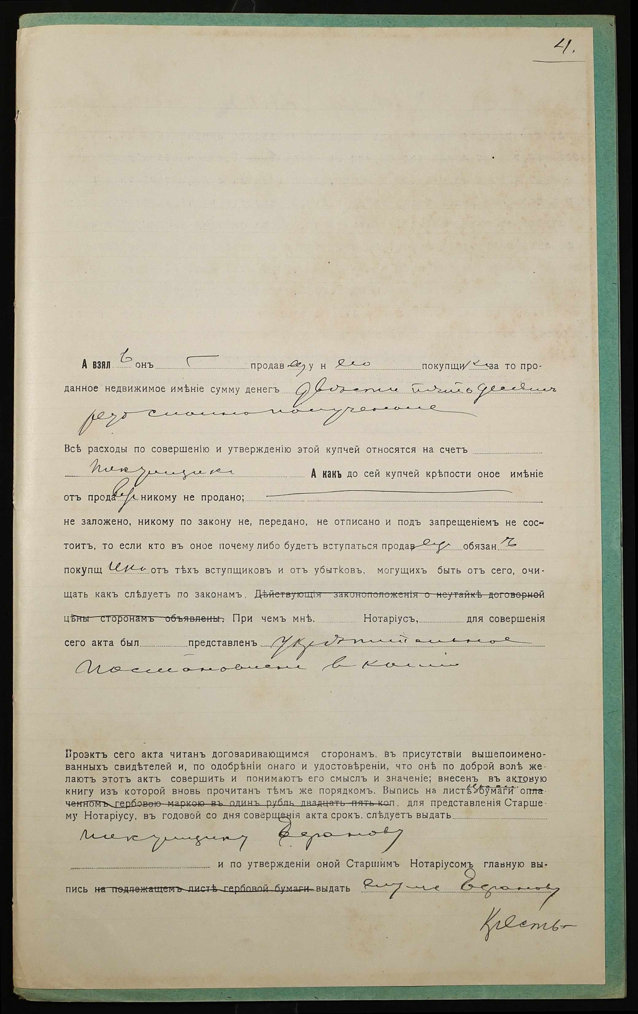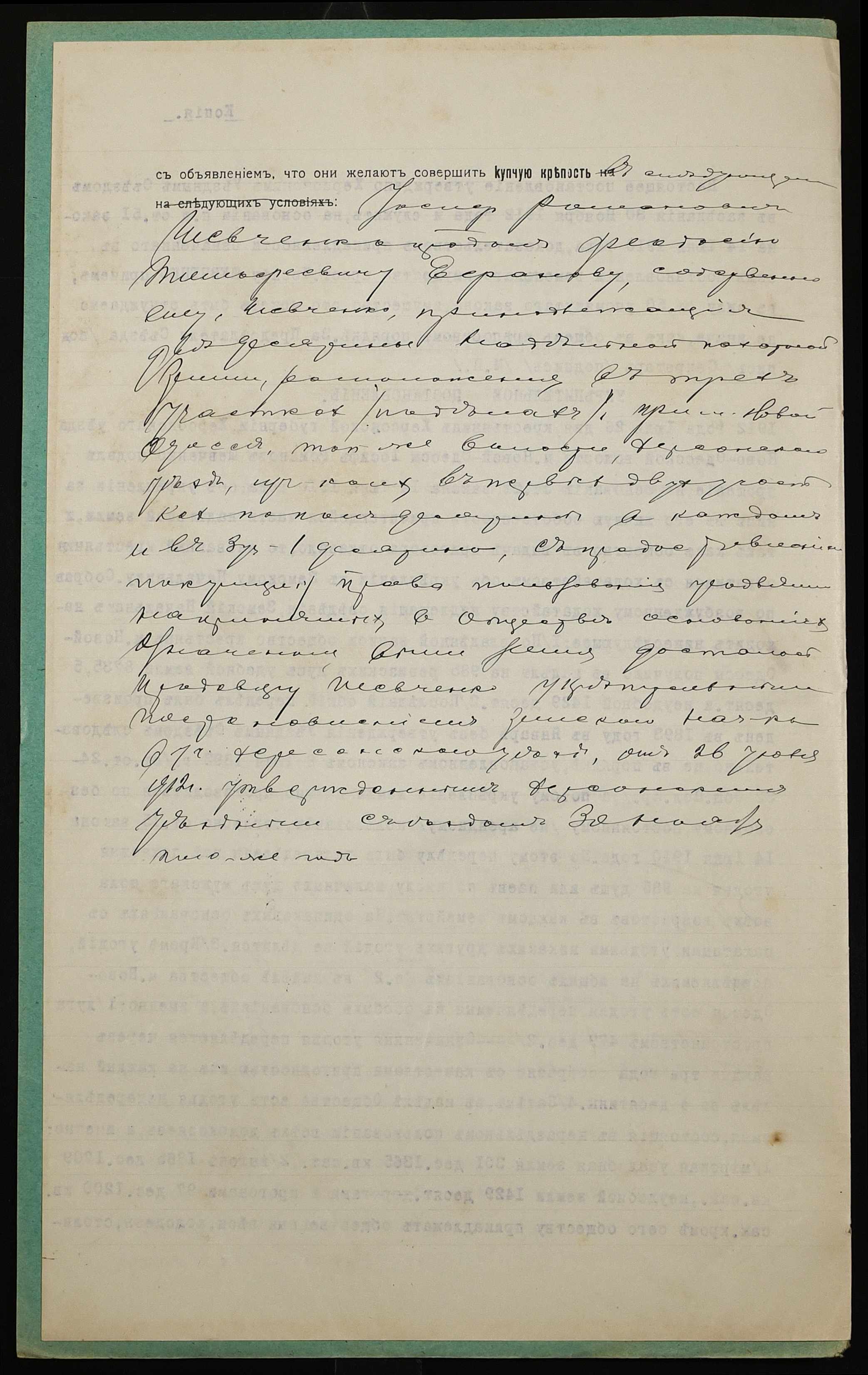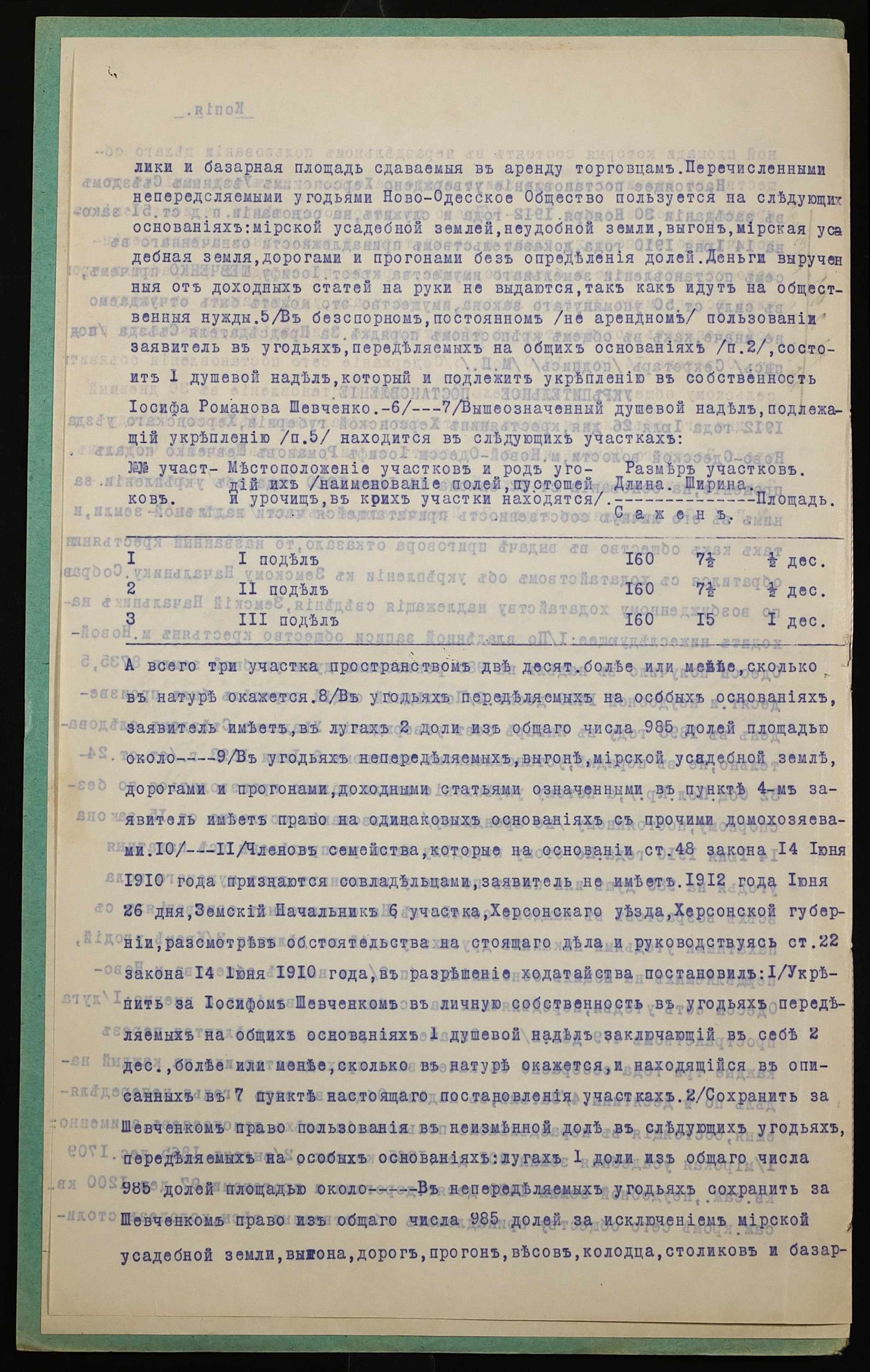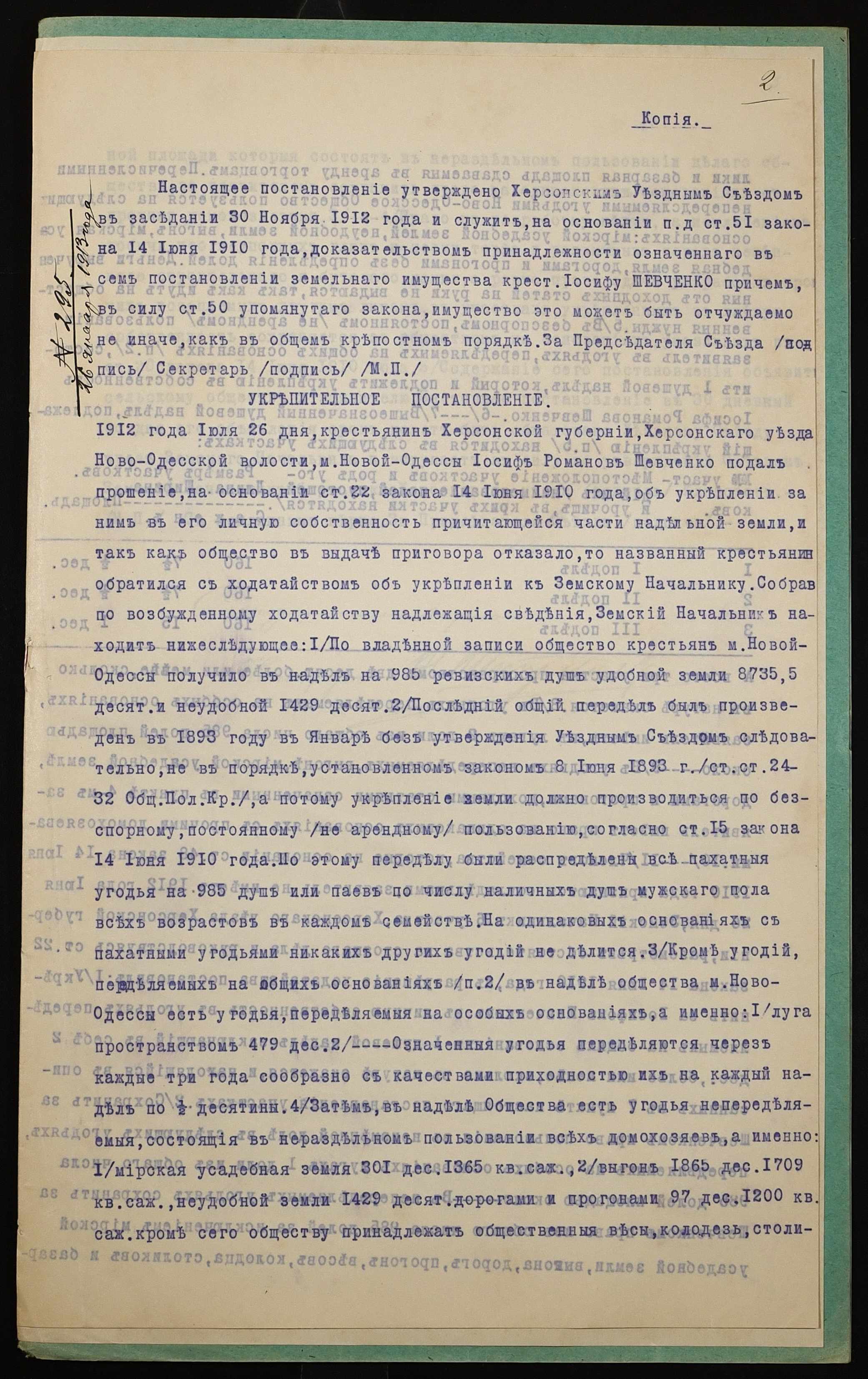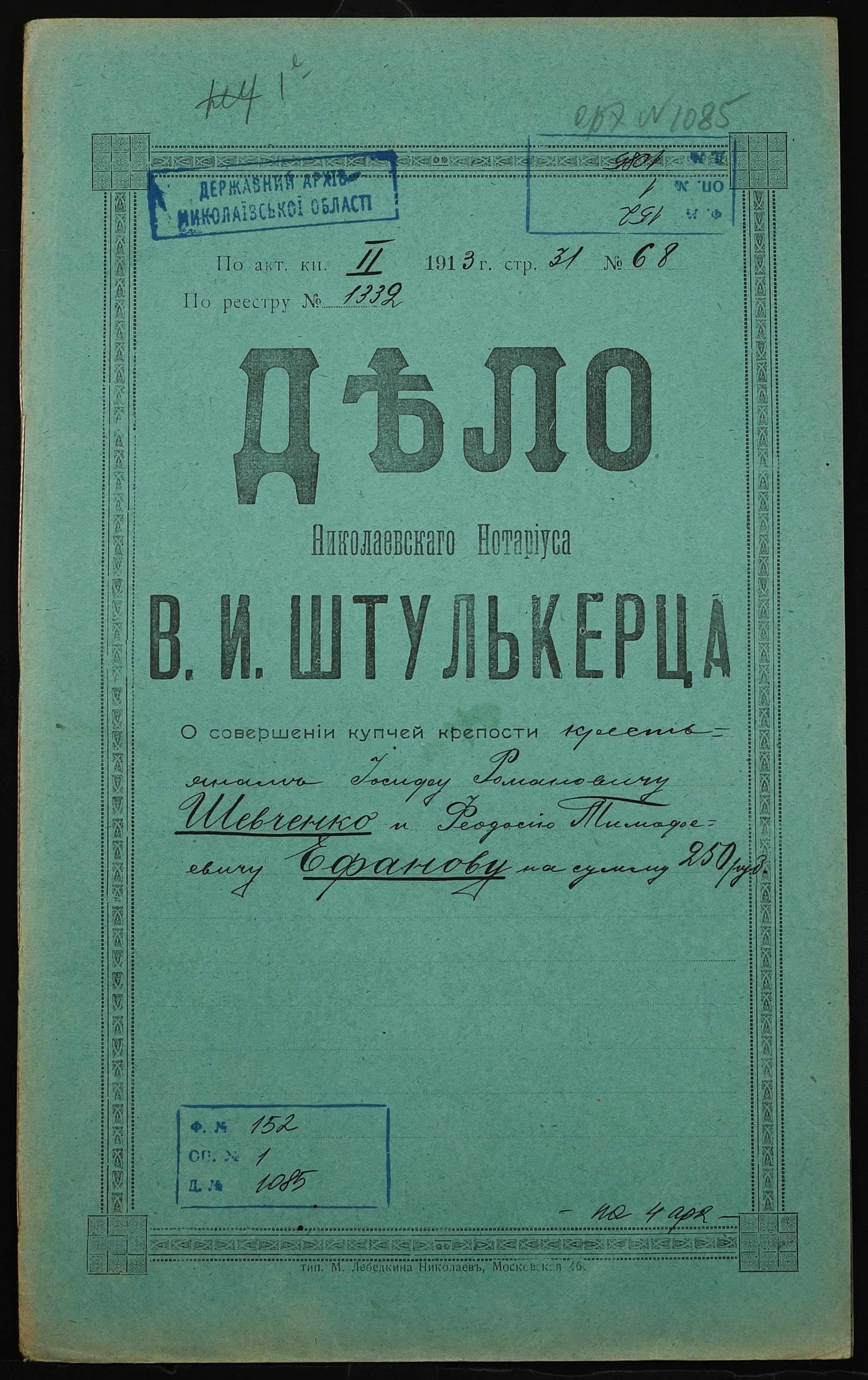 • • • • Справа № 1085 “Справа про вчинення купчої про продаж землі селянином Шевченком Йосипом Романовичем (Шевченко Иосифом Романовичем) на користь селянина Єфанова Феодосія Тимофійовича (Ефанова Феодосия Тимофеевича)”