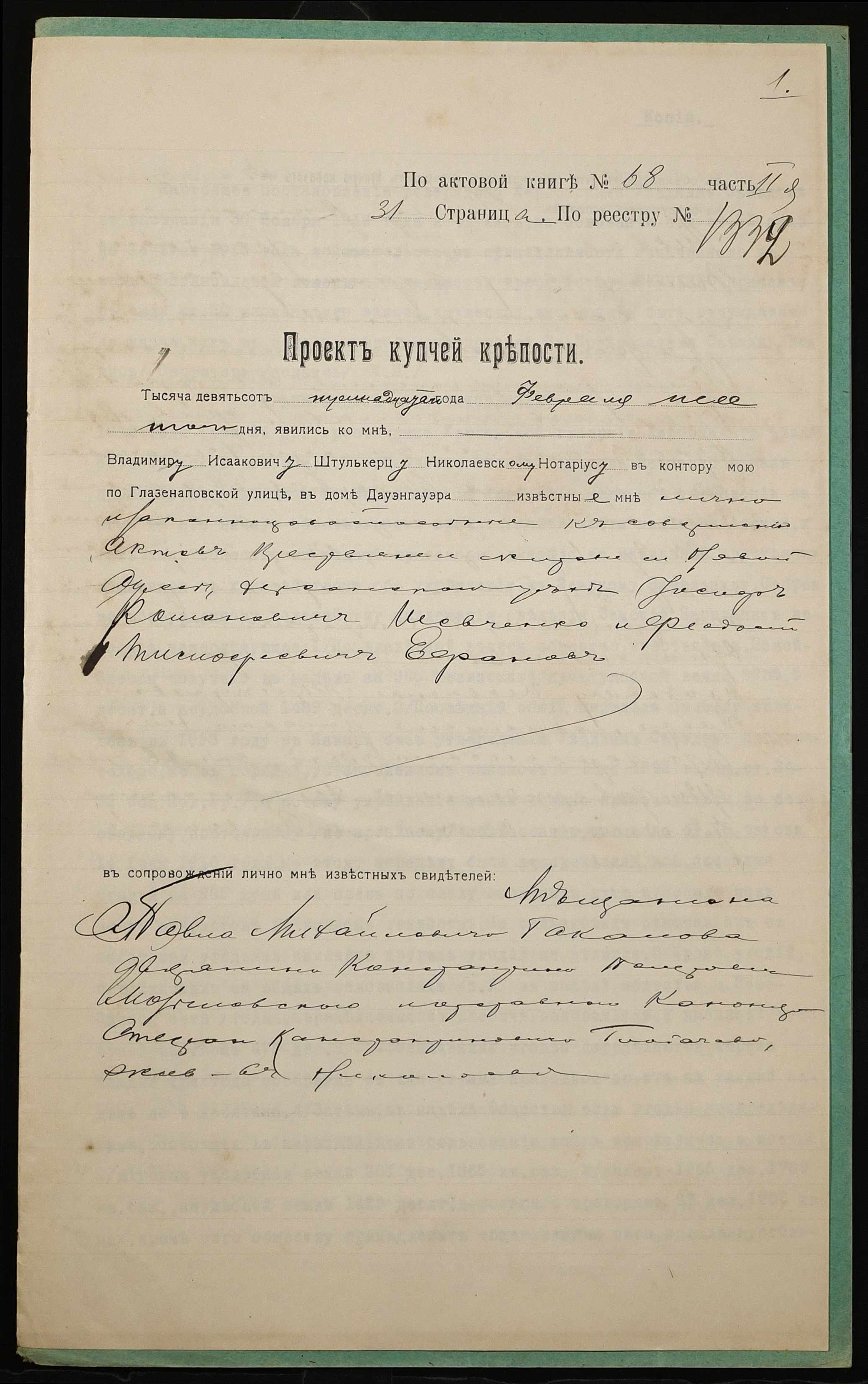 ◦ ◦ Фонд № 152 “Контора миколаївського нотаріуса Херсонського окружного суду Штулькерца Володимира Ісааковича”