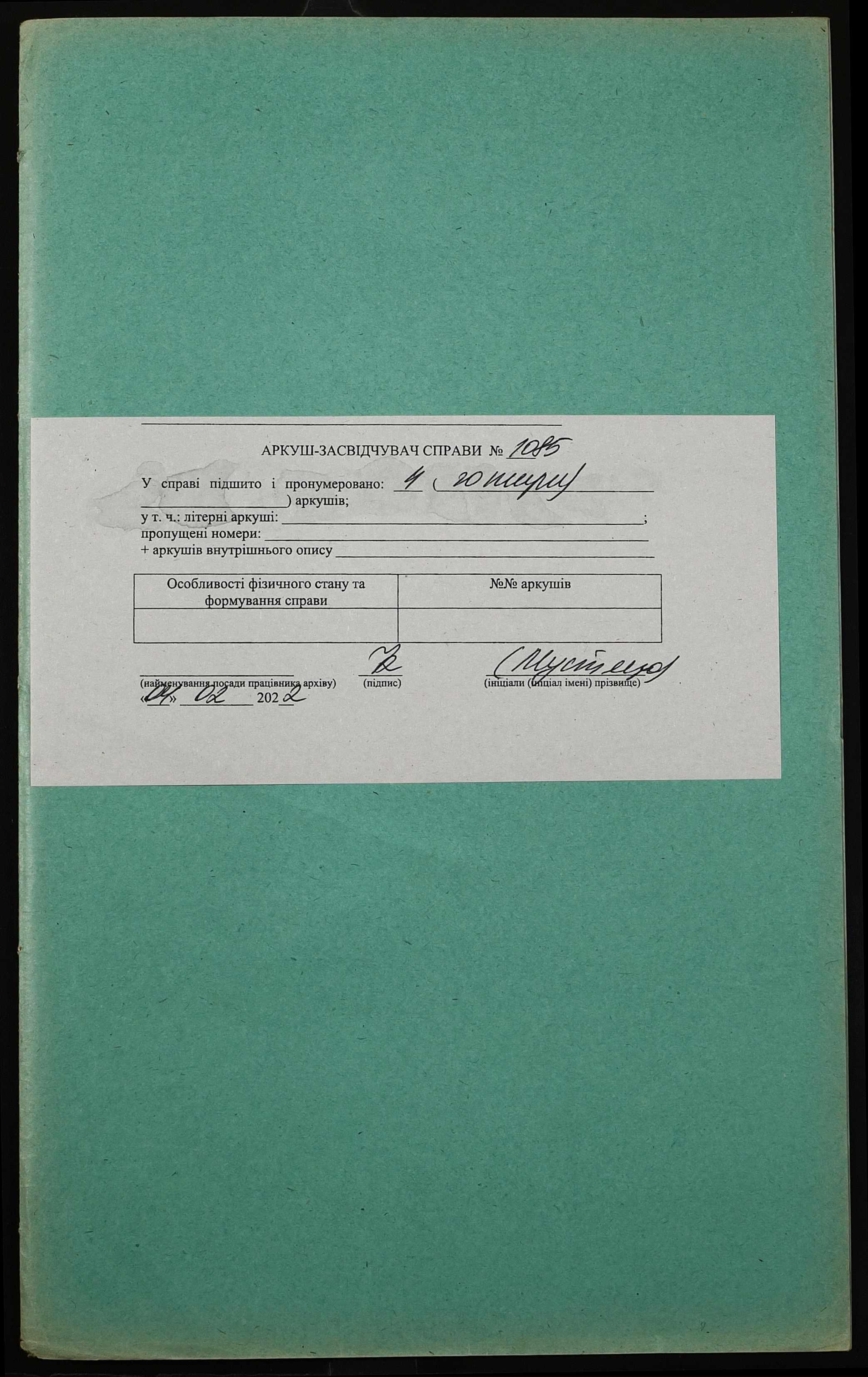 Фонд 152 / Опис 1 / Справа 1085