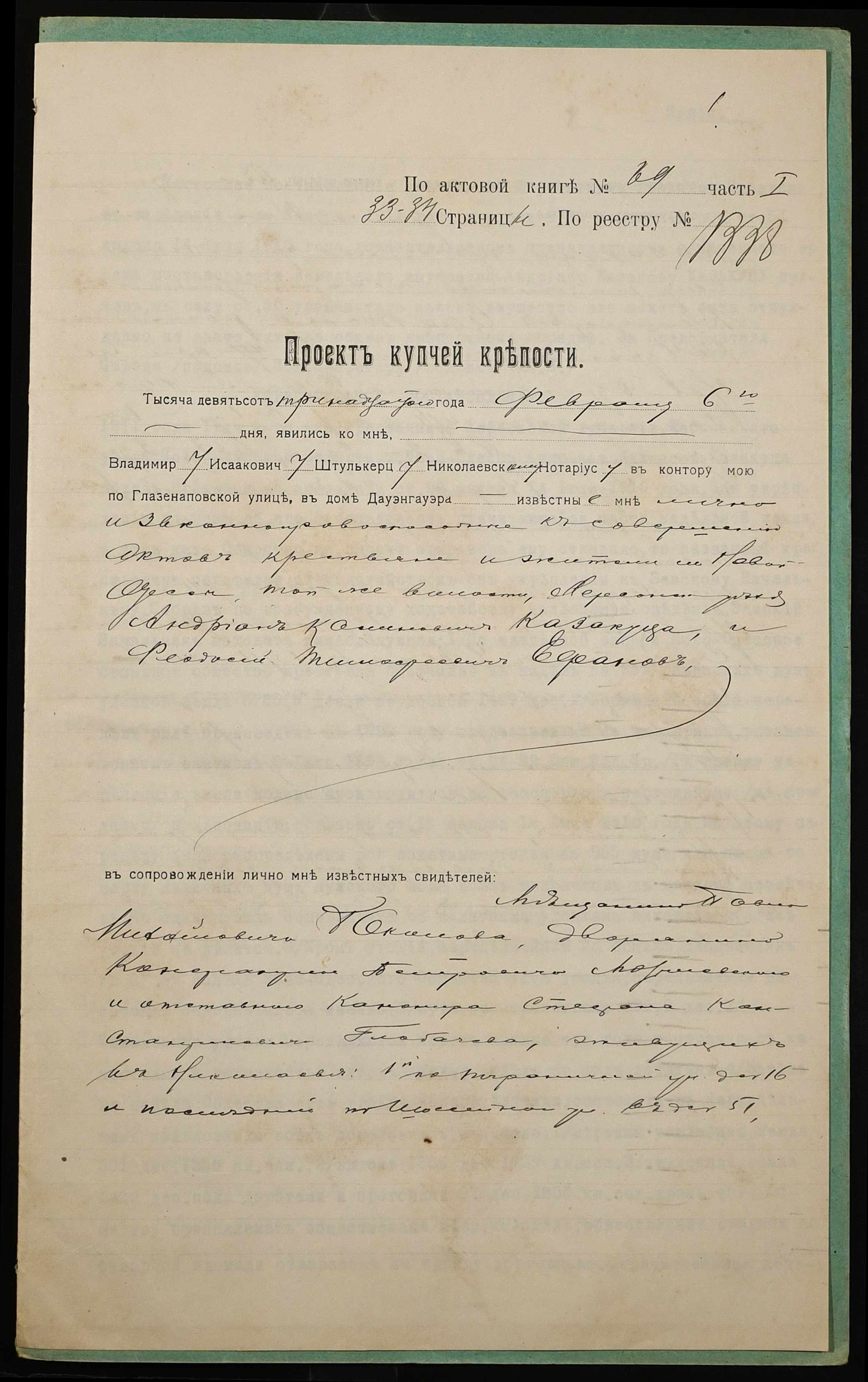 ◦ ◦ Фонд № 152 “Контора миколаївського нотаріуса Херсонського окружного суду Штулькерца Володимира Ісааковича”