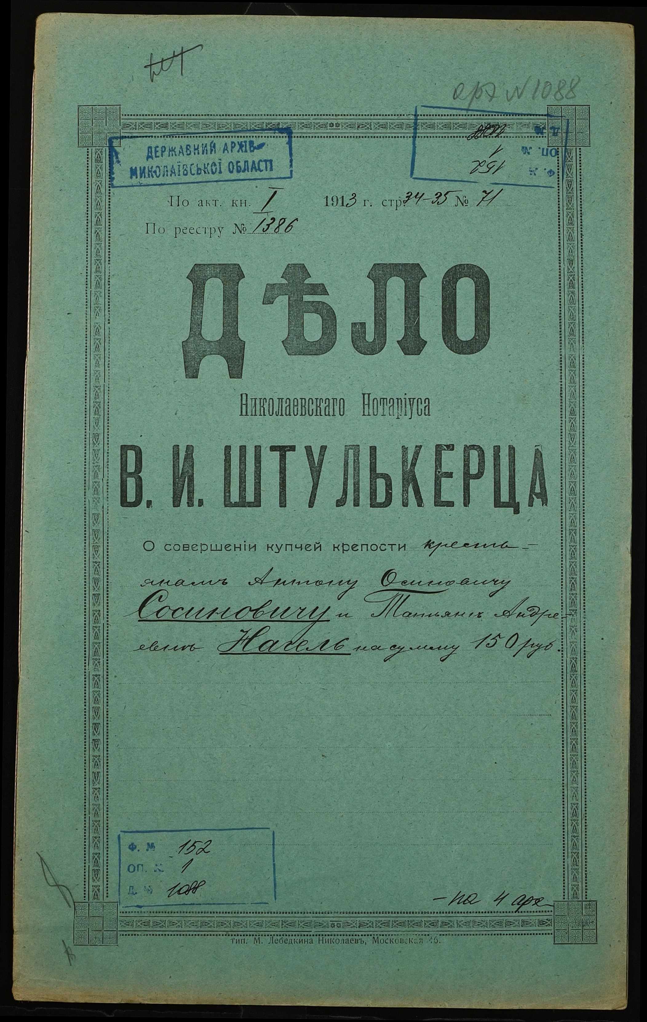 ◦ ◦ Фонд № 152 “Контора миколаївського нотаріуса Херсонського окружного суду Штулькерца Володимира Ісааковича”