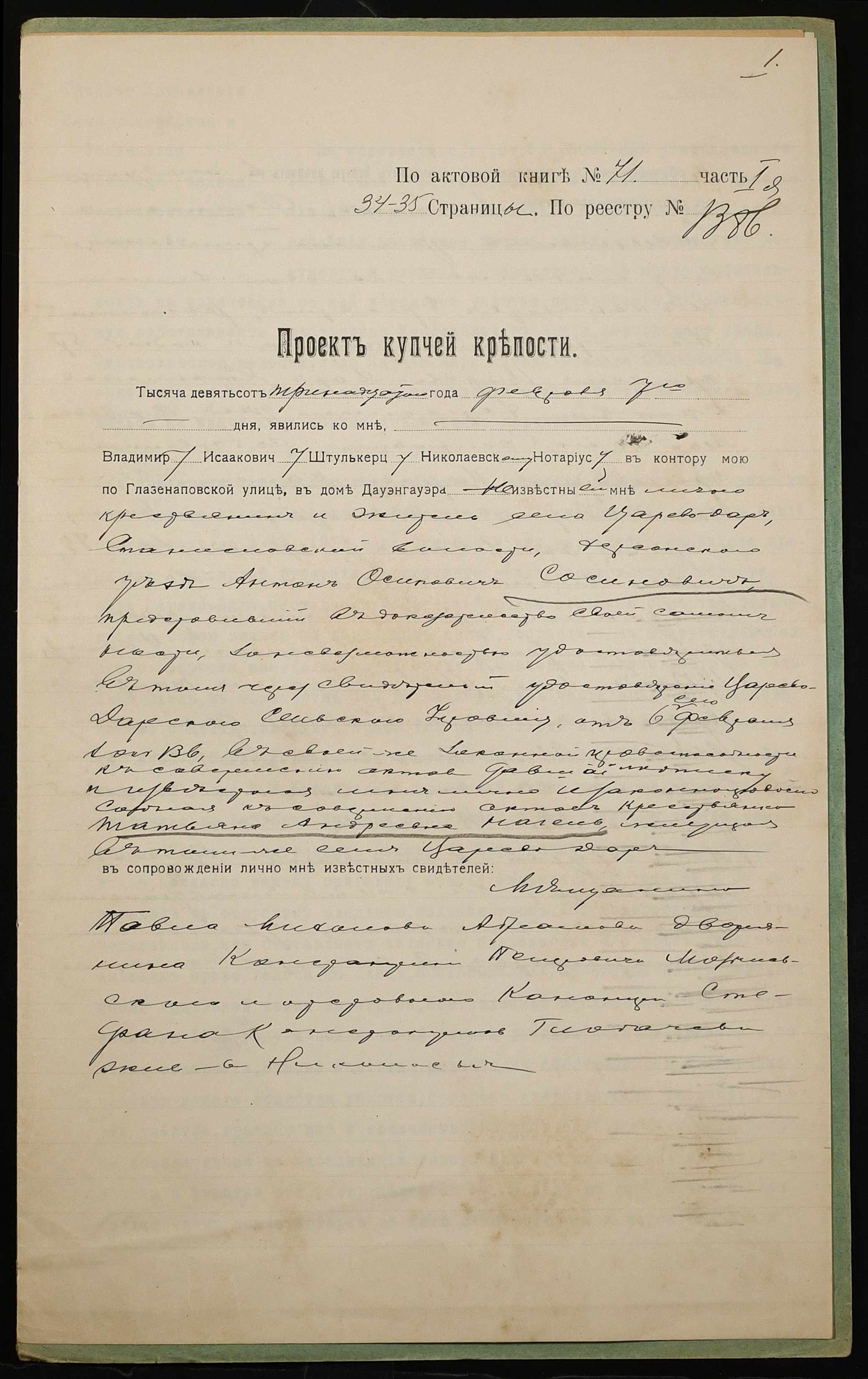 • • • • Справа № 1088 “Справа про вчинення купчої про продаж землі селянином Сосиновичем Антоном Осиповичем (Сосиновичем Антоном Осиповичем) на користь селянки Нагель Тетяни Андріївни (Нагель Татьяны Андреевны)”