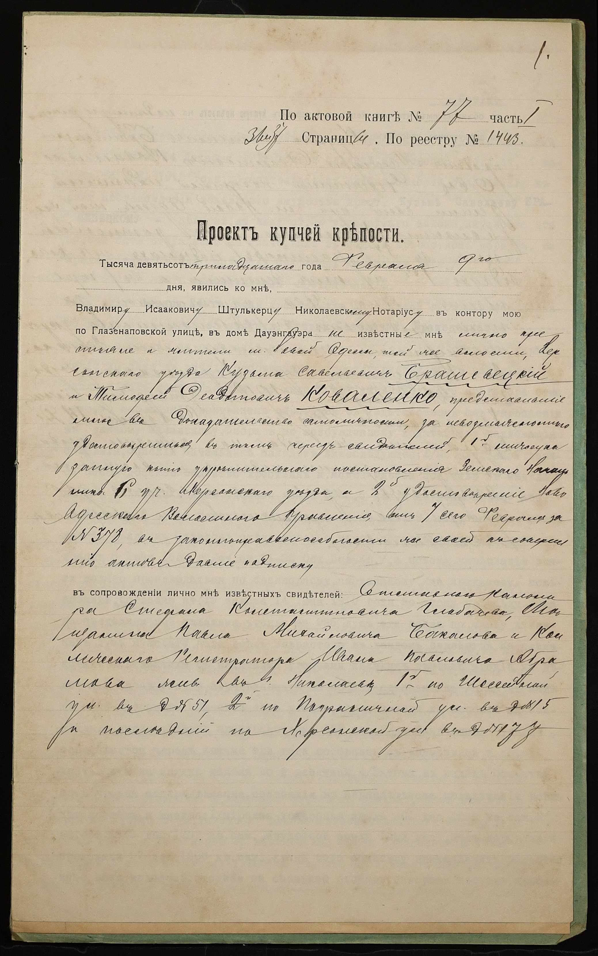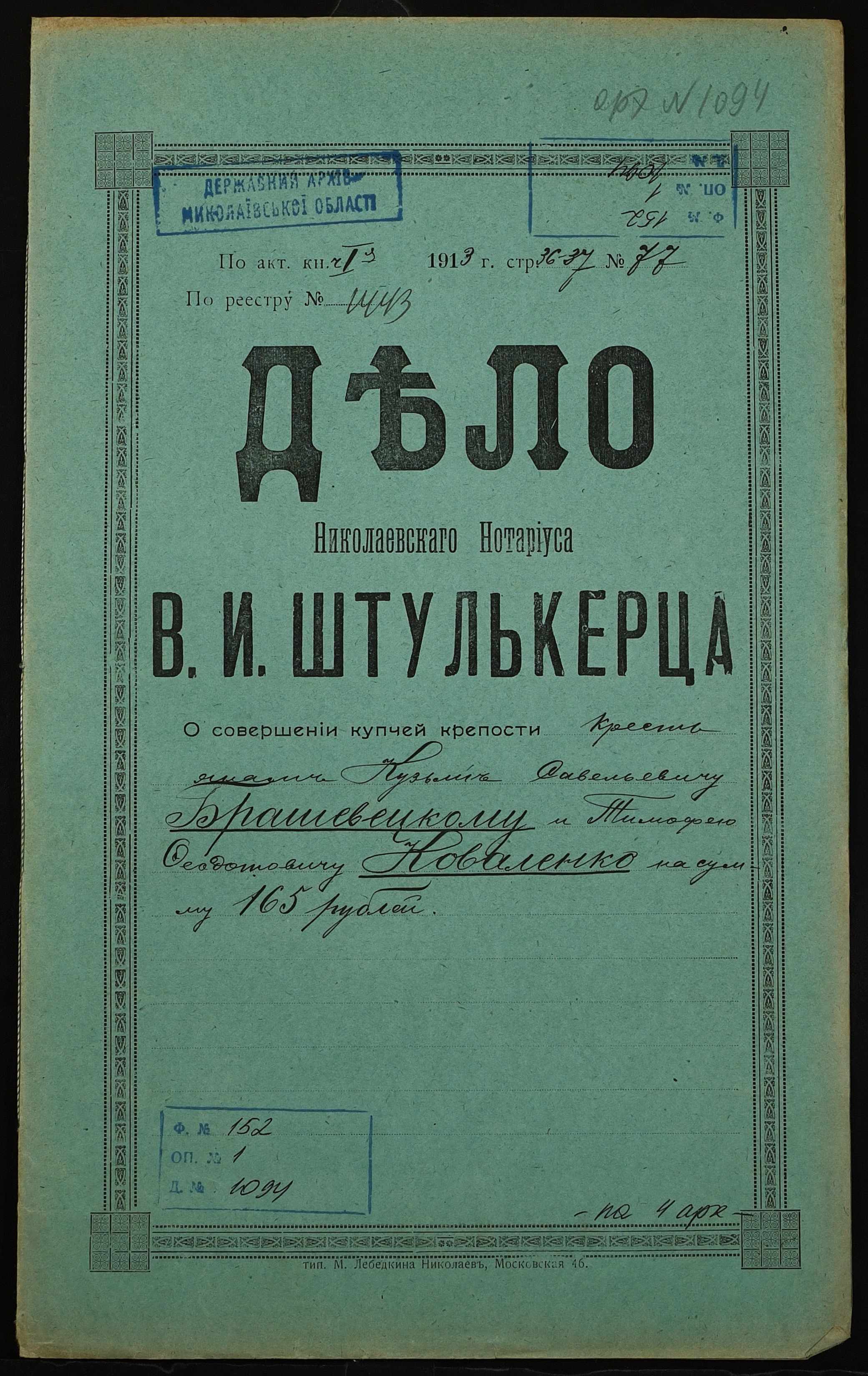 • • • • Справа № 1094 “Справа про вчинення купчої про продаж землі селянином Брашевецьким Кирилом Савелійовичем (Брашевецким Кириллом Савельевичем) на користь селянина Коваленка Тимофія Федотовича (Коваленко Тимофея Федотовича)”