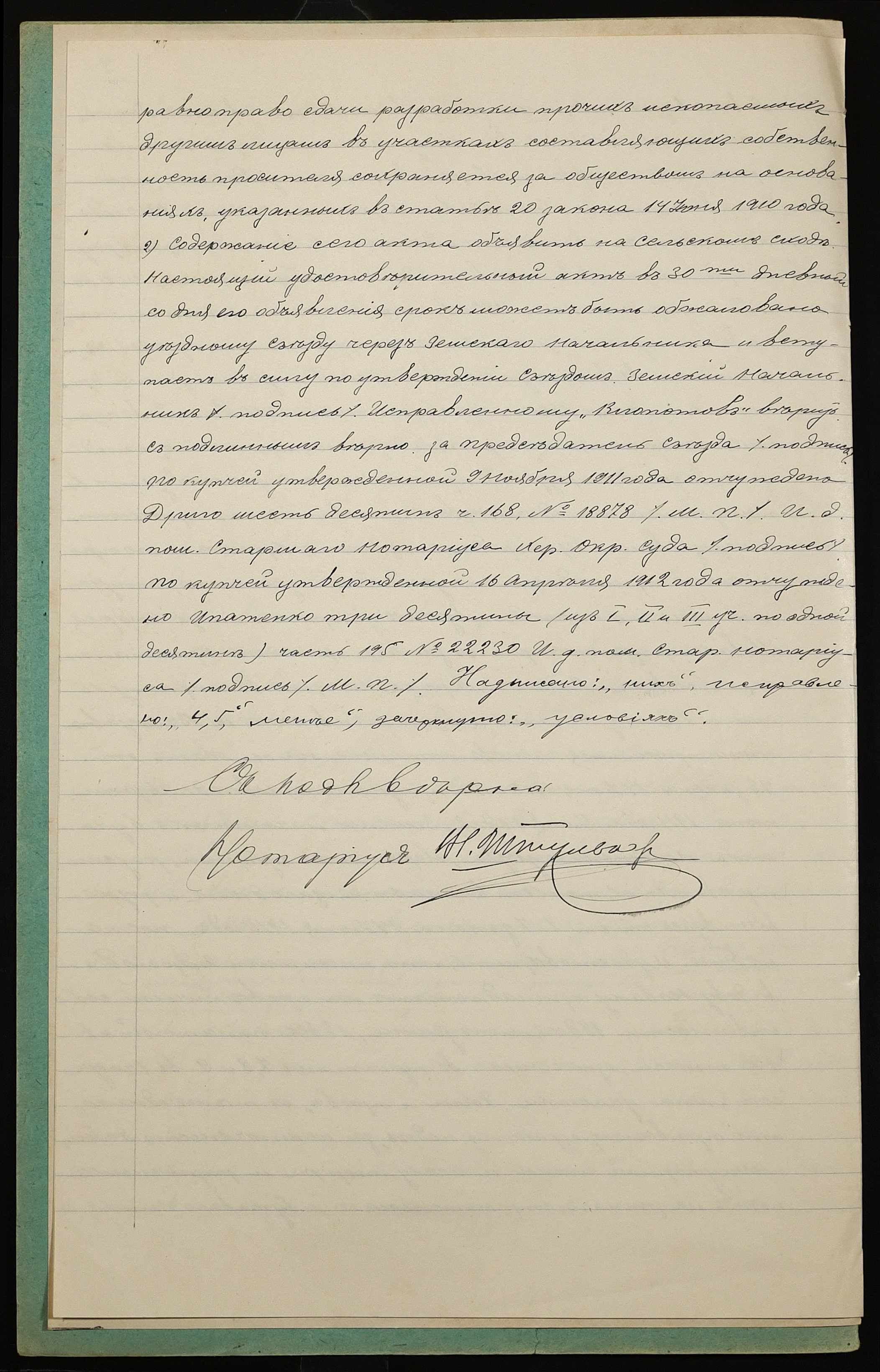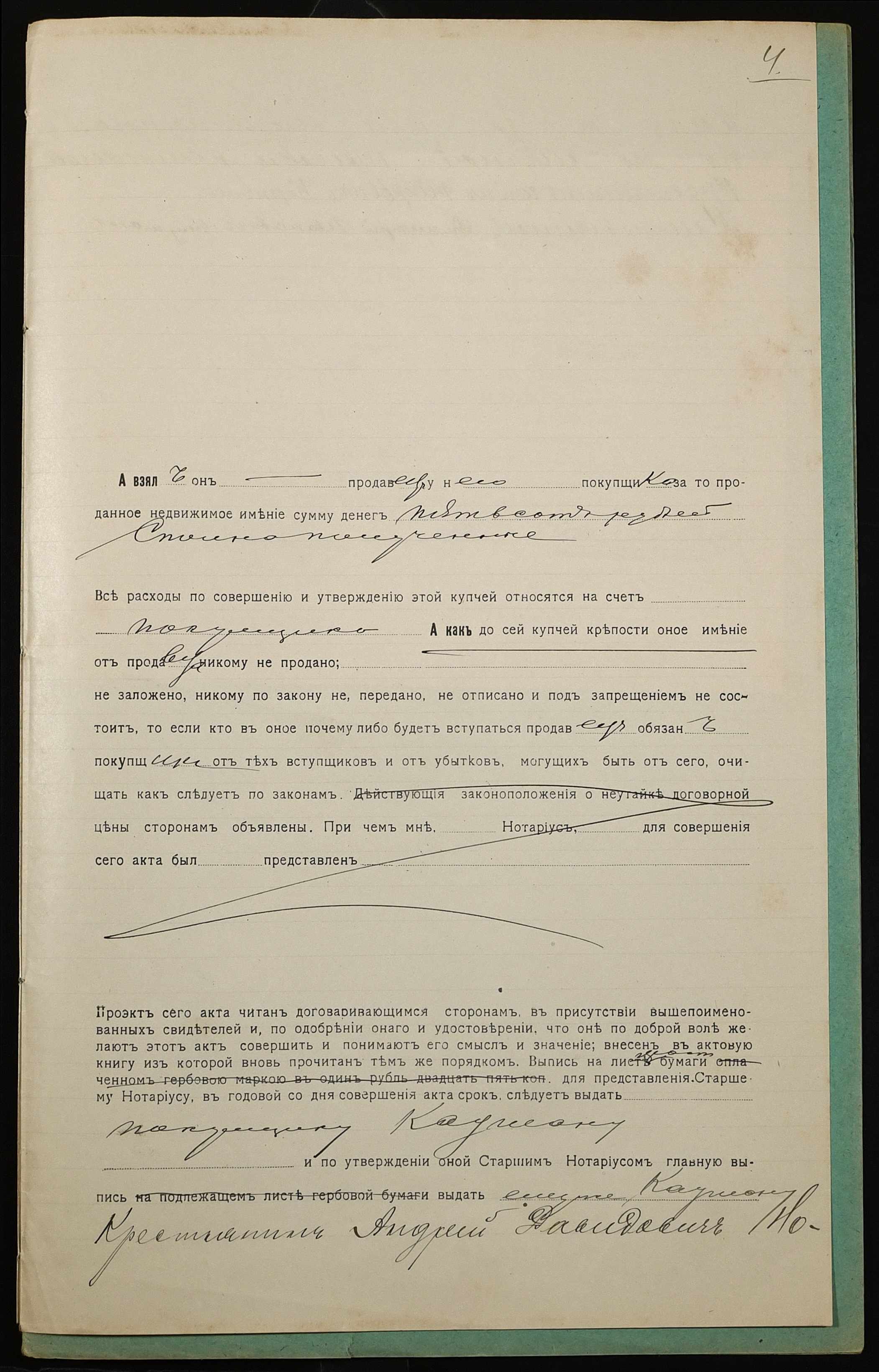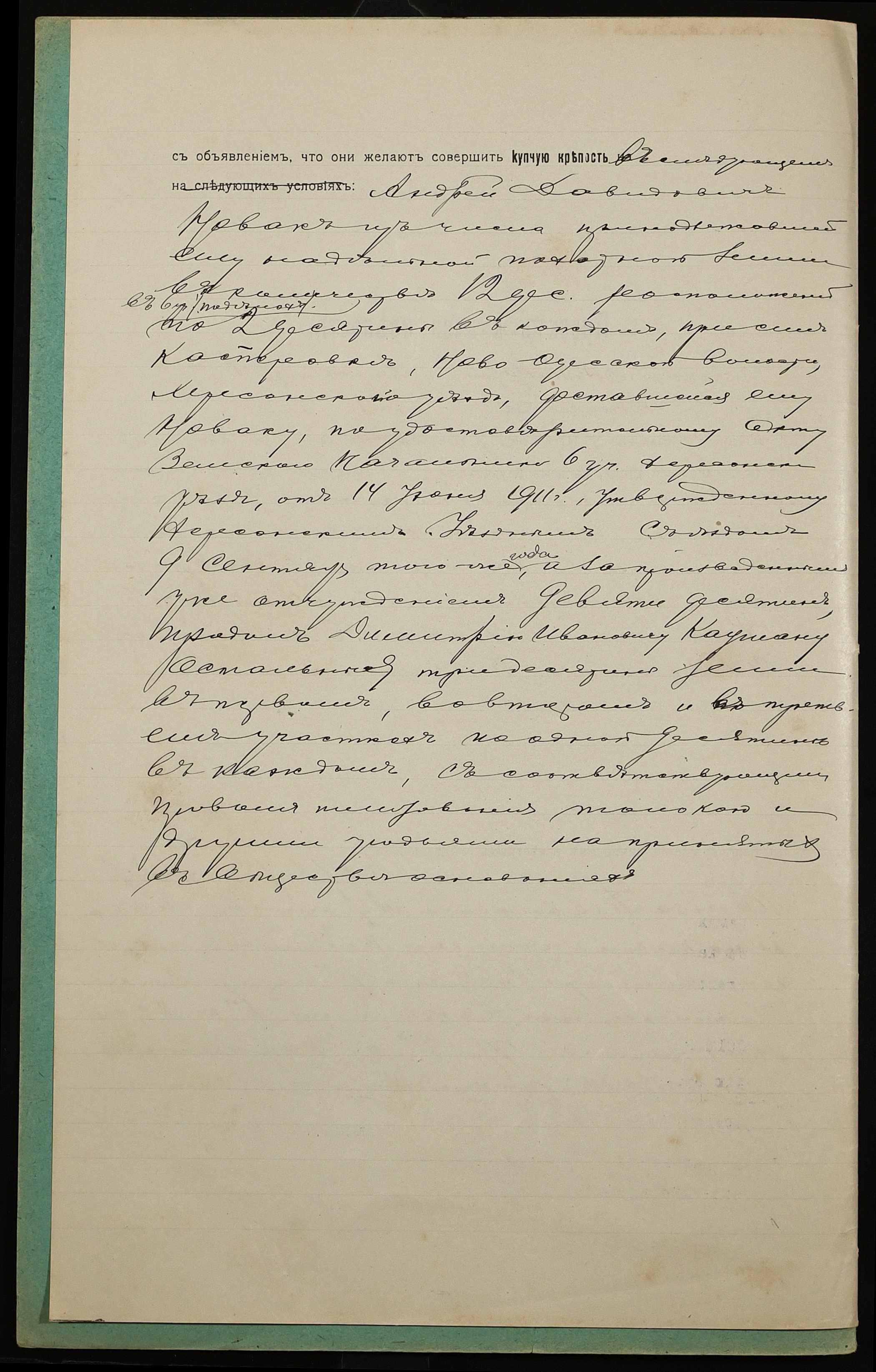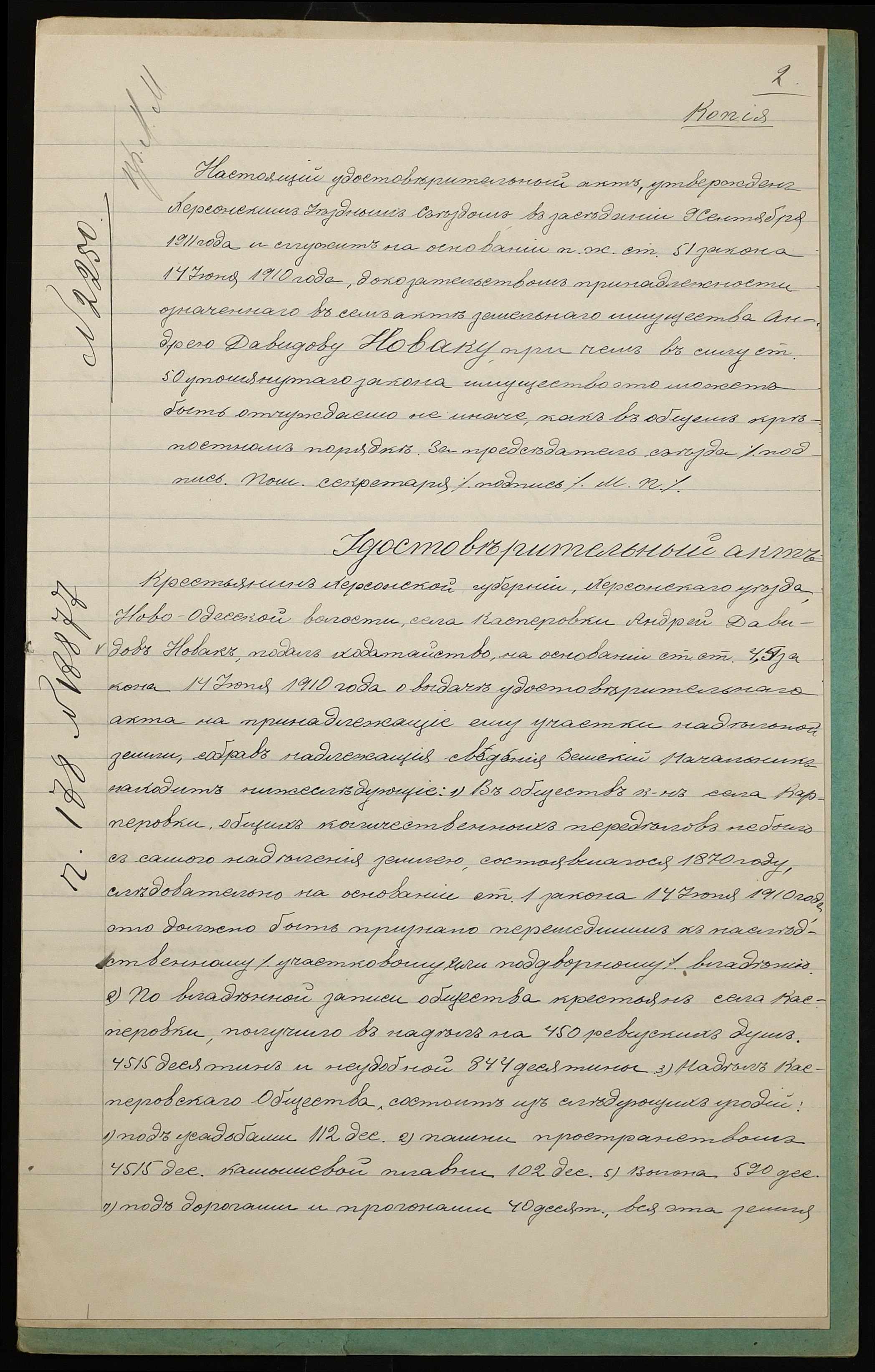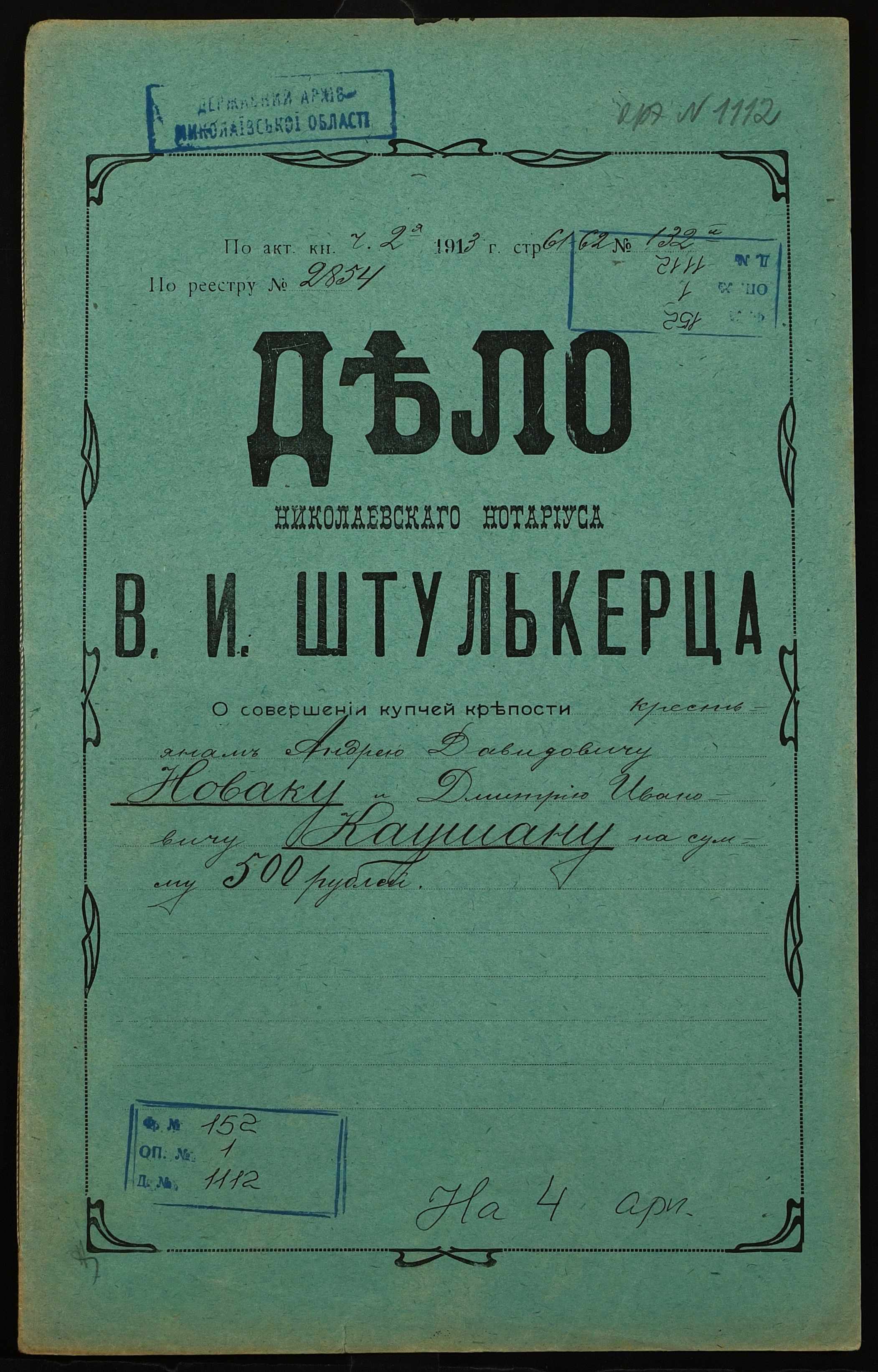 • • • • Справа № 1112 “Справа про вчинення купчої про продаж землі селянином Новаком Андрієм Давидовичем (Новаком Андреем Давидовичем) на користь селянина Каушана Дмитра Івановича (Каушана Дмитрия Ивановича)”
