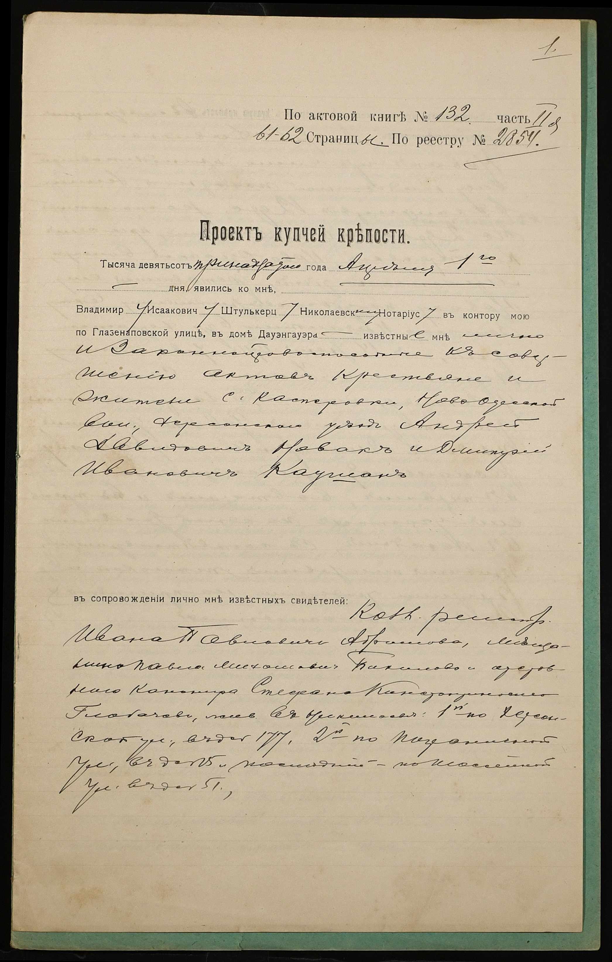 ◦ ◦ Фонд № 152 “Контора миколаївського нотаріуса Херсонського окружного суду Штулькерца Володимира Ісааковича”