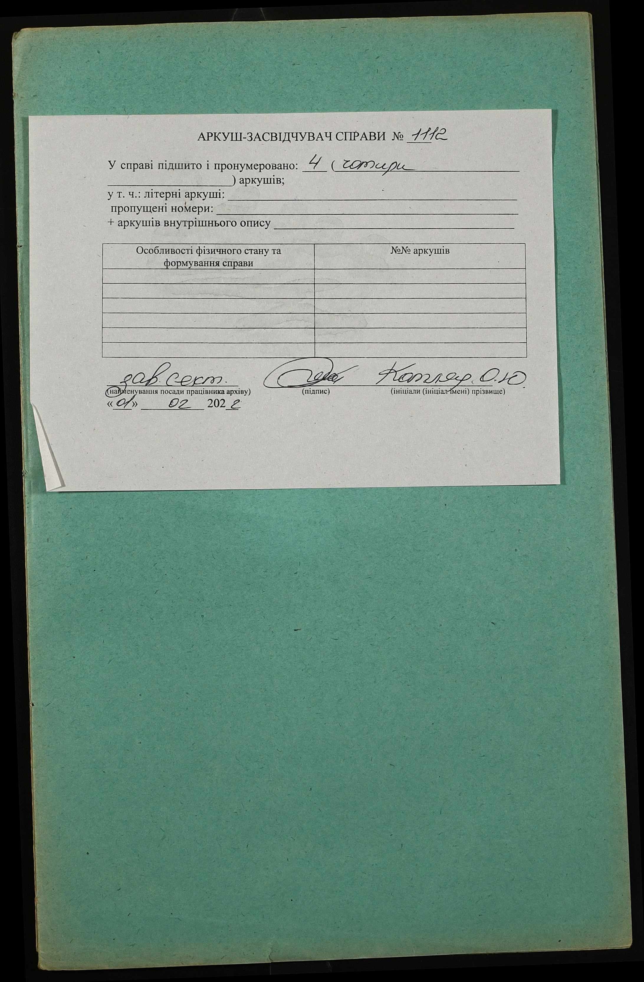 Фонд 152 / Опис 1 / Справа 1112