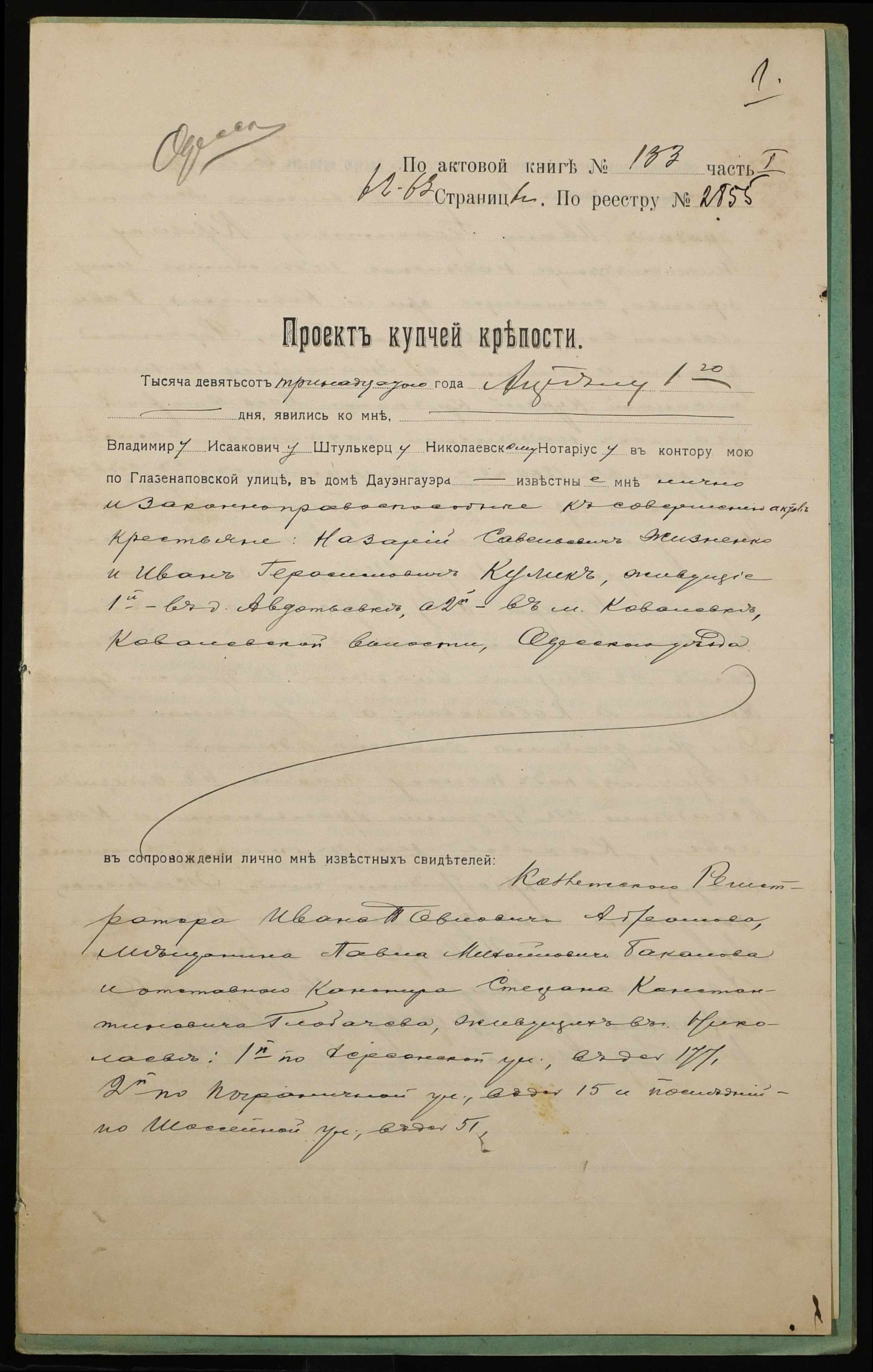 ◦ ◦ Фонд № 152 “Контора миколаївського нотаріуса Херсонського окружного суду Штулькерца Володимира Ісааковича”