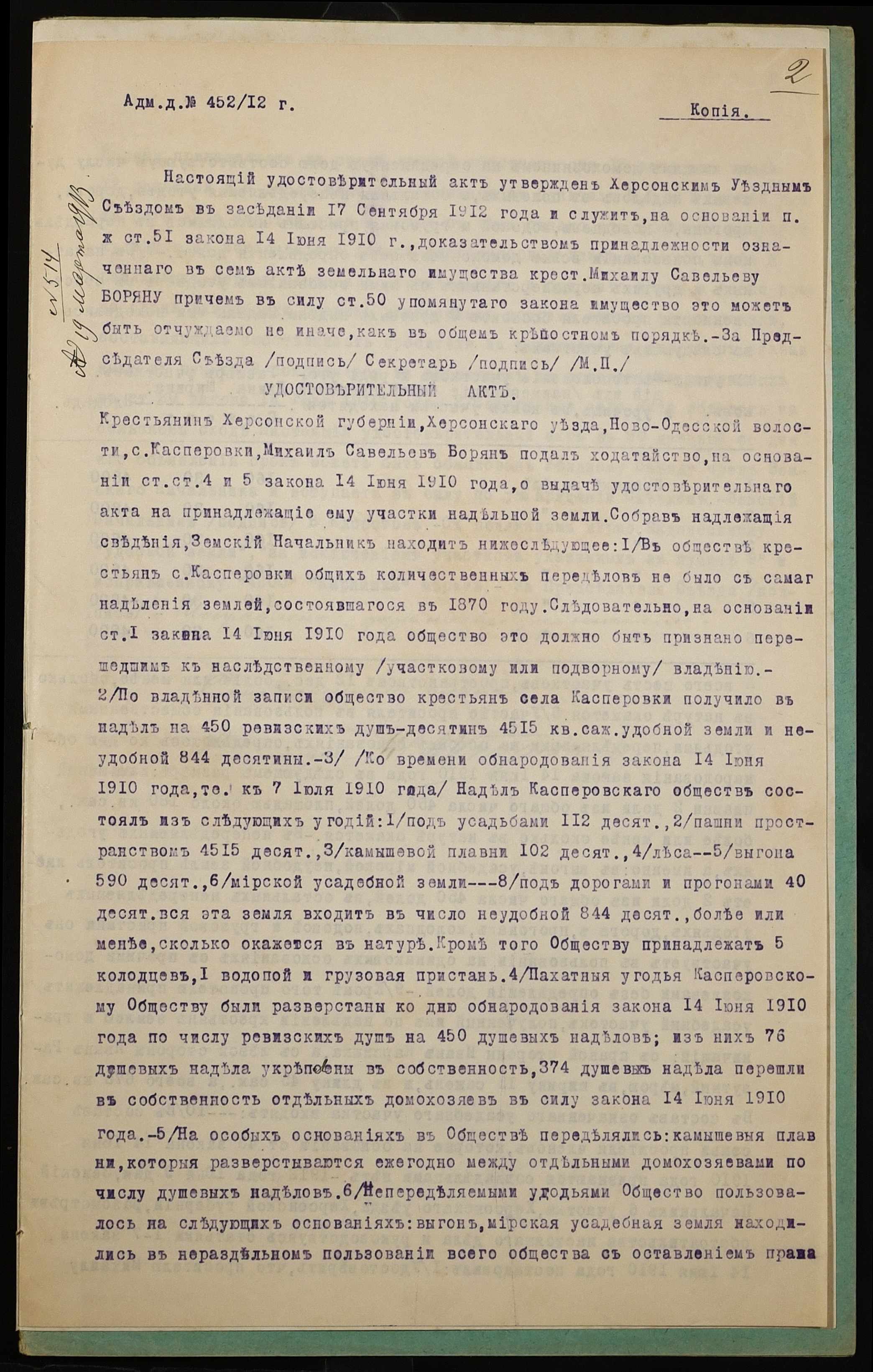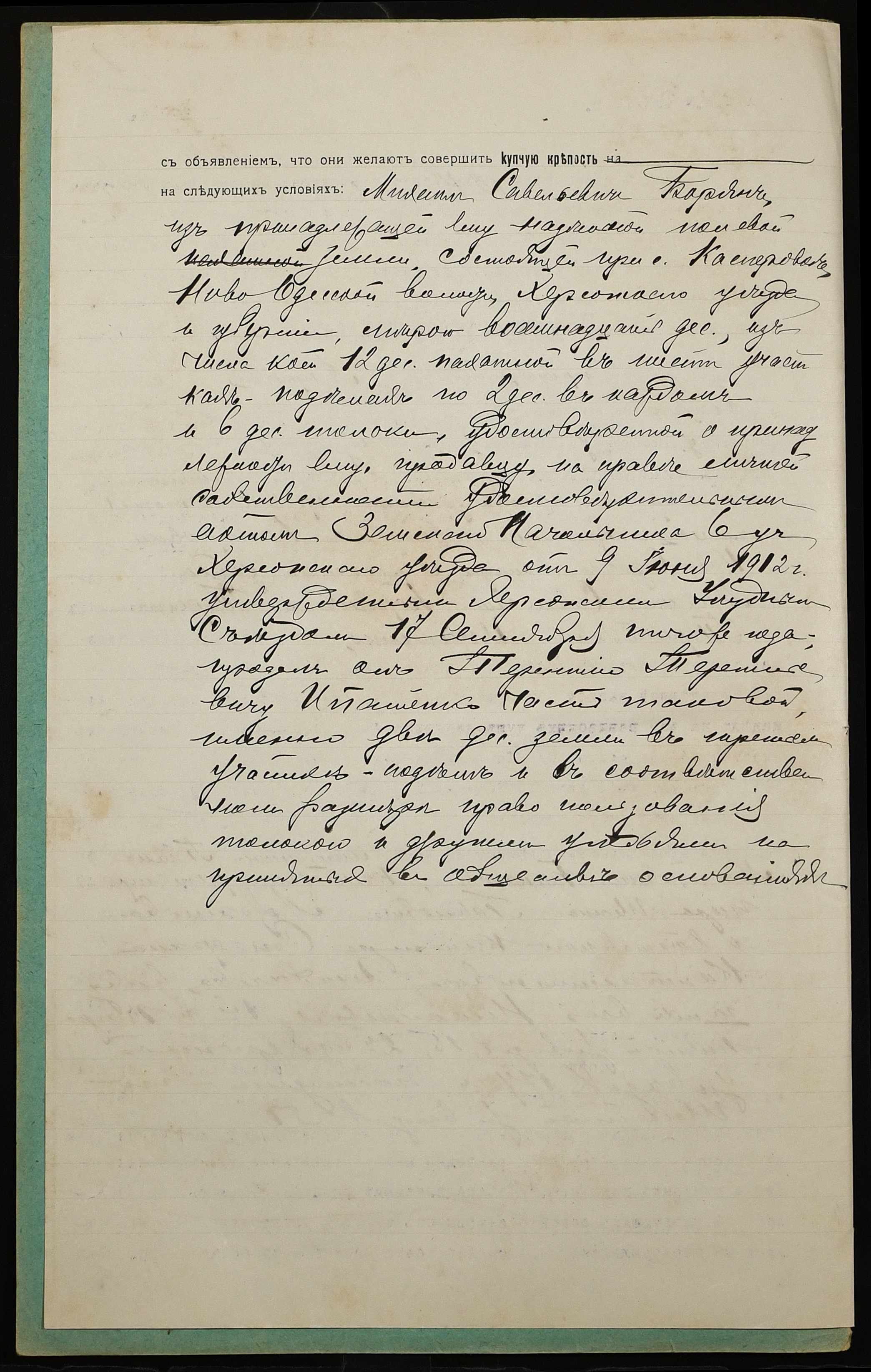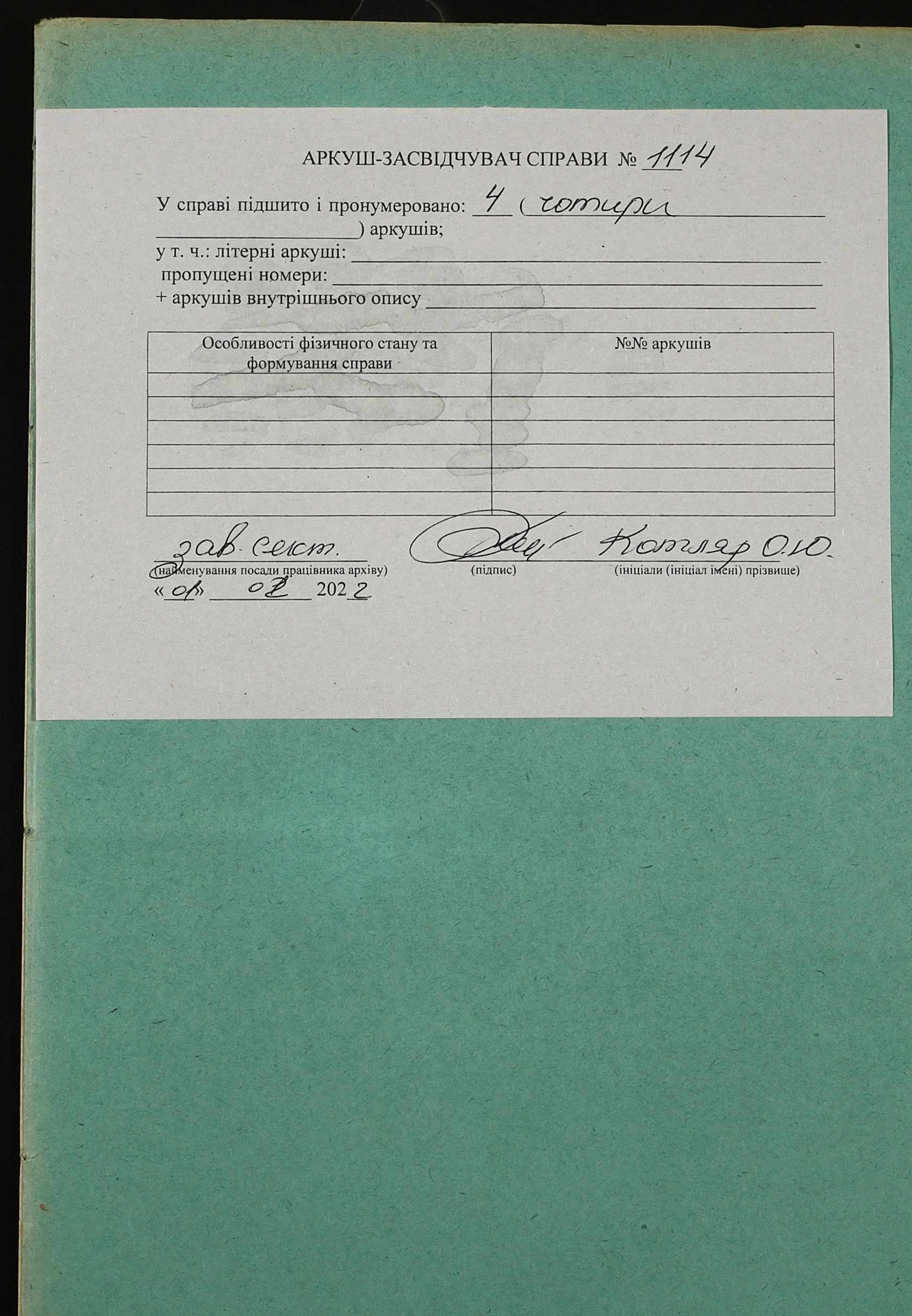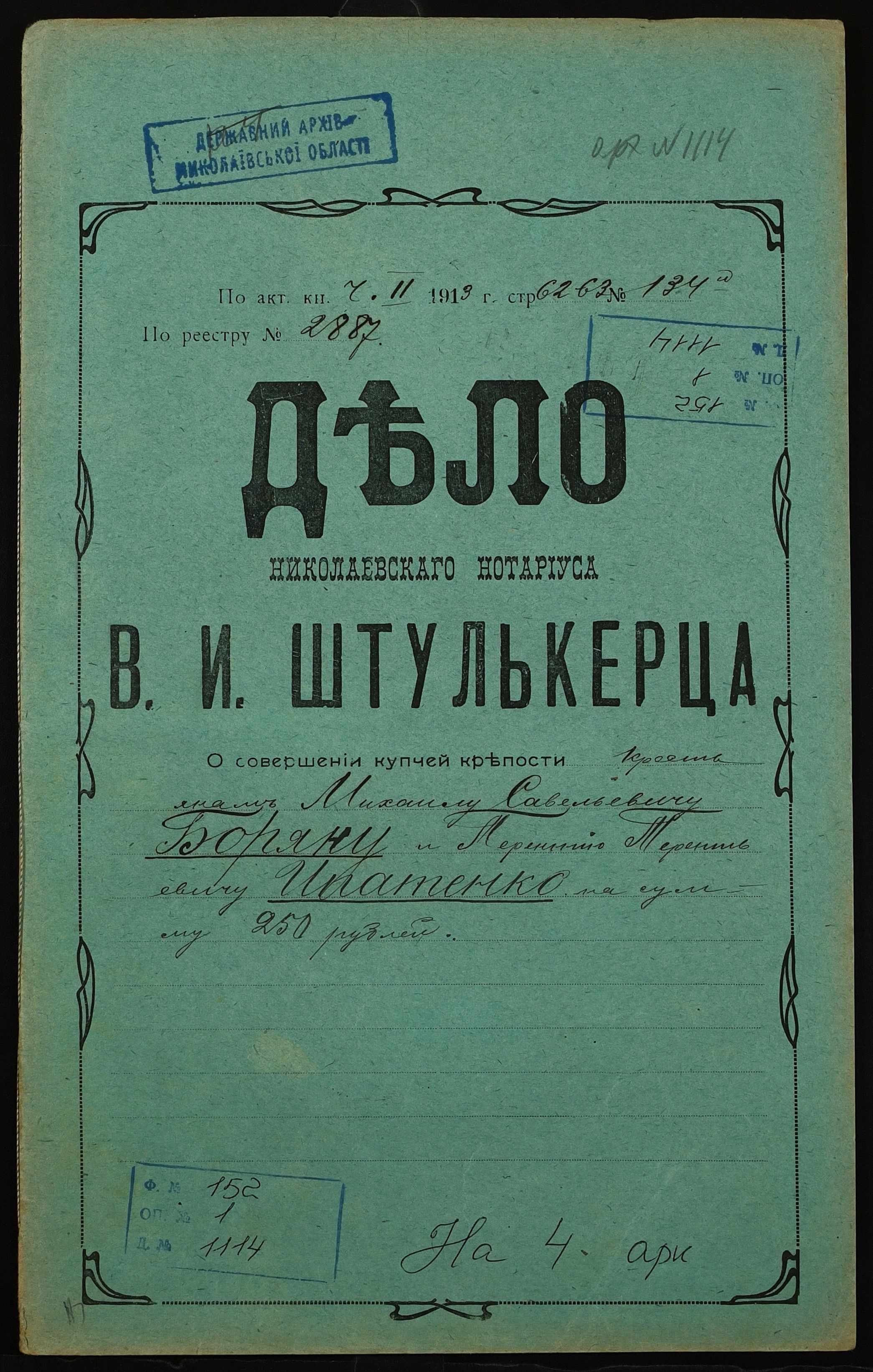 • • • • Справа № 1114 “Справа про вчинення купчої про продаж землі селянином Боряном Михайлом Савелійовичем (Боряном Михаилом Савельевичем) на користь селянина Іпатенка Терентія Терентійовича (Ипатенко Терентия Терентьевича)”