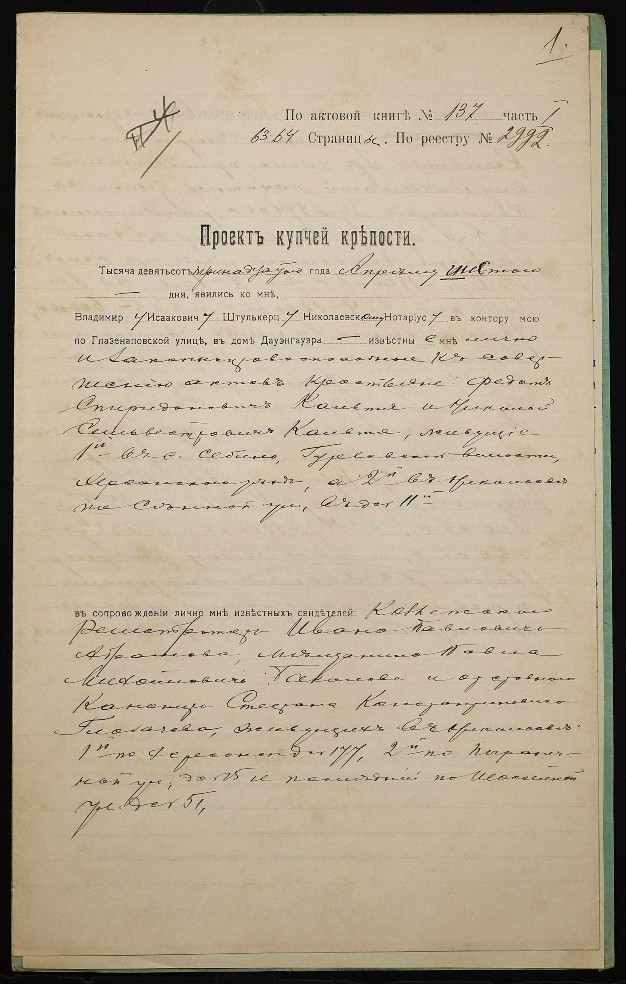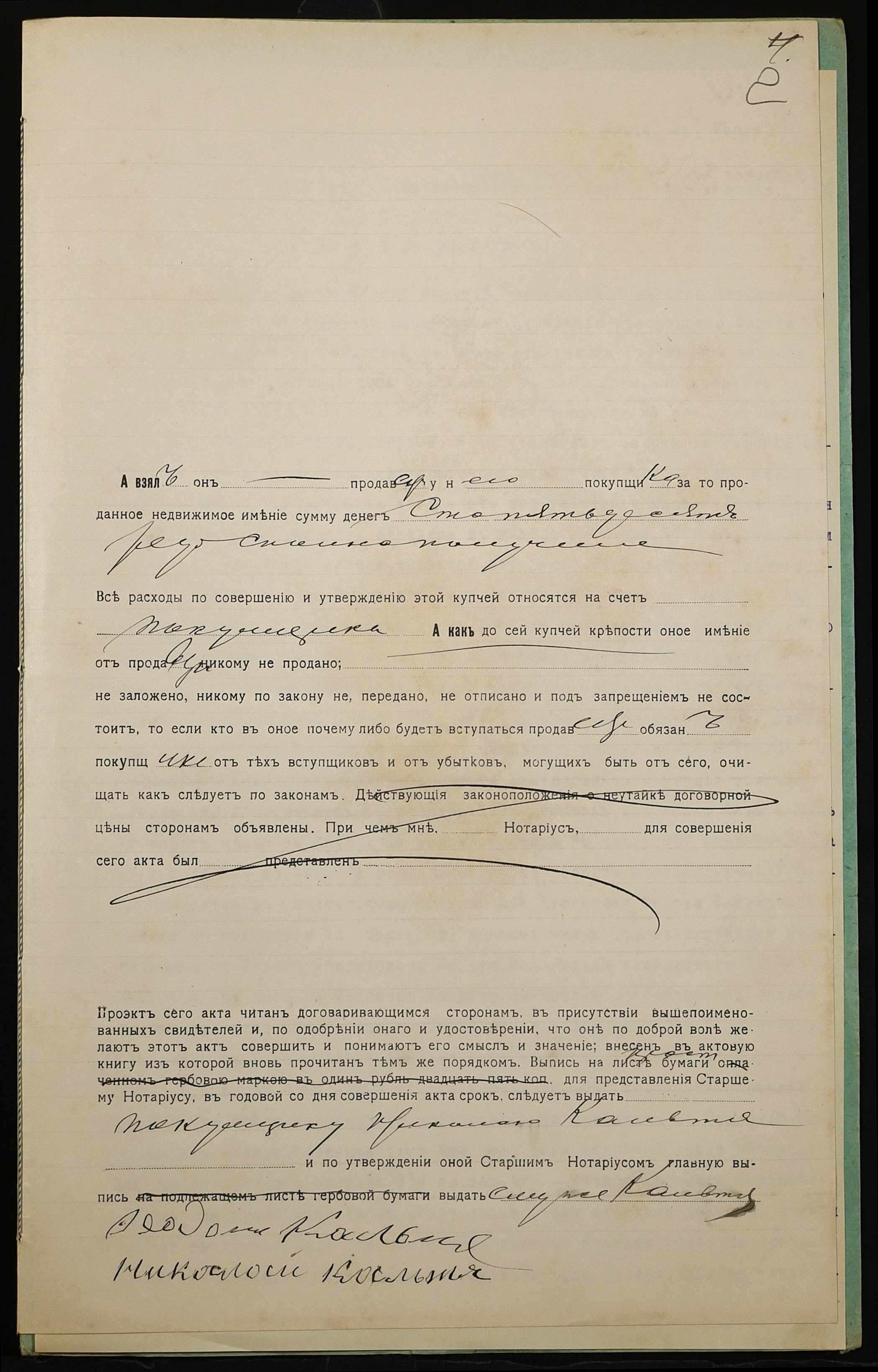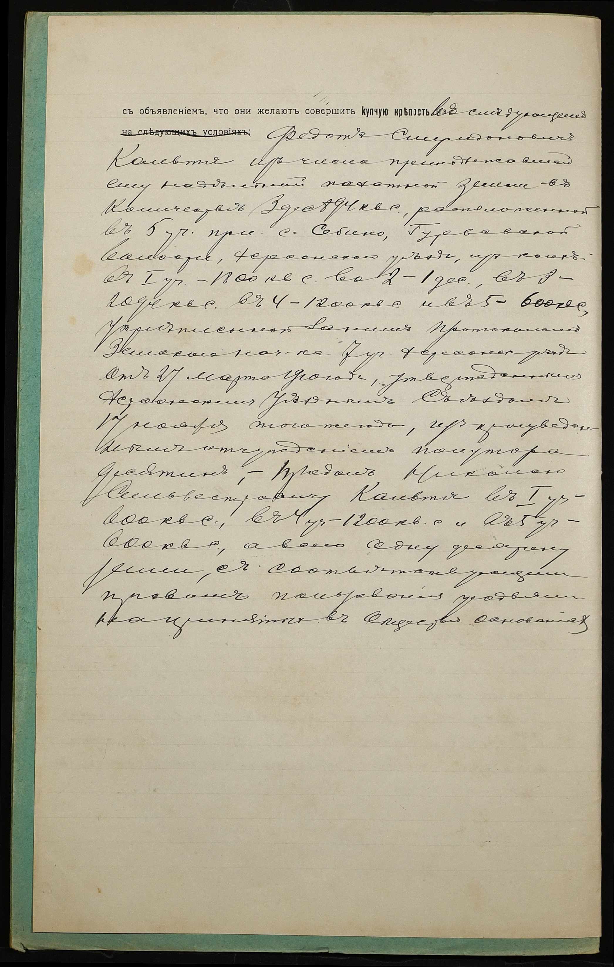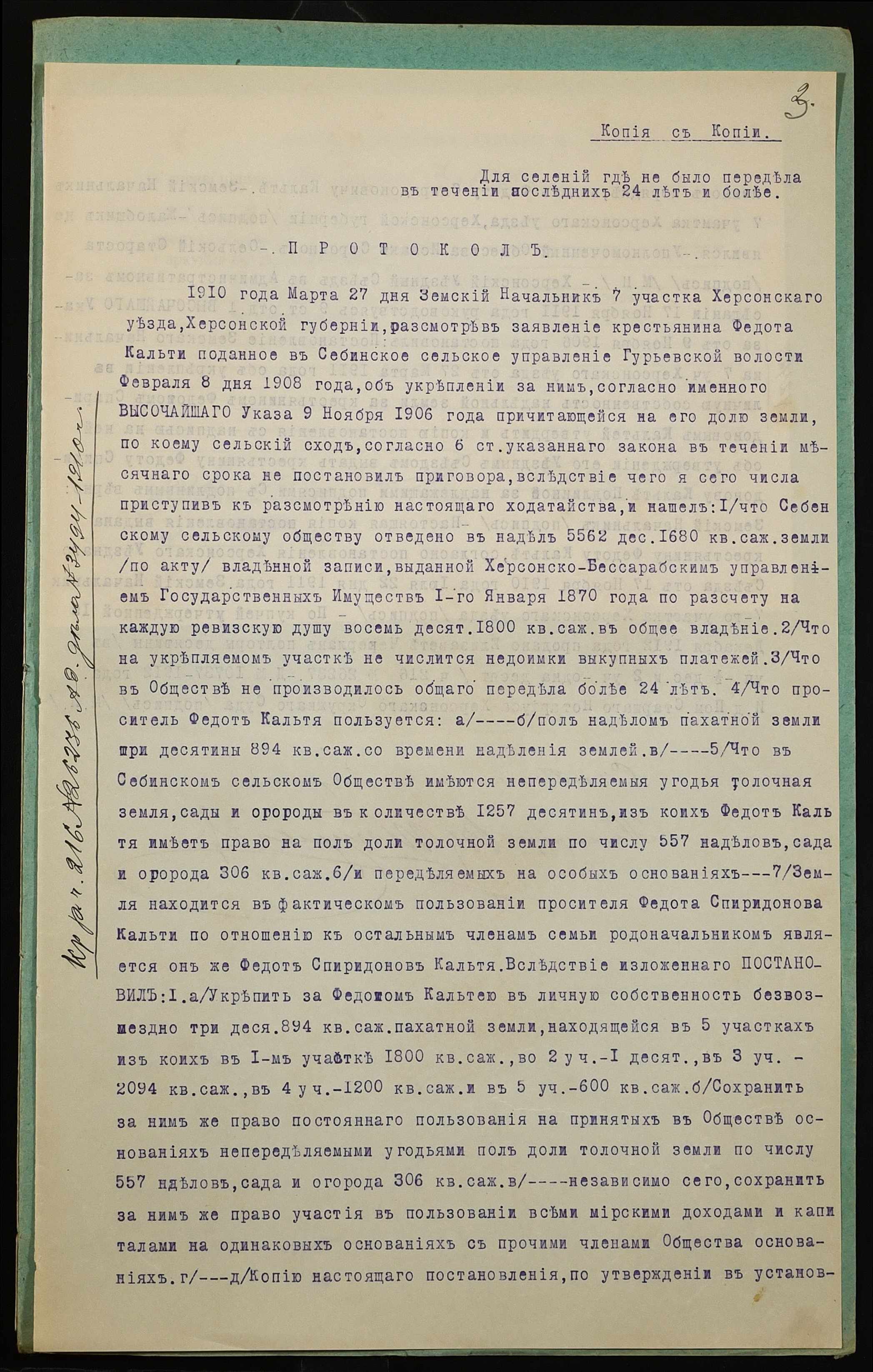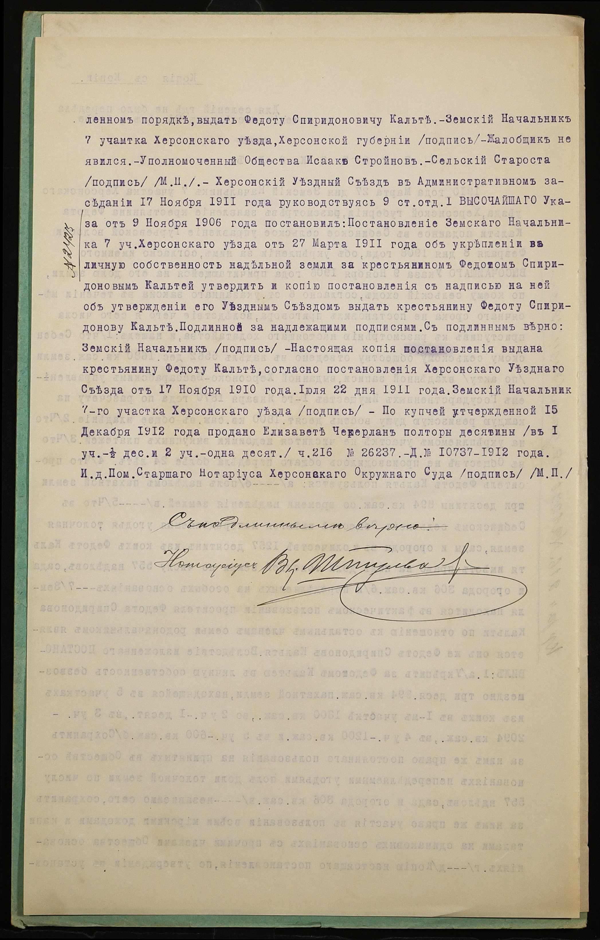 • • • • Справа № 1117 “Справа про вчинення купчої про продаж землі селянином Кальтею Федотом Спиридоновичем (Кальтей Федотом Спиридоновичем) на користь селянина Кальті Миколи Сильвестровича (Кальти Николая Сильвестровича)”
