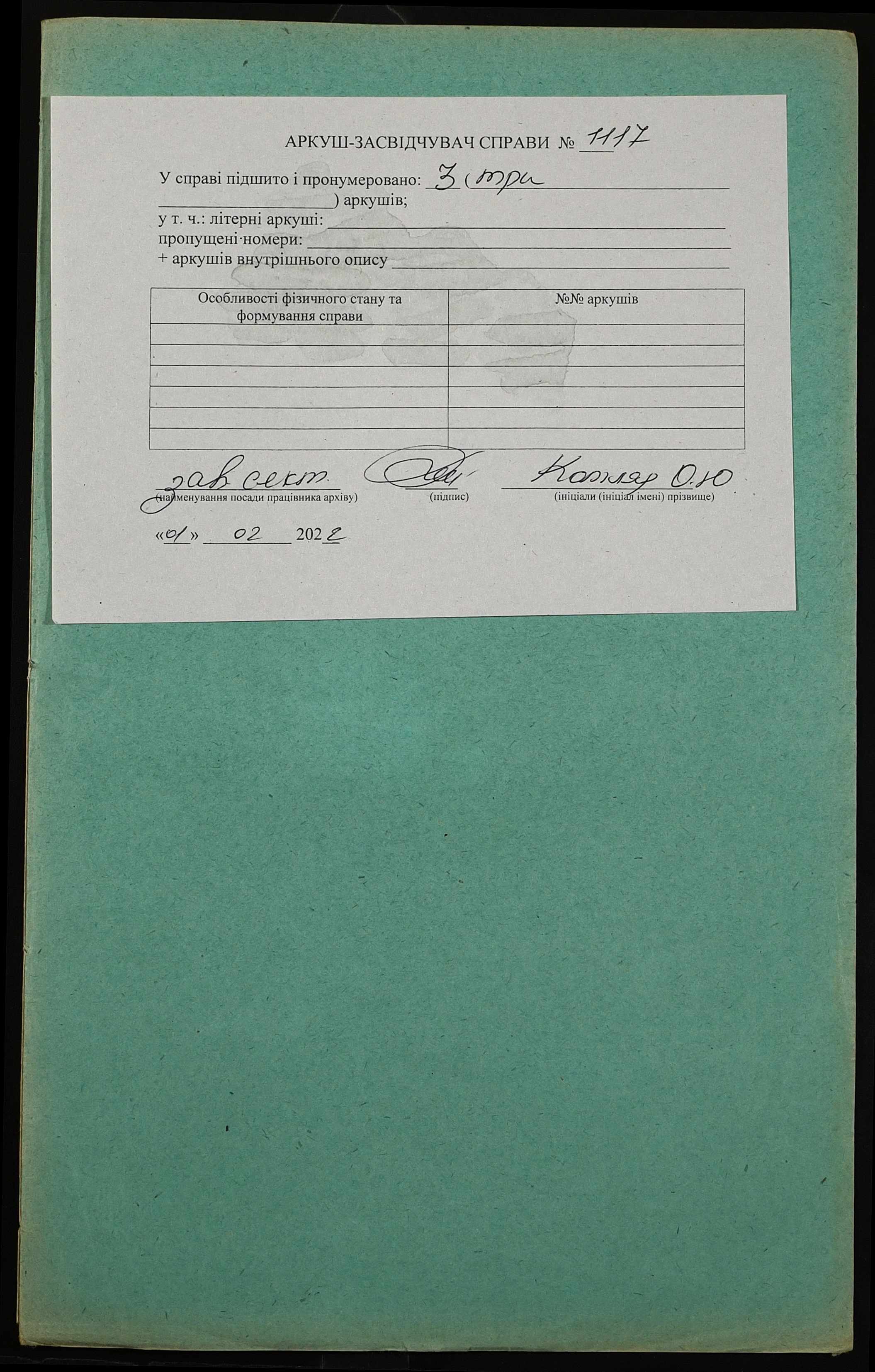 Фонд 152 / Опис 1 / Справа 1117