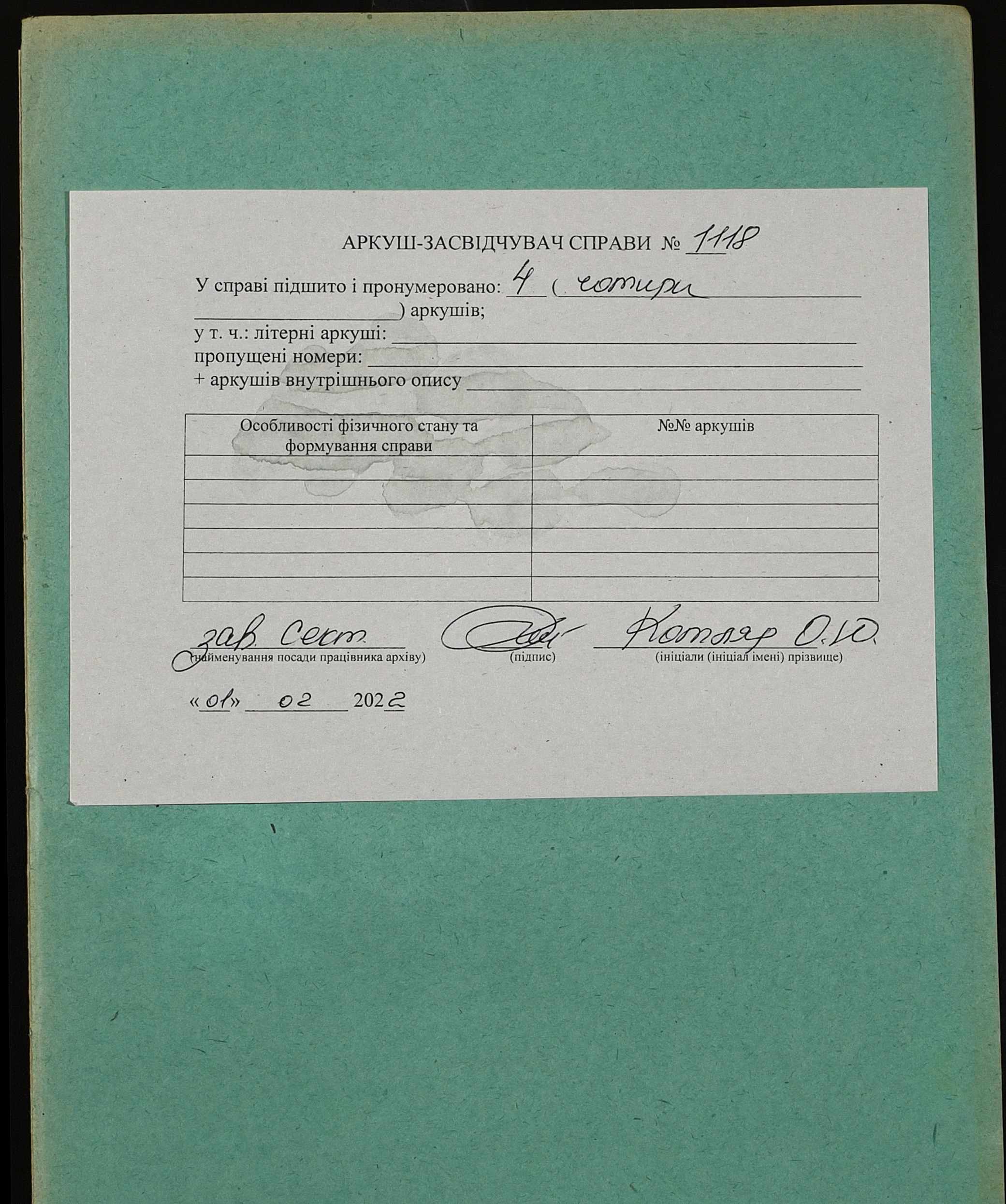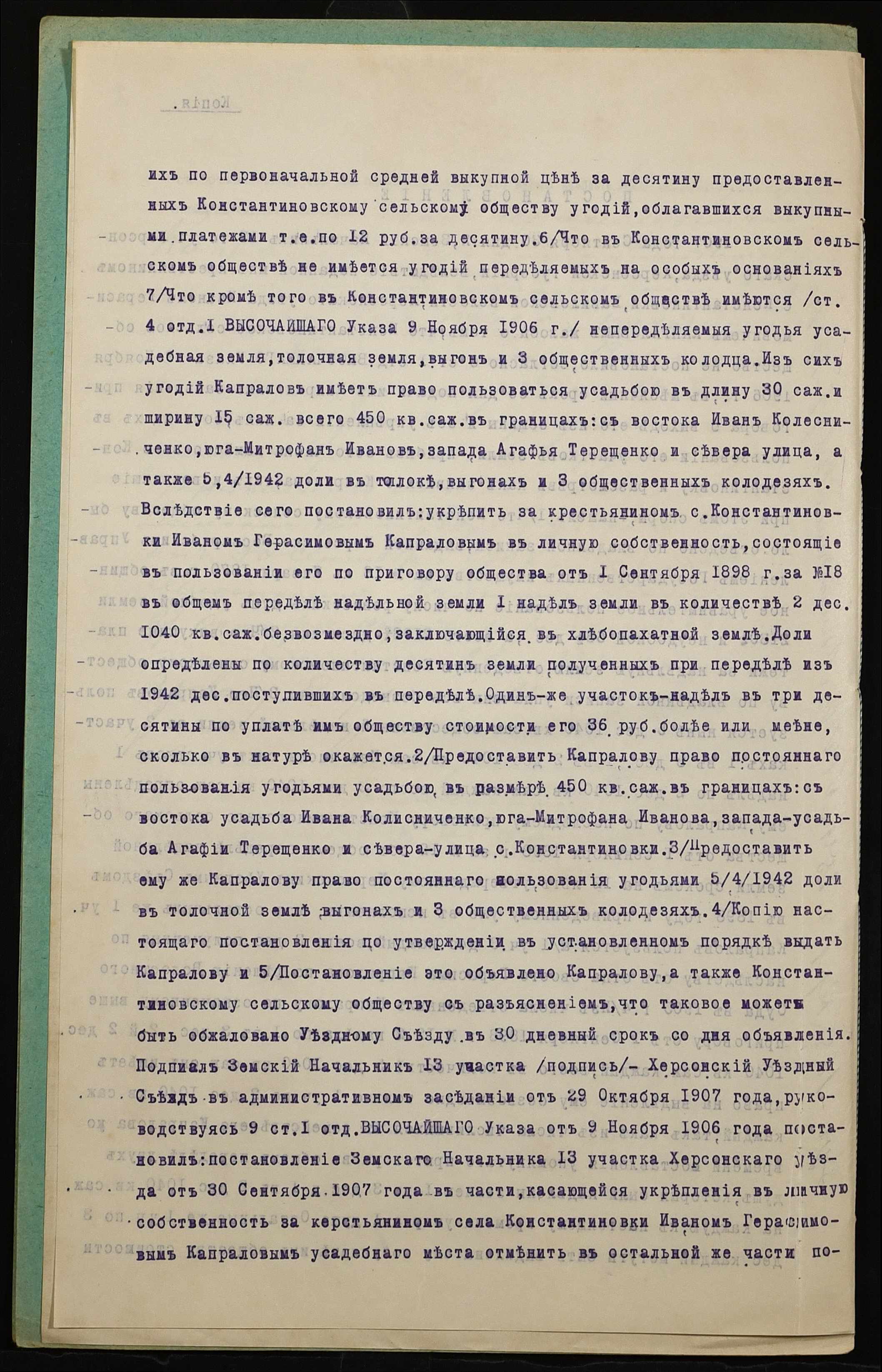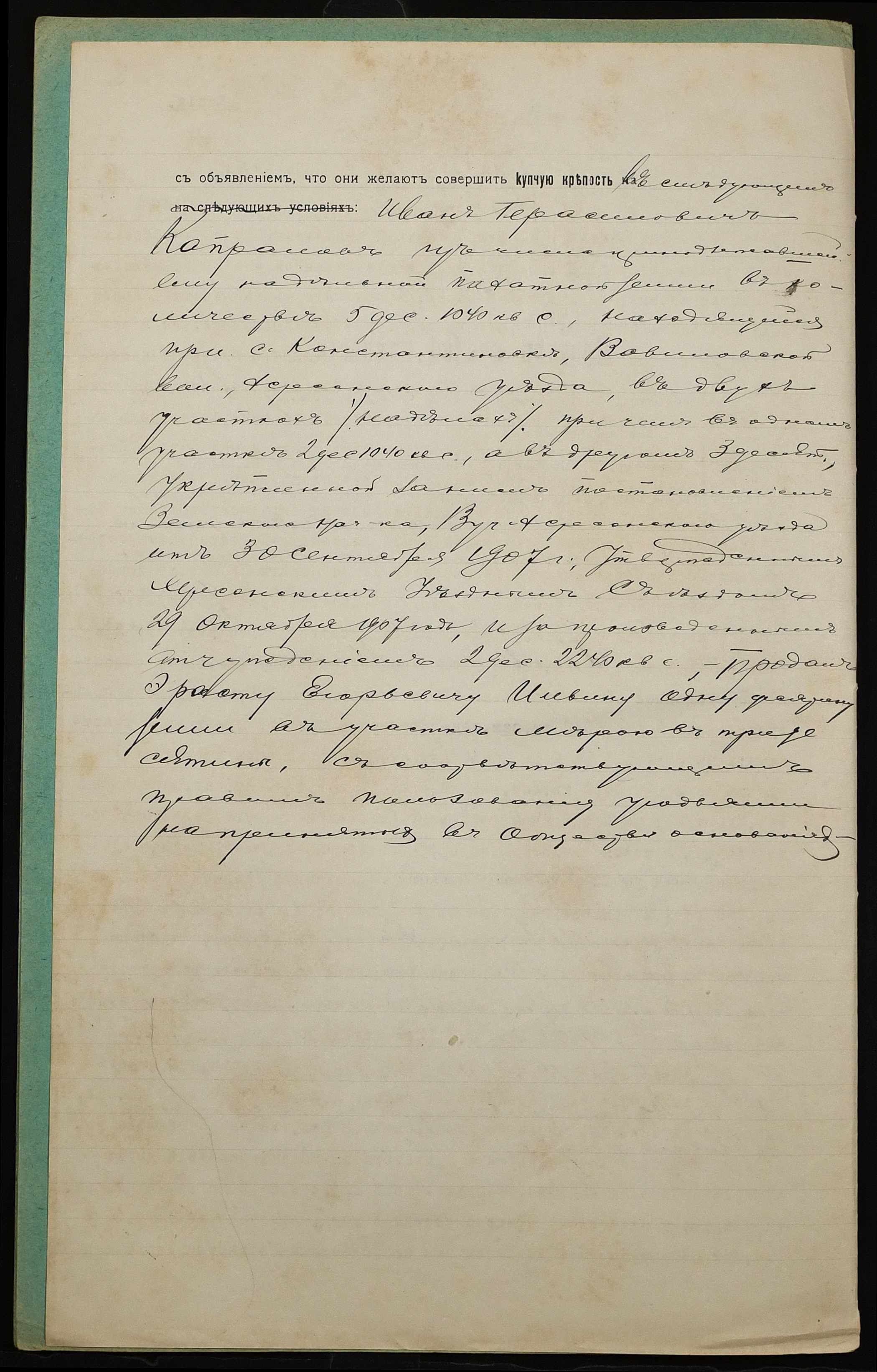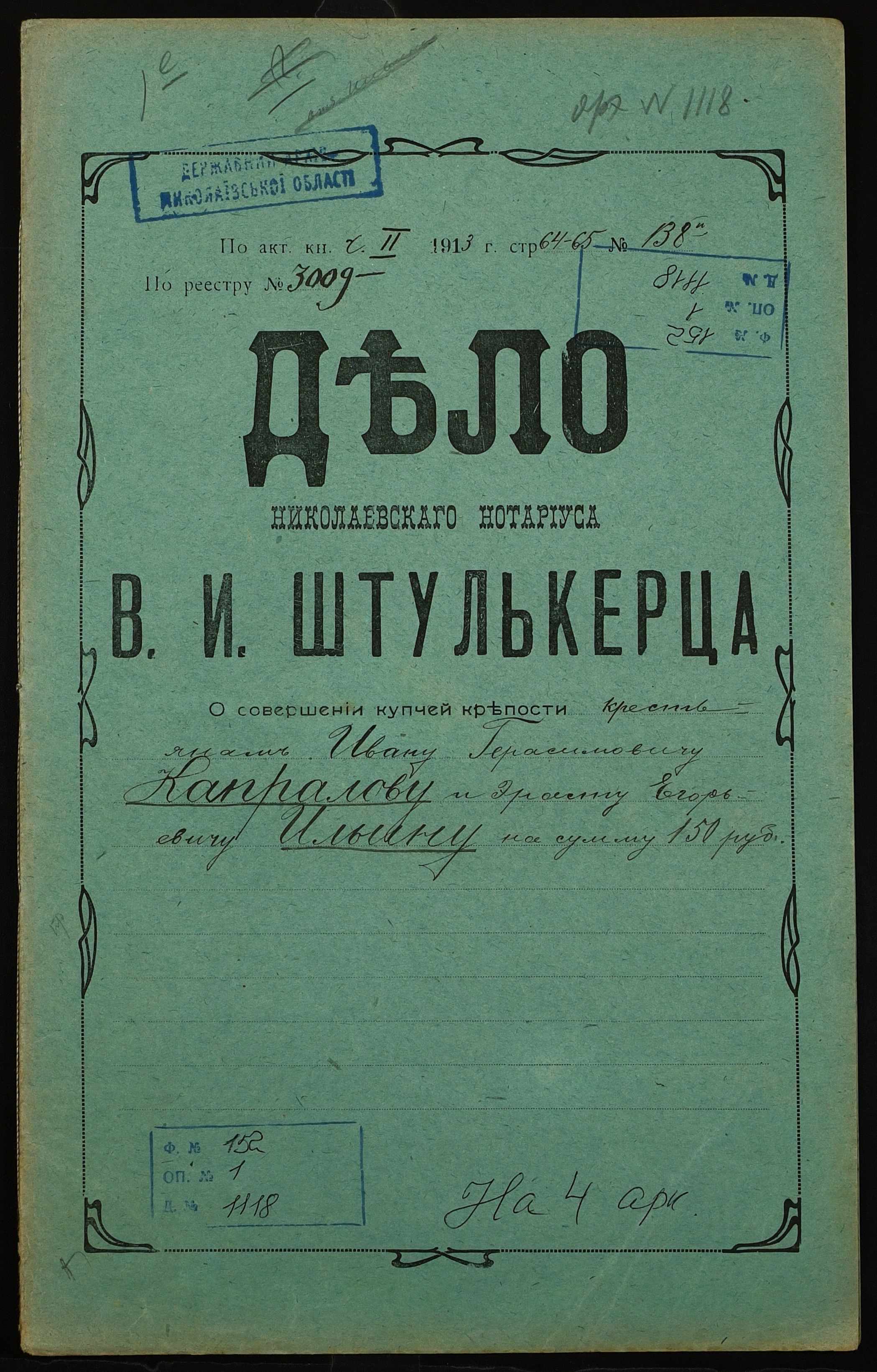 • • • • Справа № 1118 “Справа про вчинення купчої про продаж землі селянином Капраловим Іваном Герасимовичем (Капраловым Иваном Герасимовичем) на користь селянина Ільїна Ераста Єгоровича (Ильина Эраста Егоровича)”