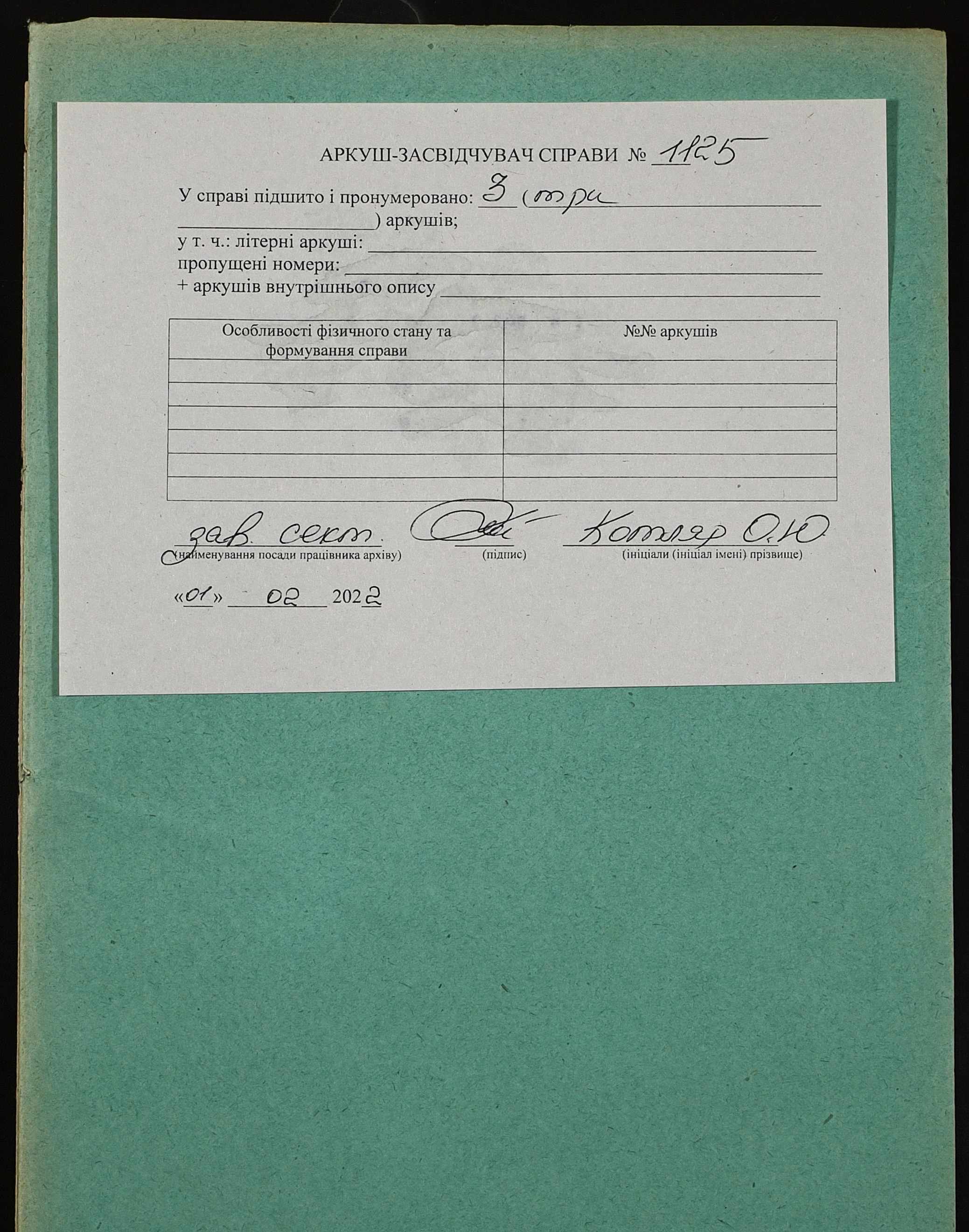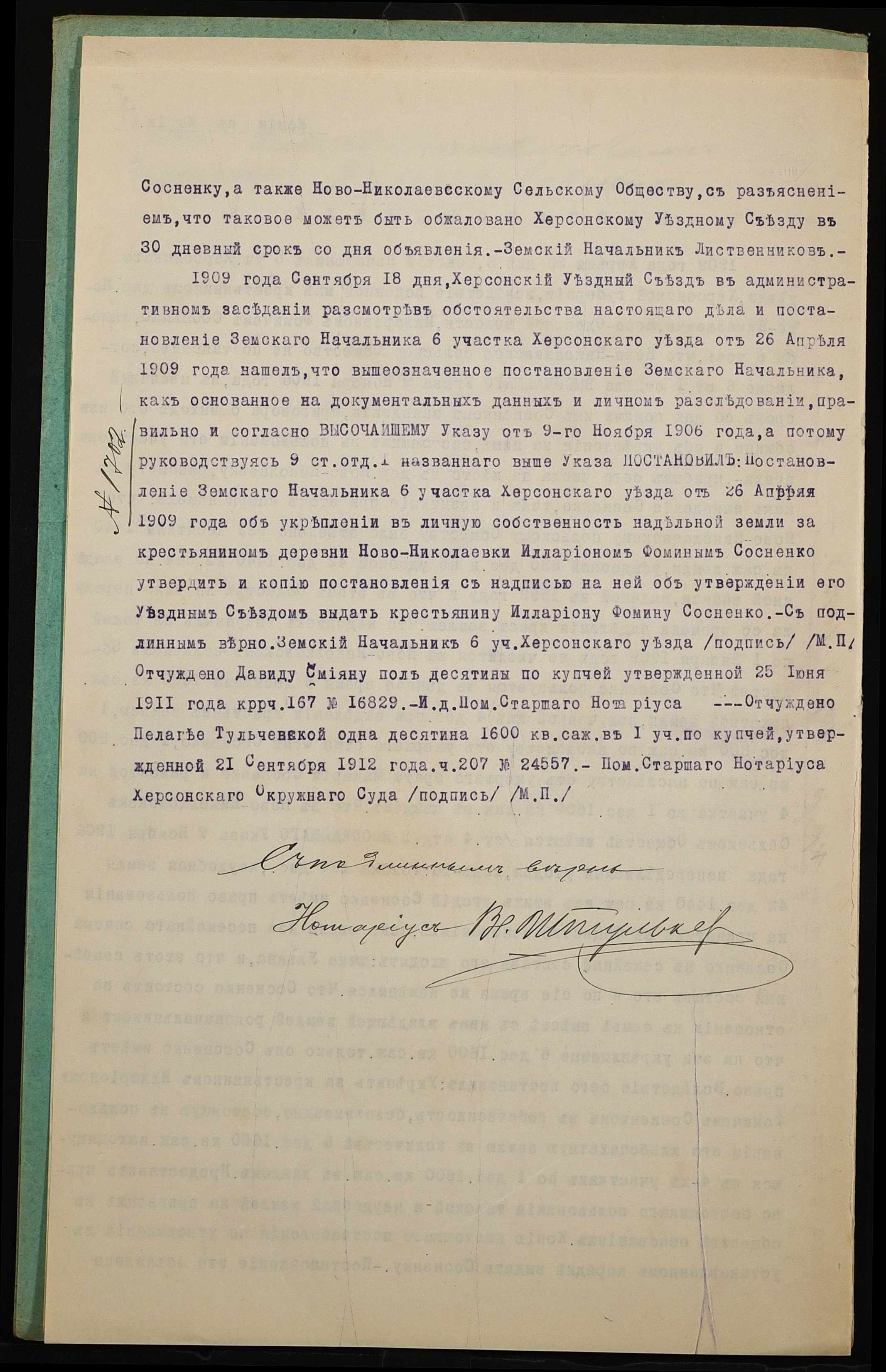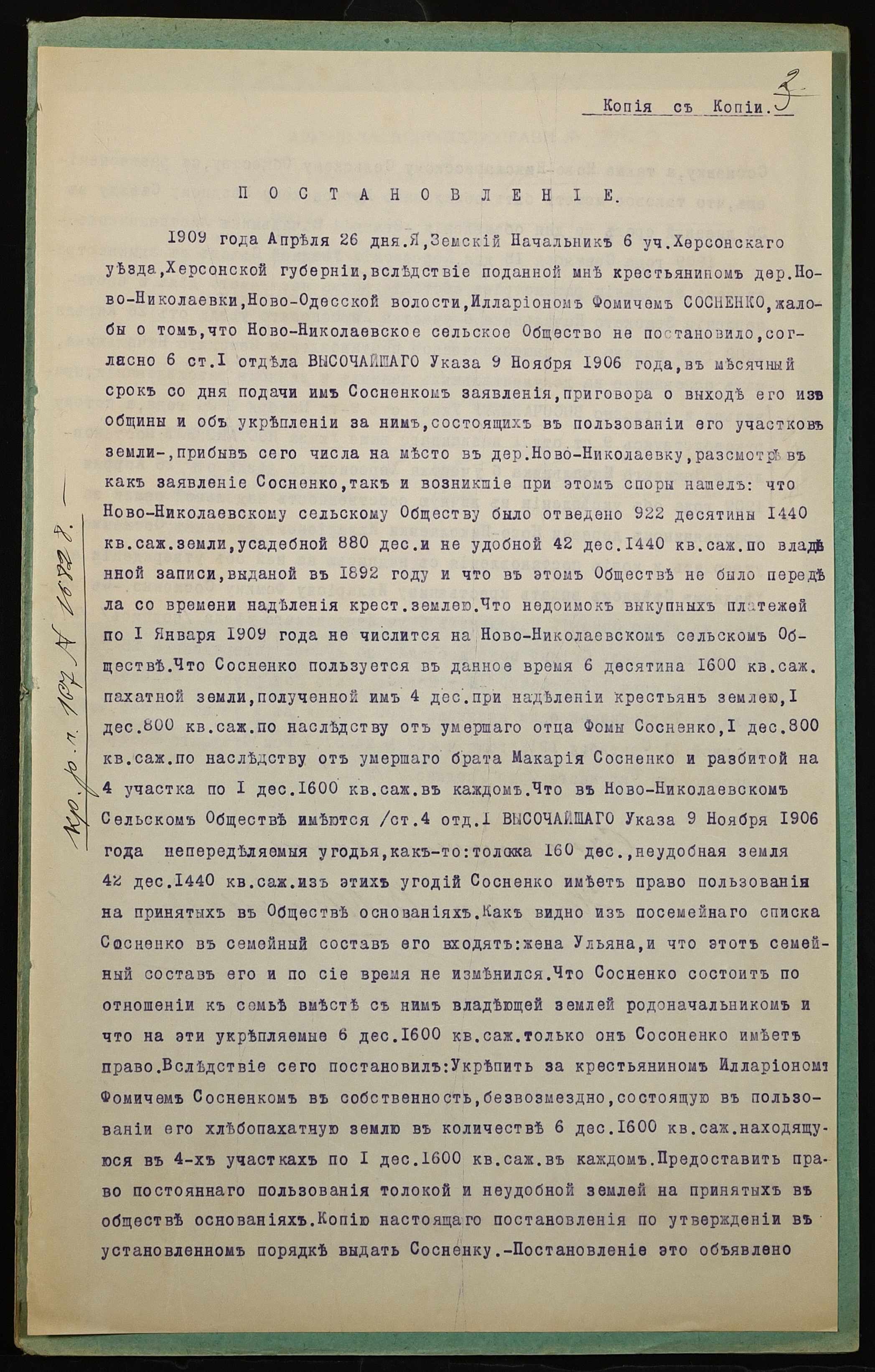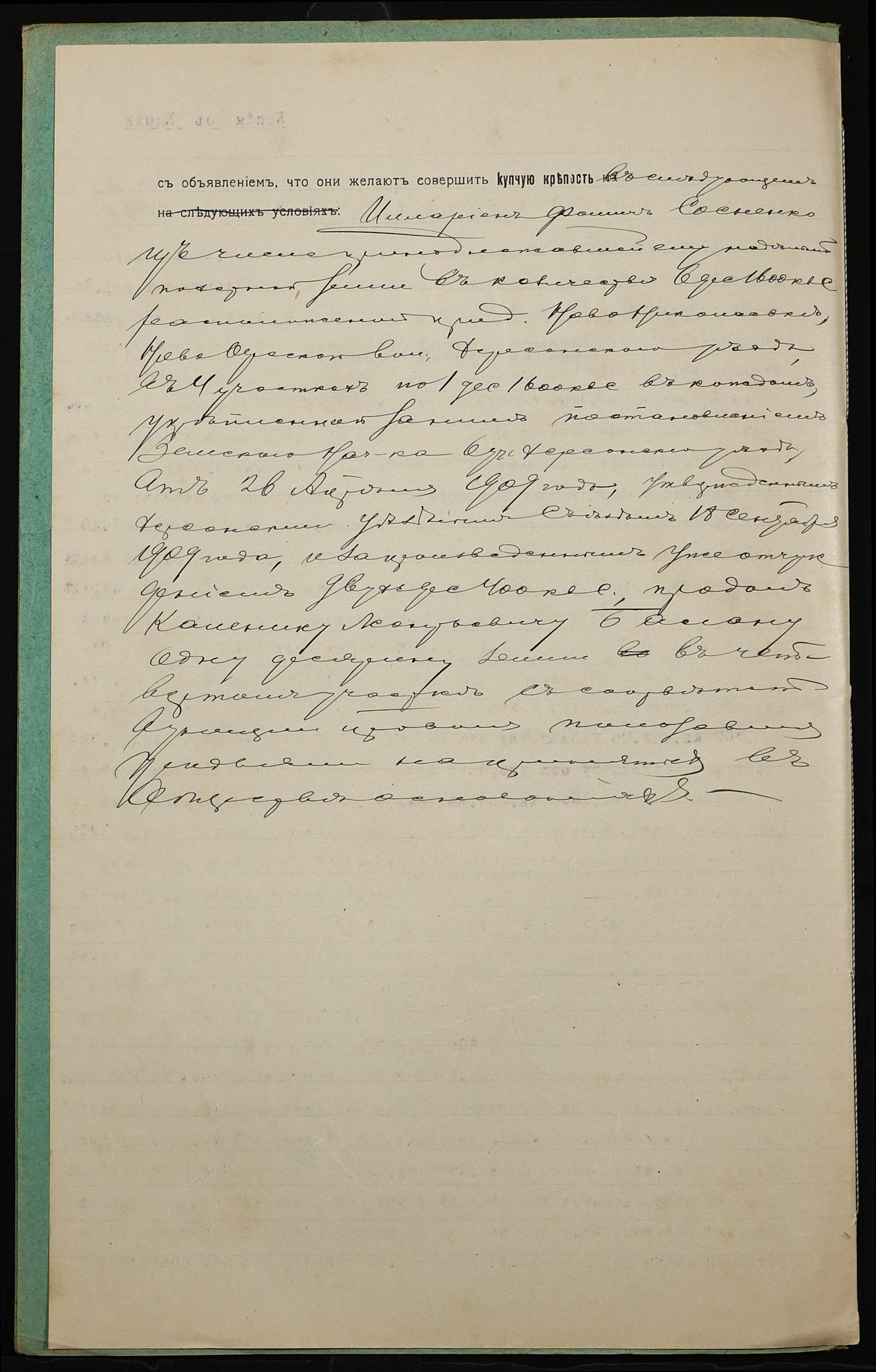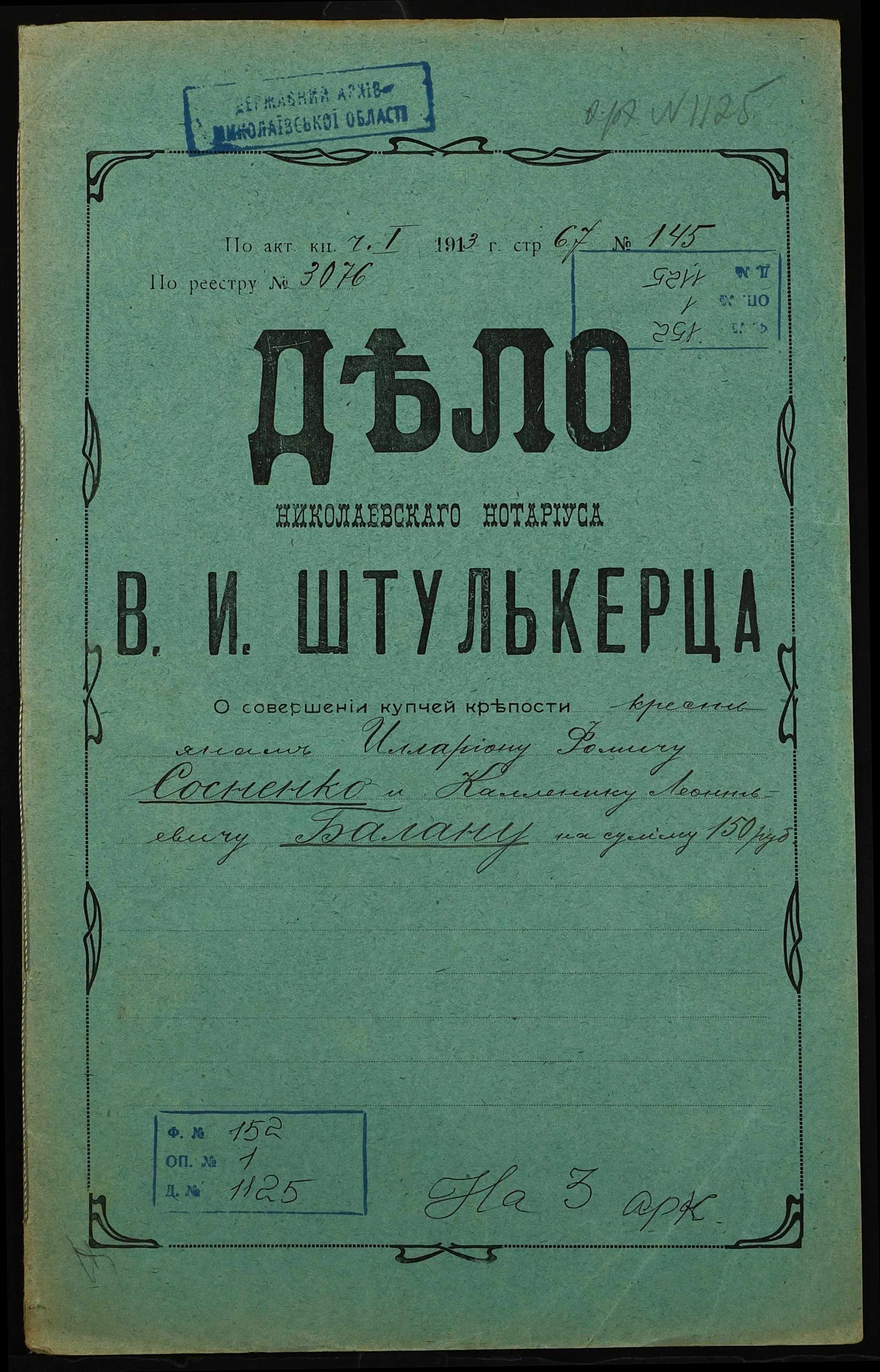 • • • • Справа № 1125 “Справа про вчинення купчої про продаж землі селянином Сосненком Іларіоном Хомичем (Сосненко Илларионом Фомичем) на користь селянина Балана Каленика Леонтійовича (Балана Каленика Леонтьевича)”