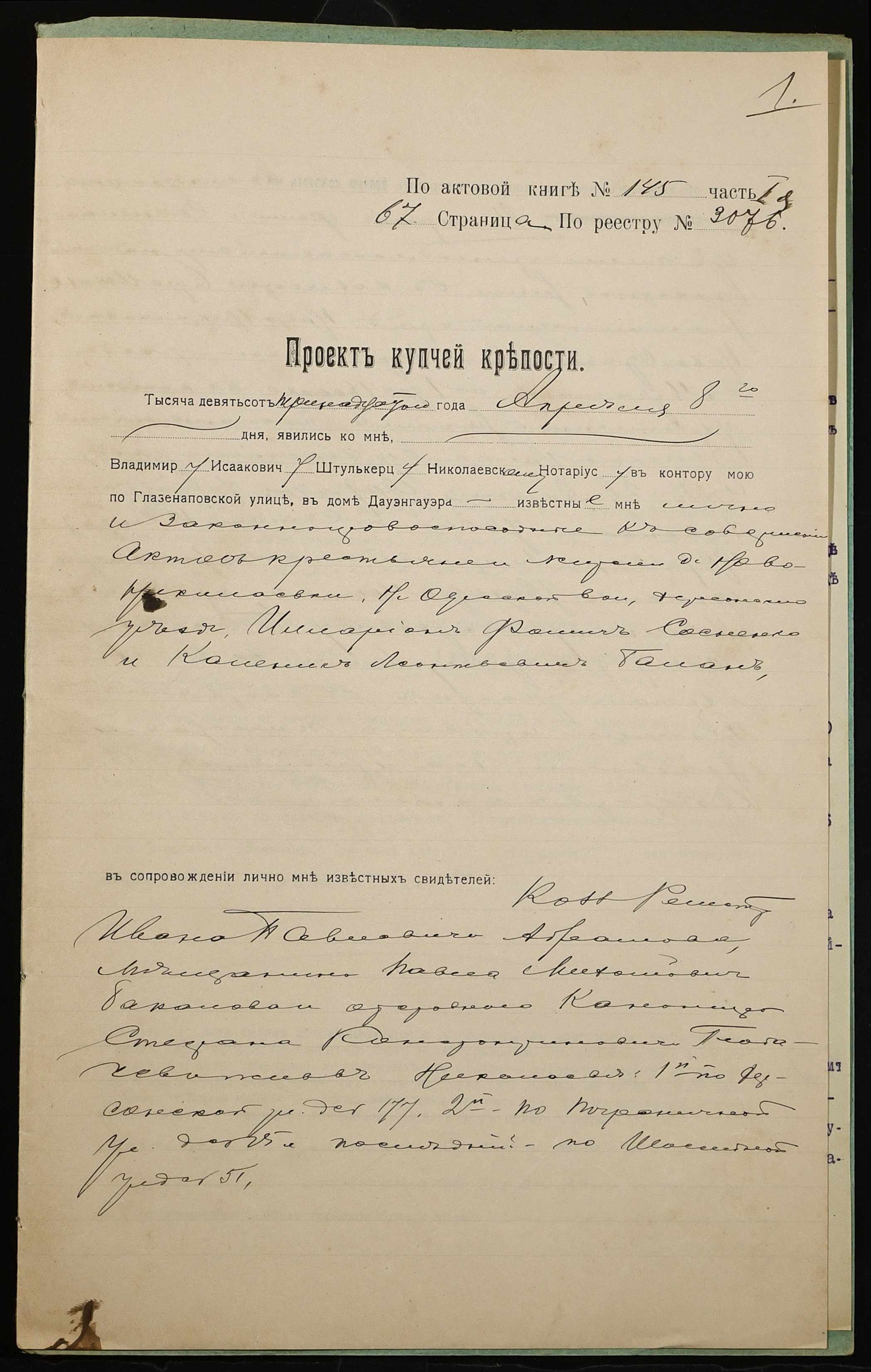 ◦ ◦ Фонд № 152 “Контора миколаївського нотаріуса Херсонського окружного суду Штулькерца Володимира Ісааковича”