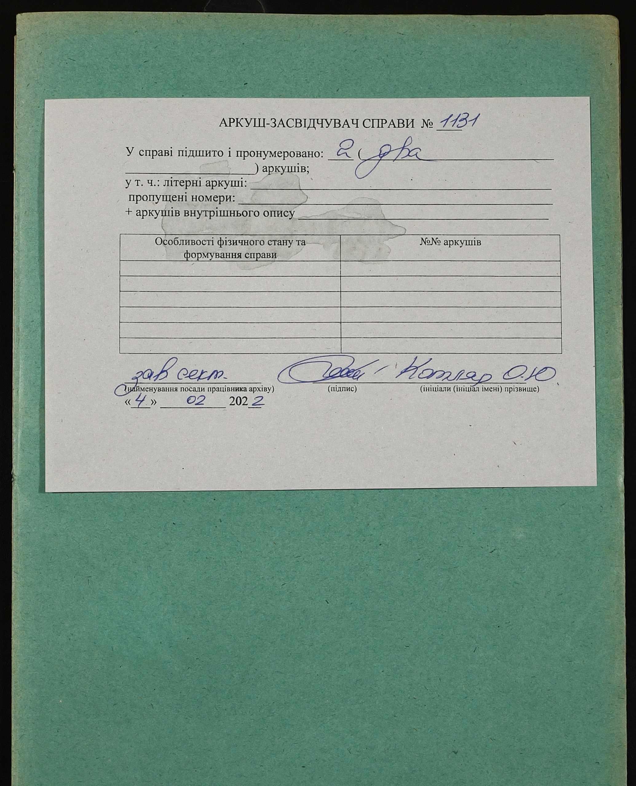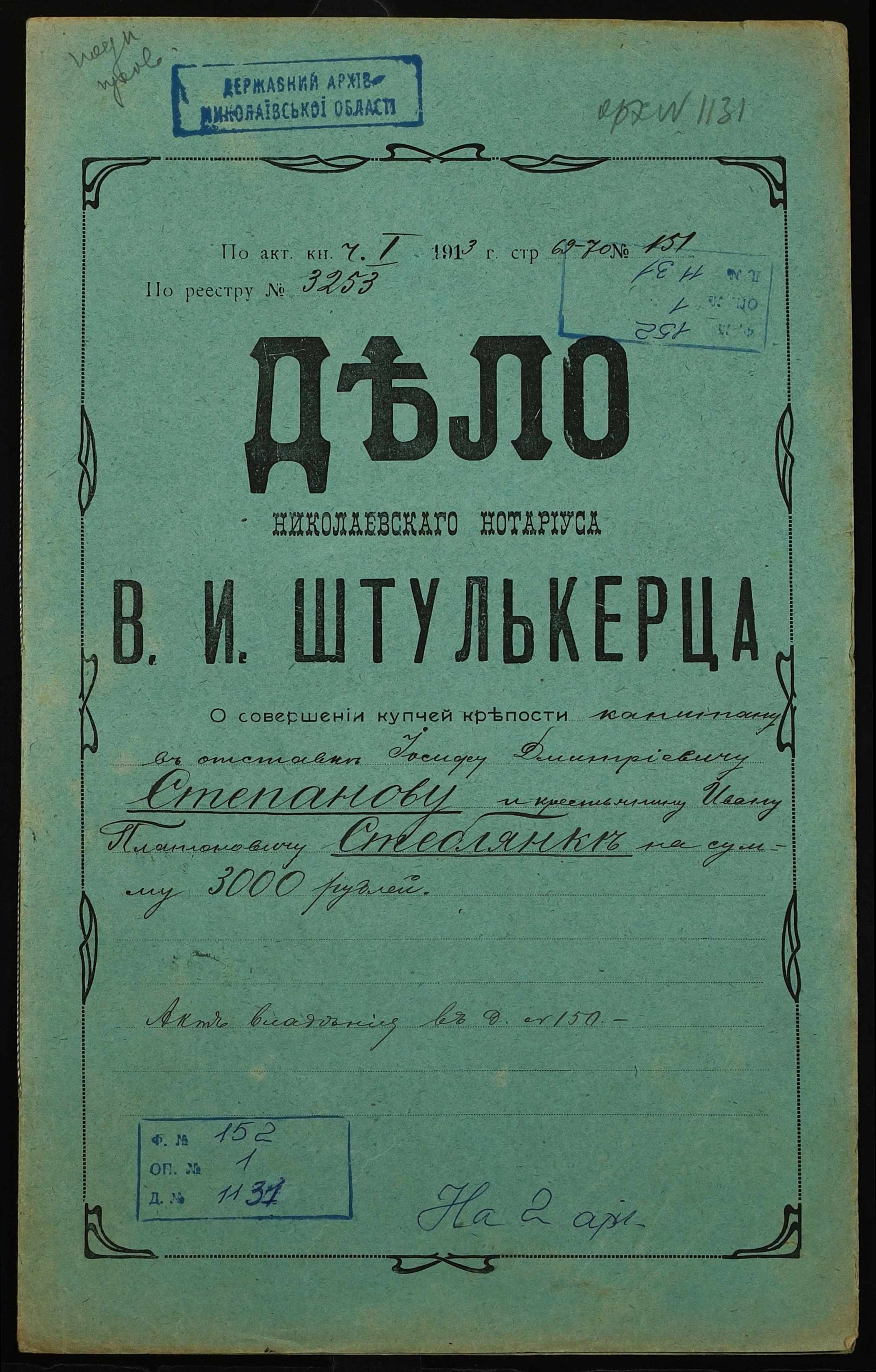 • • • • Справа № 1131 “Справа про вчинення купчої про продаж нерухомого майна відставним капітаном Степановим Йосипом Дмитровичем (Степановым Иосифом Дмитриевичем) на користь селянина Стеблянки Івана Платоновича (Стеблянки Ивана Платоновича)”