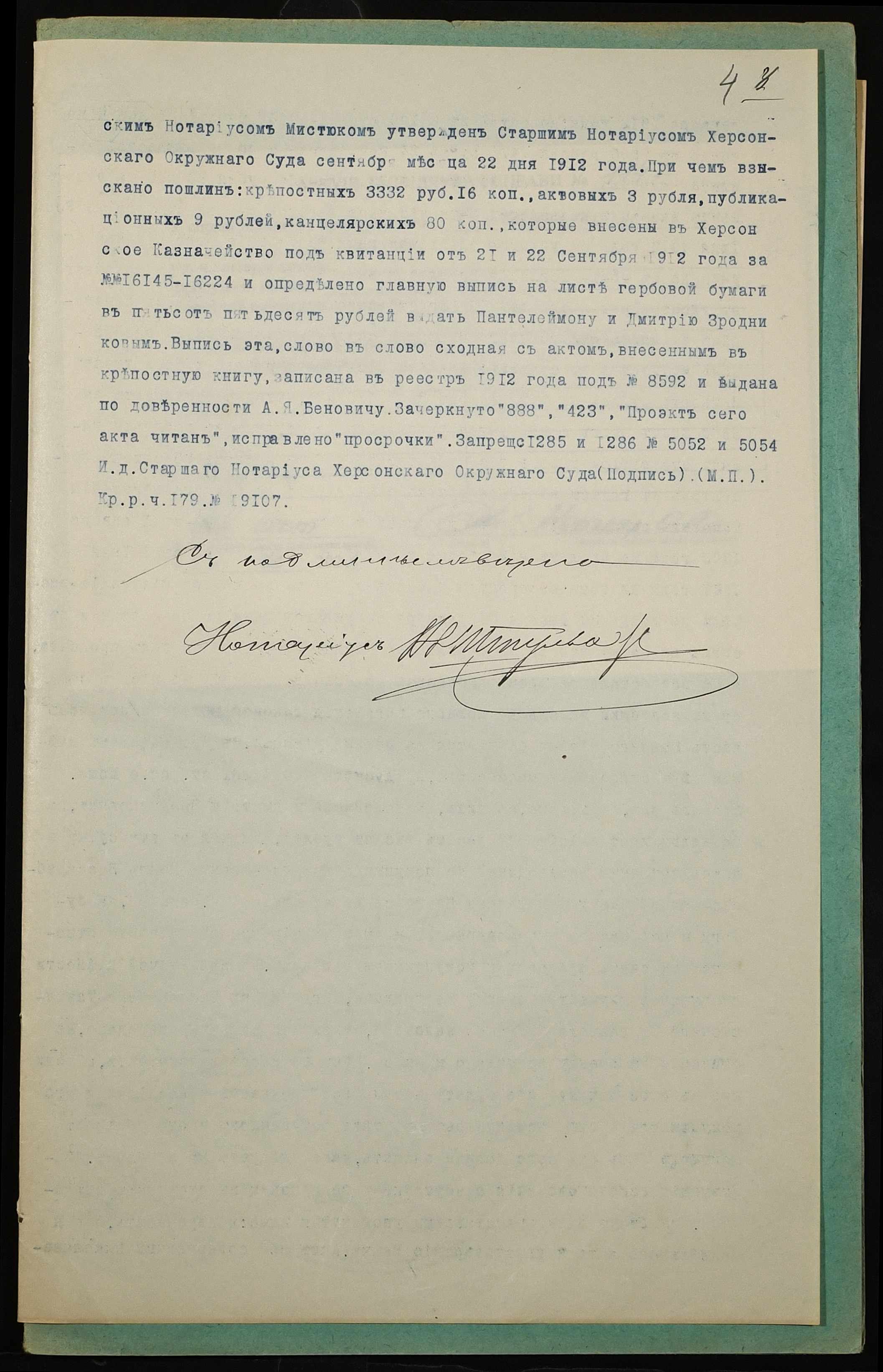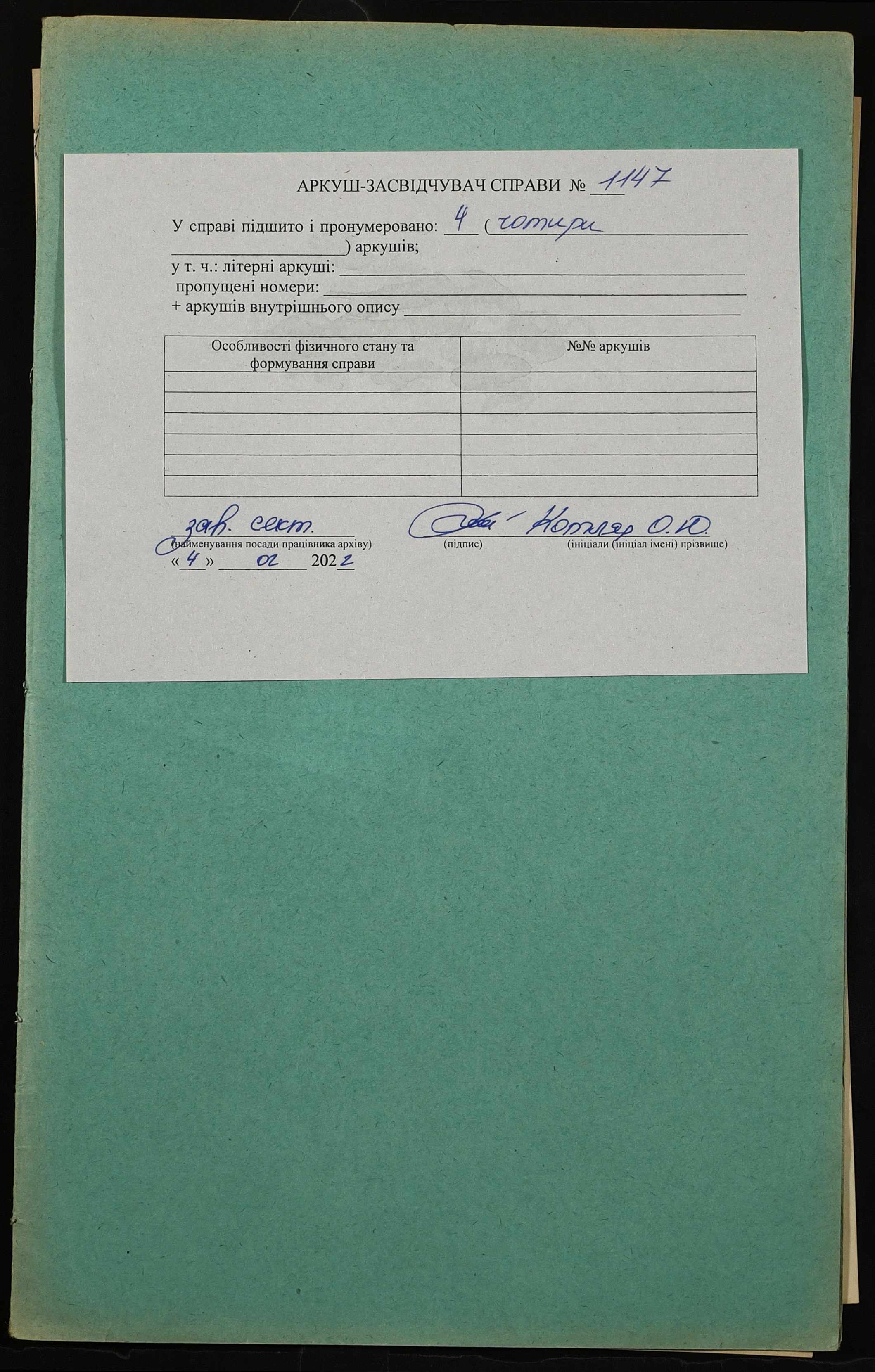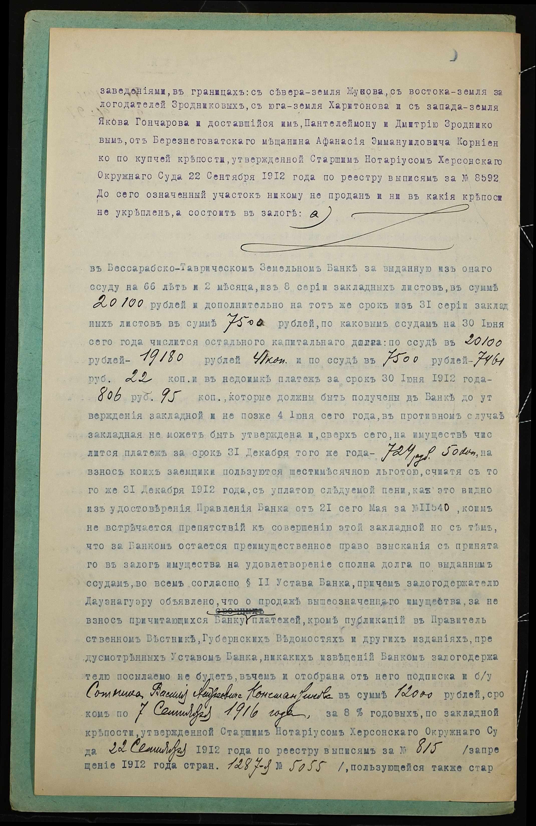 • • • • Справа № 1147 “Справа про вчинення заставної на землю, закладену селянами Зродниковими Пантелеймоном і Дмитром Родіоновичами (Зродниковыми Пантелеймоном и Дмитрием Радионовичами) – миколаївському купцю Френкелю Хаскелю Давидовичу (Френкелю Хаскелю Давидовичу), повіреному Дауенгауера Георгія Християновича (Дауэнгауэра Георгия Христяновича)”