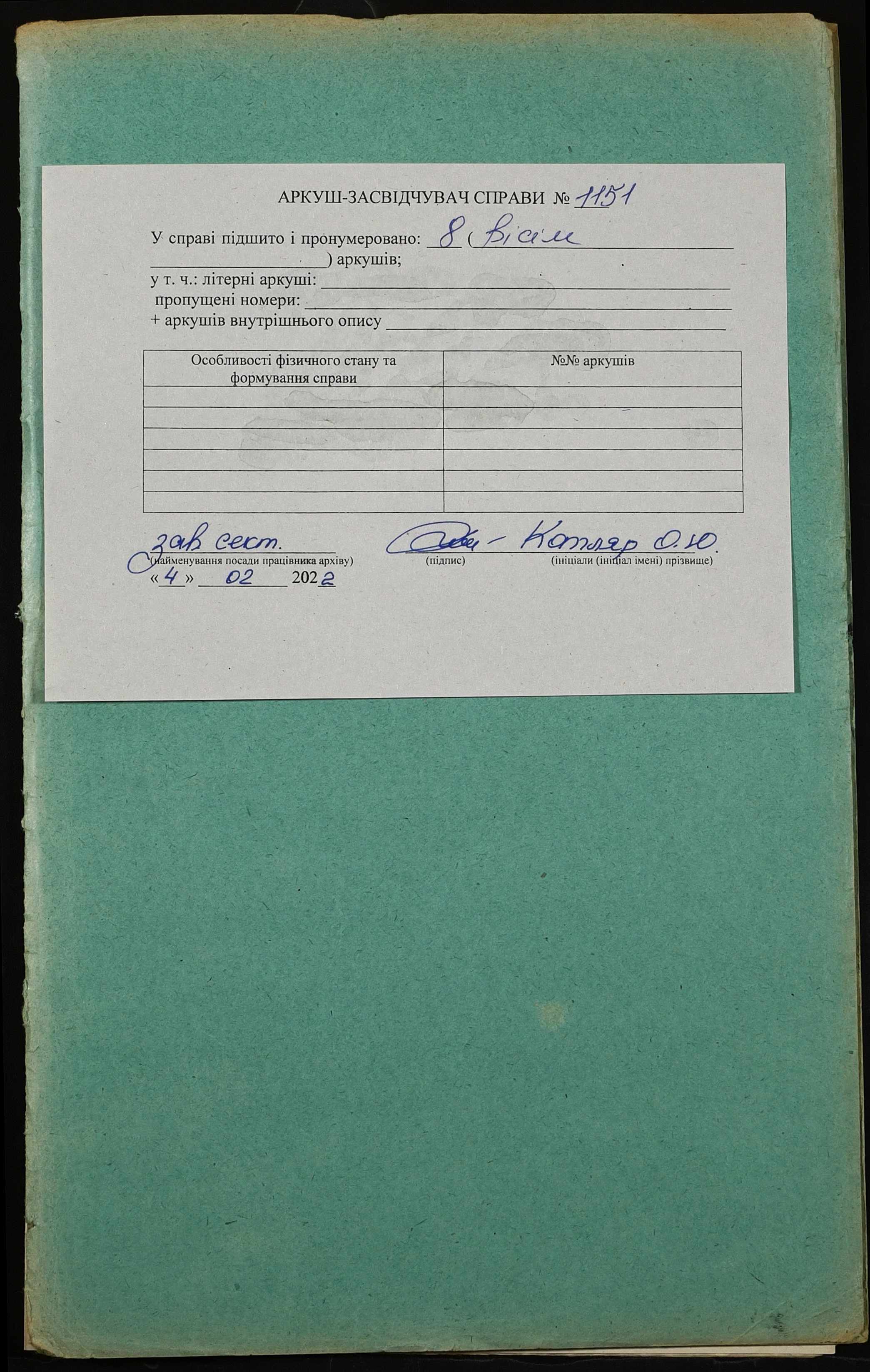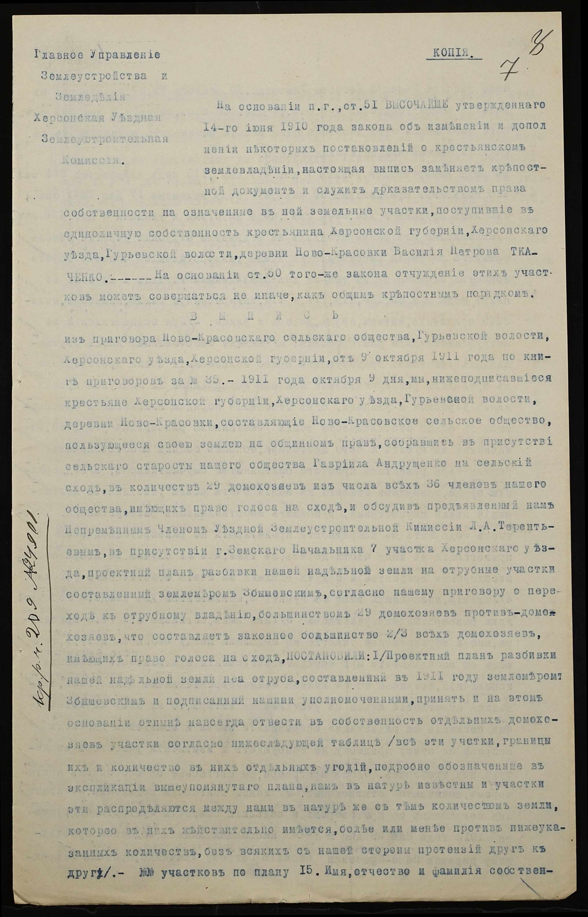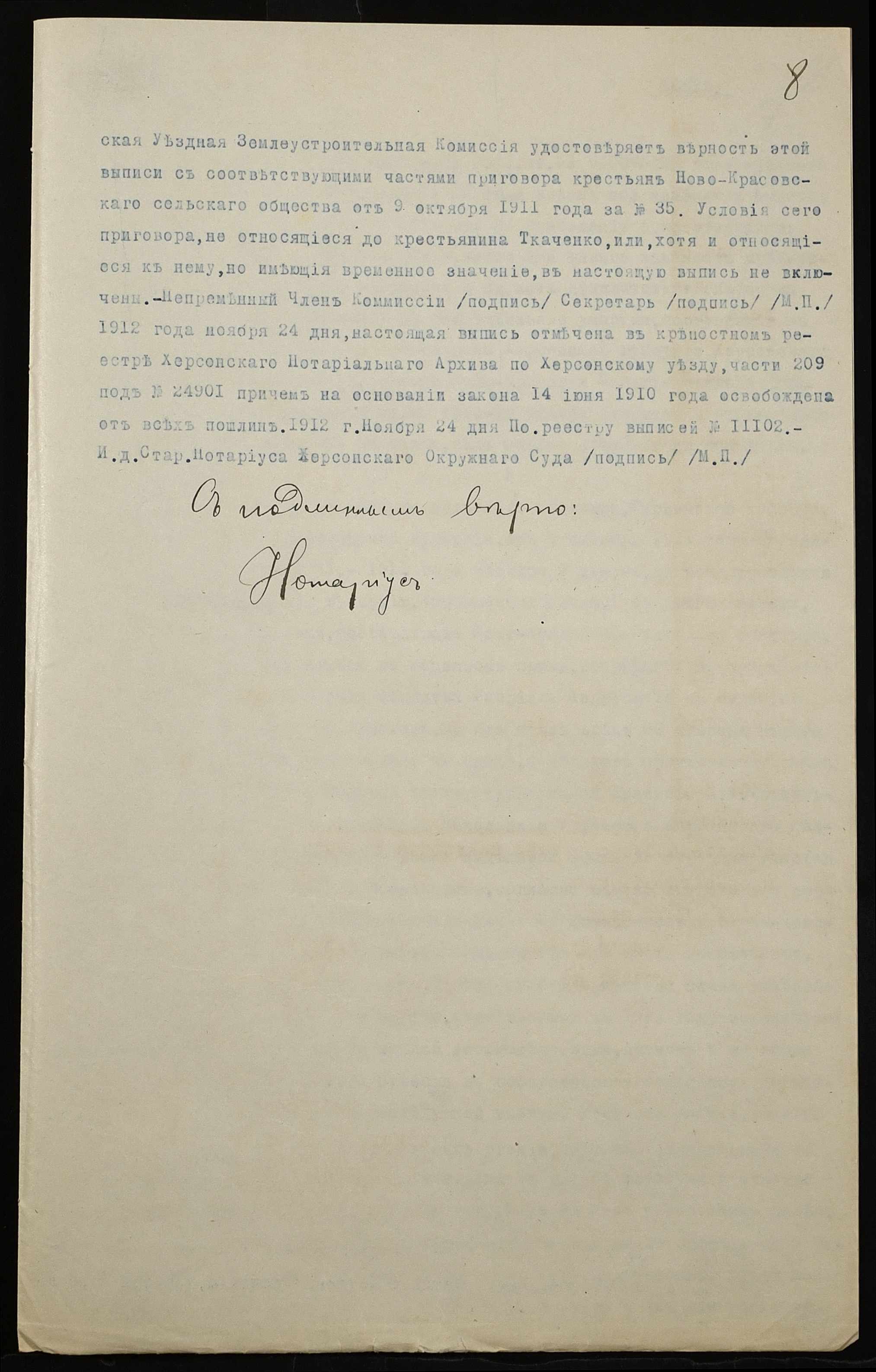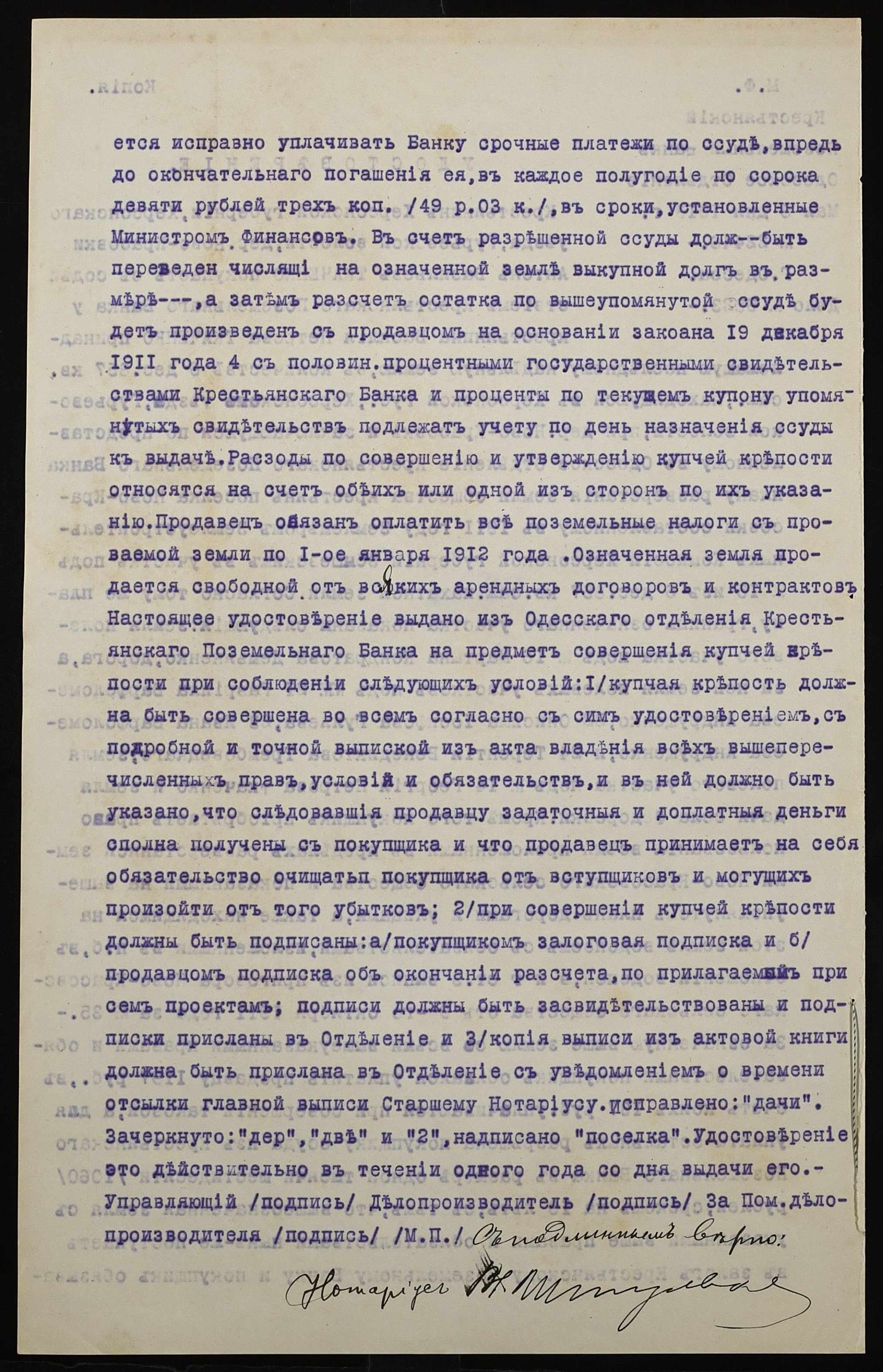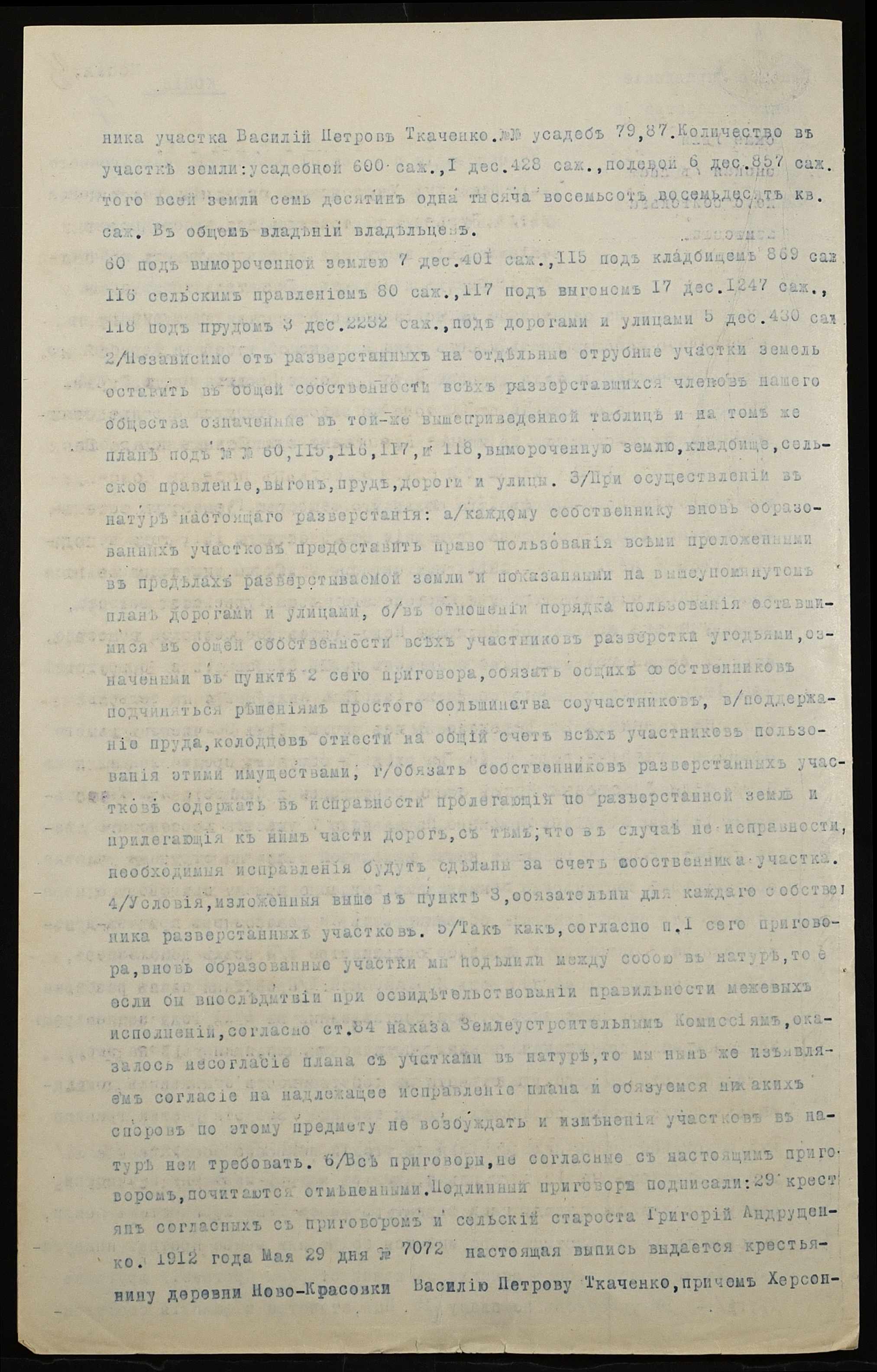 • • • • Справа № 1151 “Справа про вчинення купчої про продаж землі селянином Ткаченком Василем Петровичем (Ткаченко Василием Петровичем) на користь селянина Ткаченка Антона Васильовича (Ткаченко Антона Васильевича) за сприяння Селянського поземельного банку”