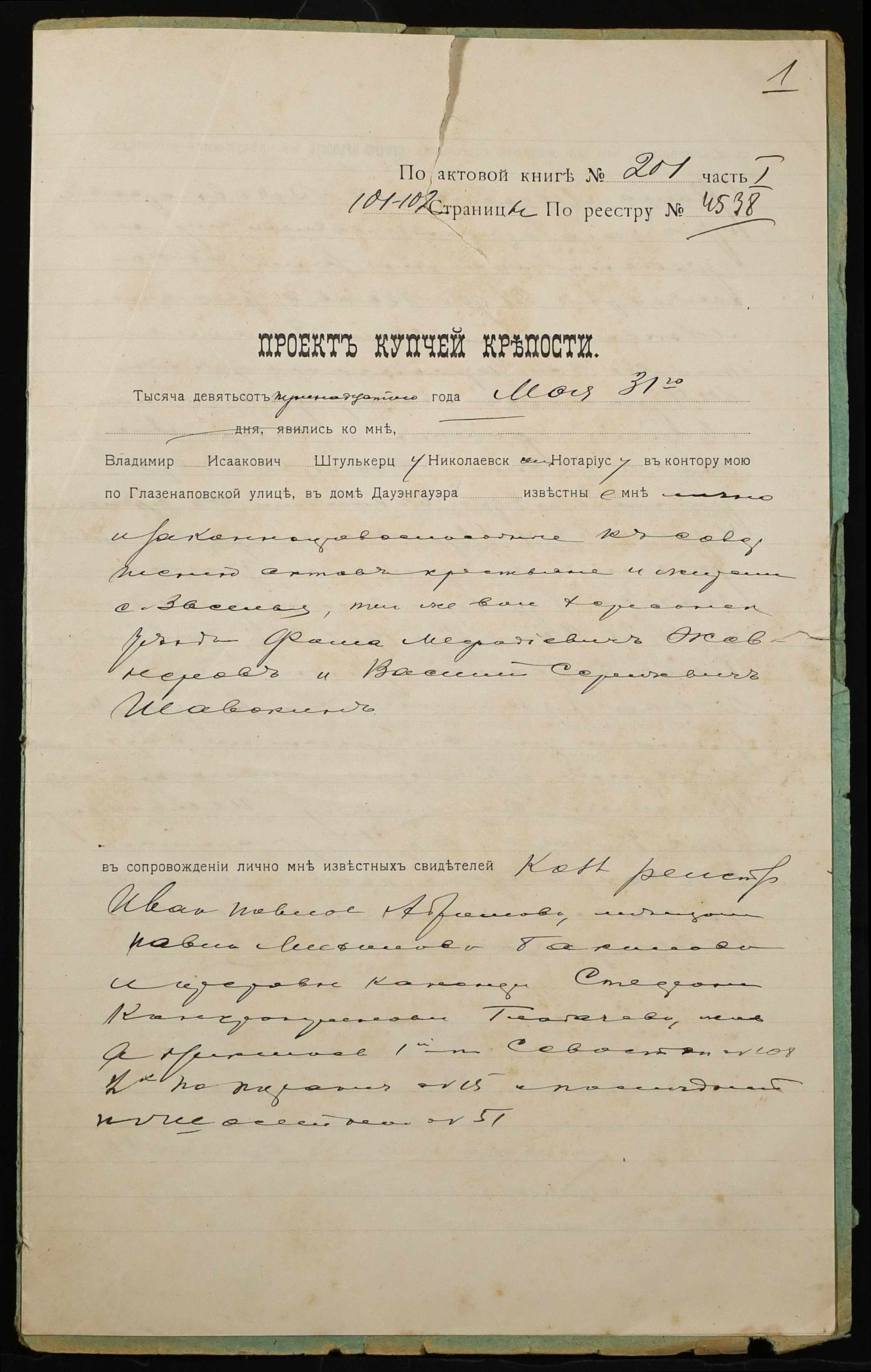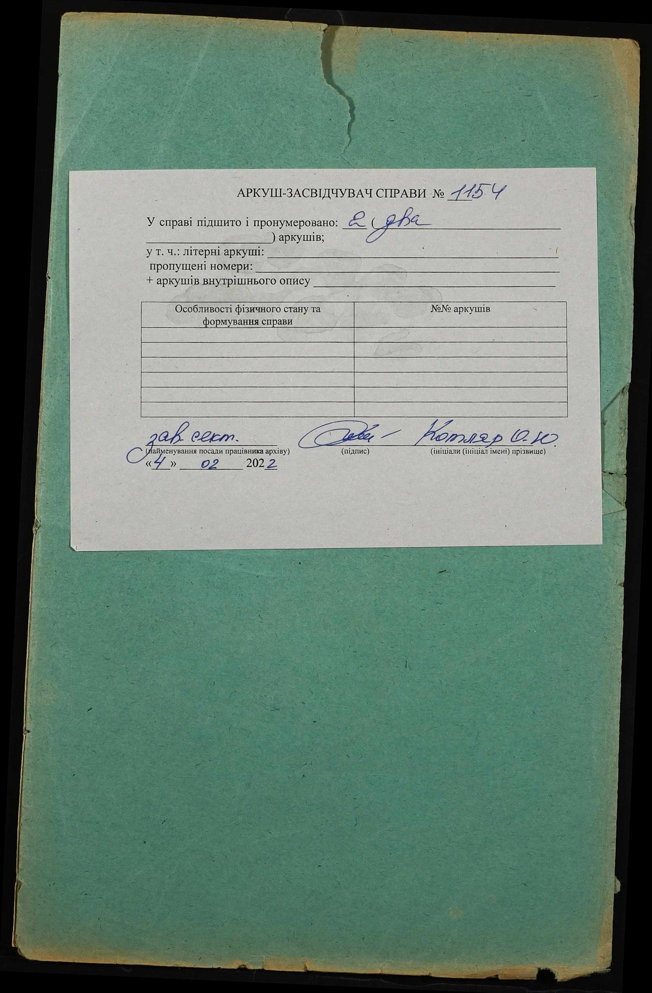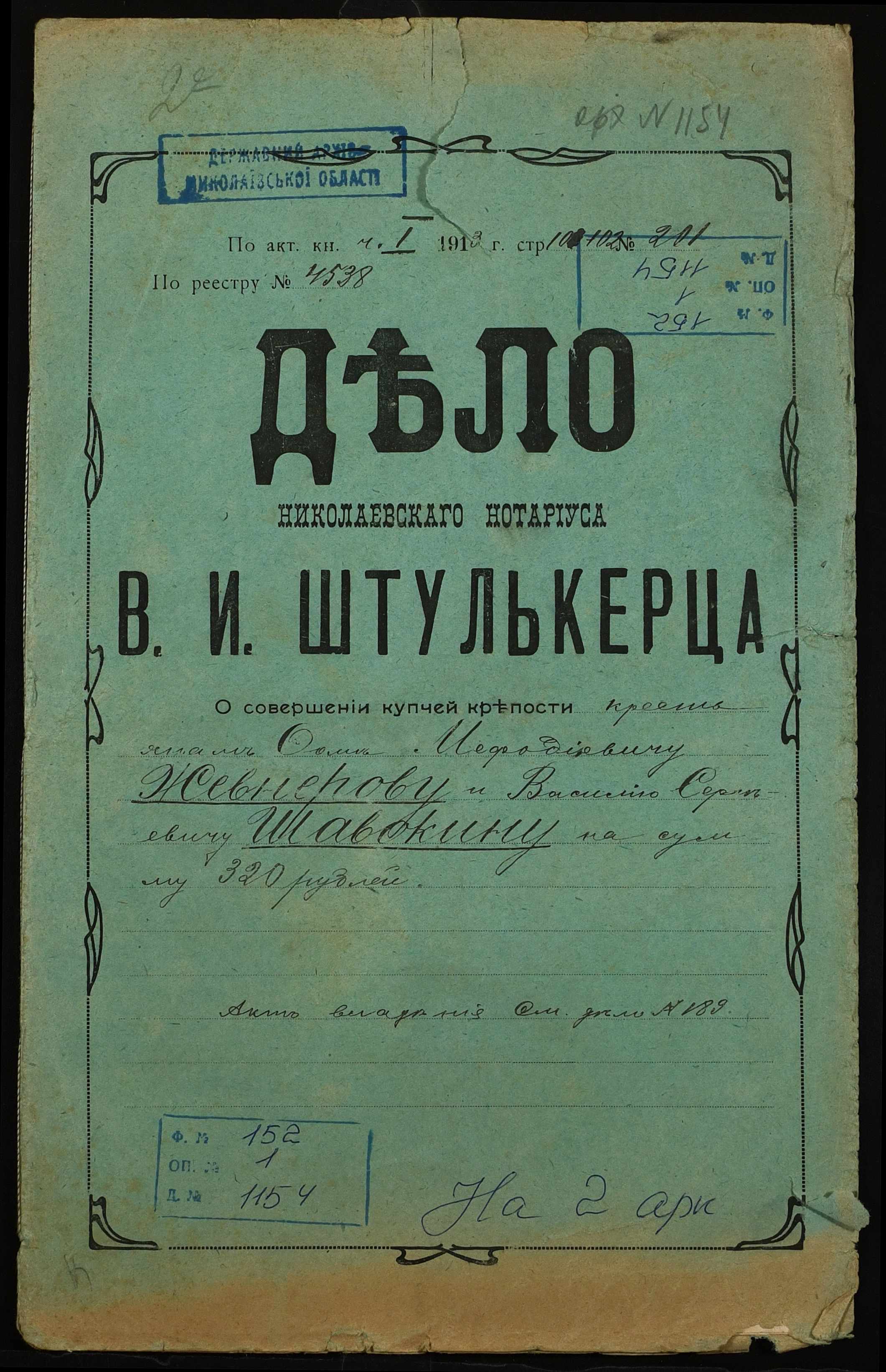 • • • • Справа № 1154 “Справа про вчинення купчої про продаж землі селянином Жевнеровим Хомою Мефодійовичем (Жевнеровым Фомой Мефодьевичем) на користь селянина Шавокіна Василя Сергійовича (Шавокина Василия Сергеевича)”