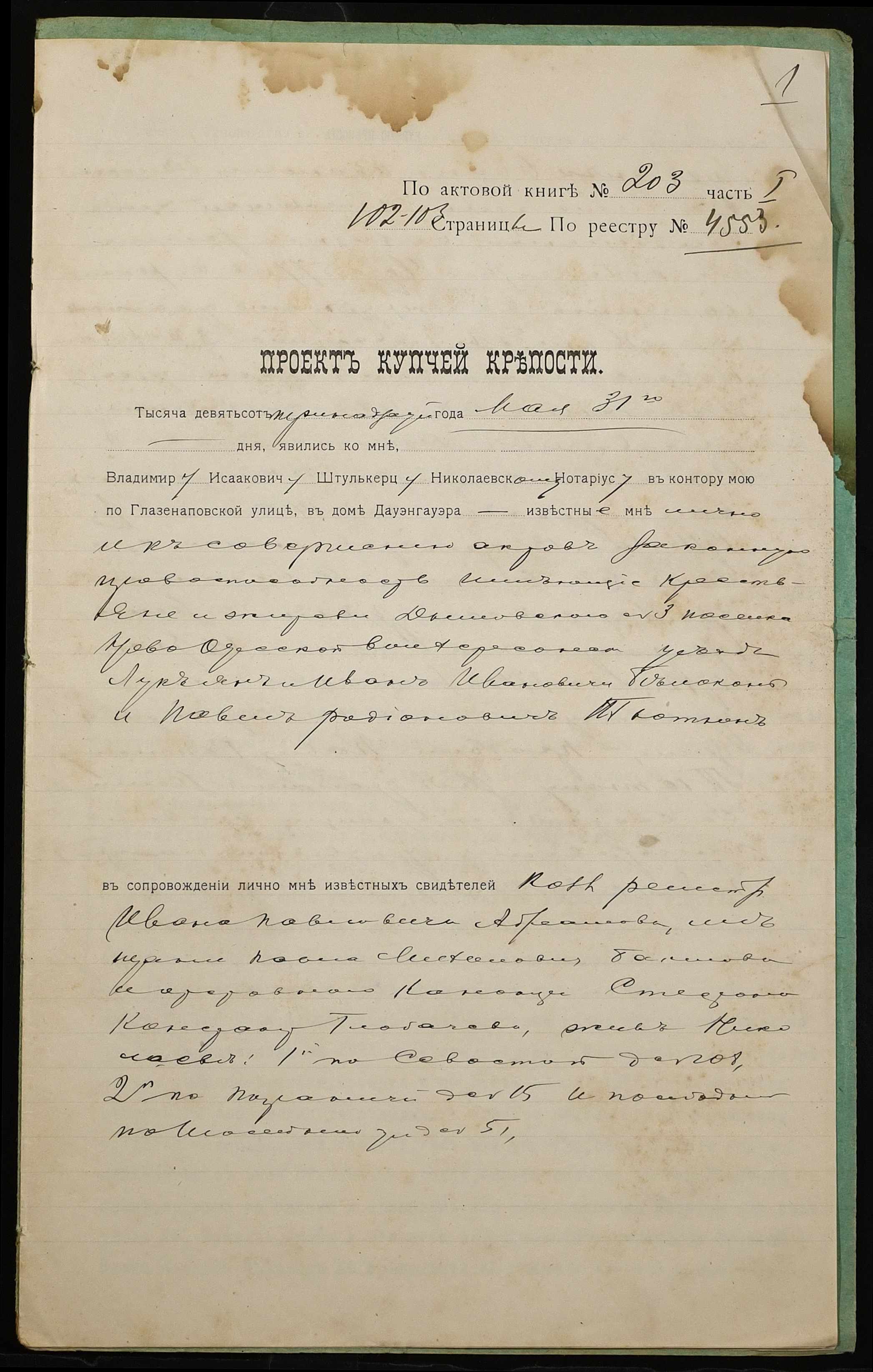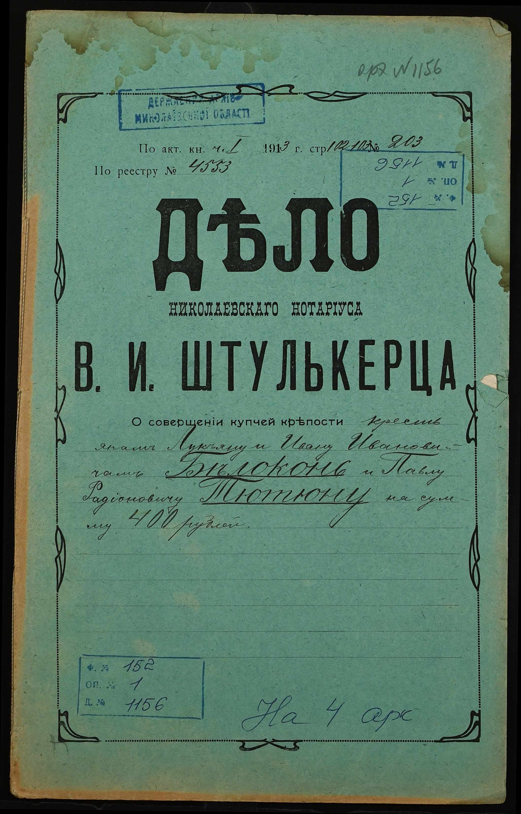 ◦ ◦ Фонд № 152 “Контора миколаївського нотаріуса Херсонського окружного суду Штулькерца Володимира Ісааковича”