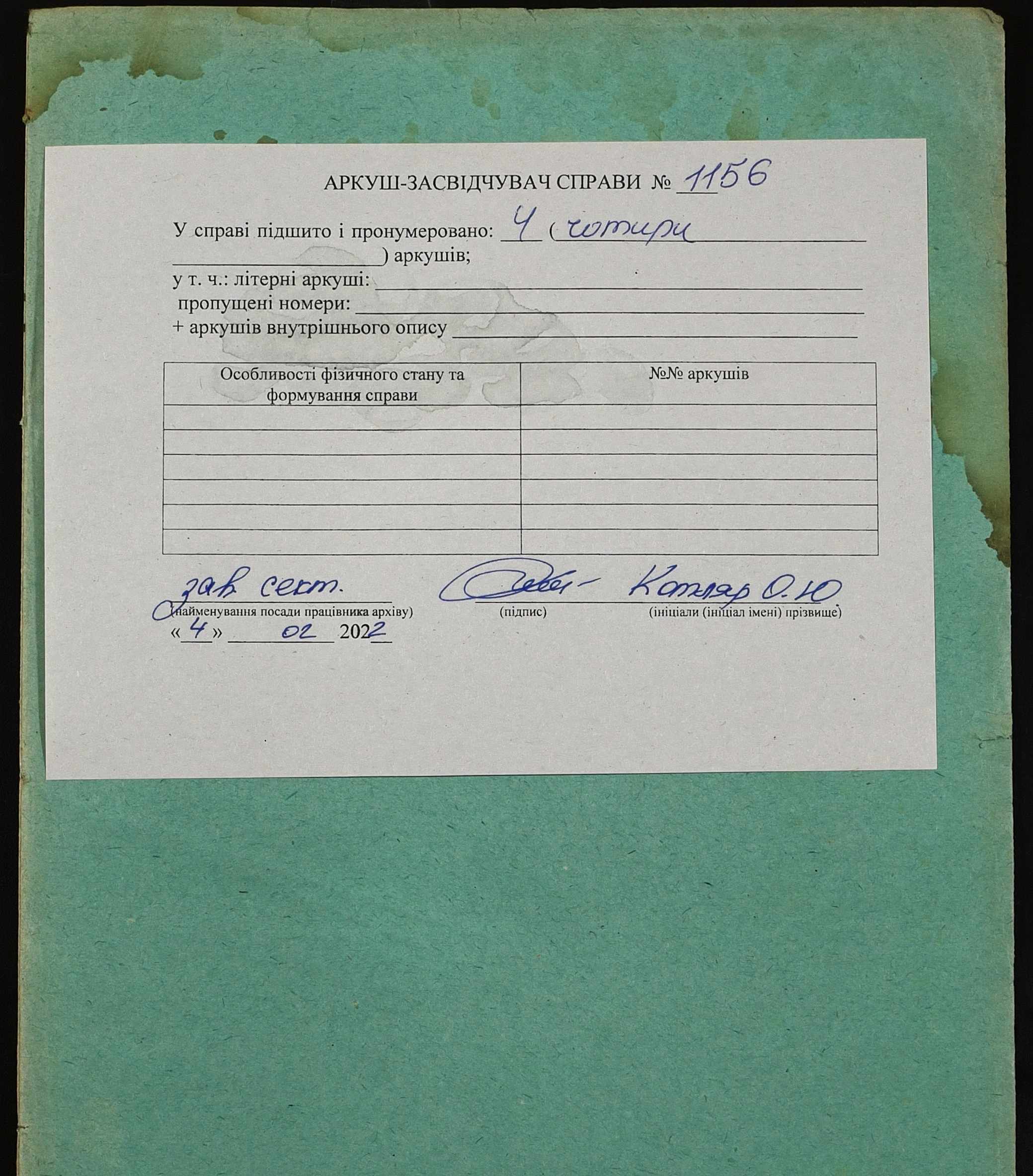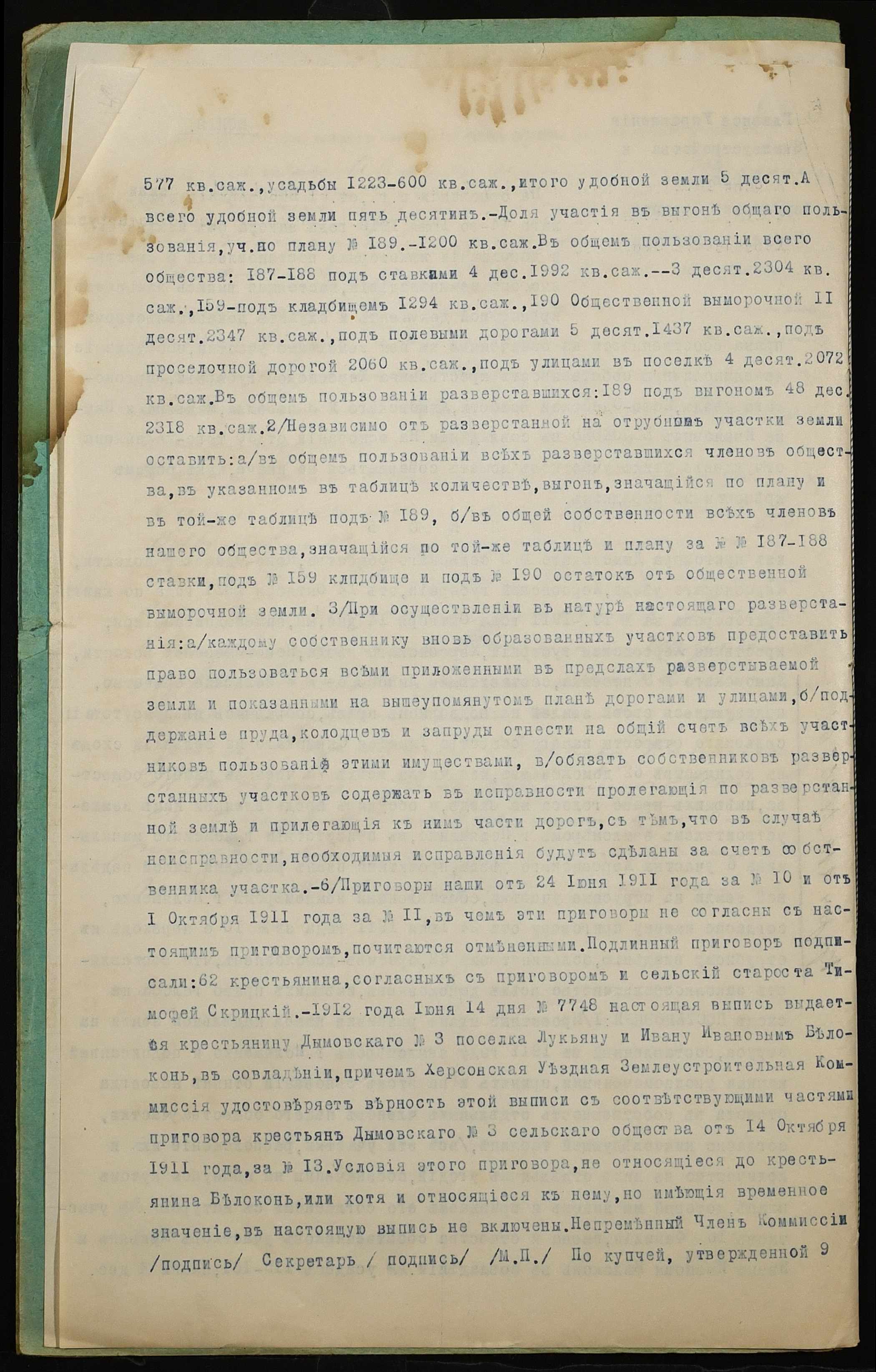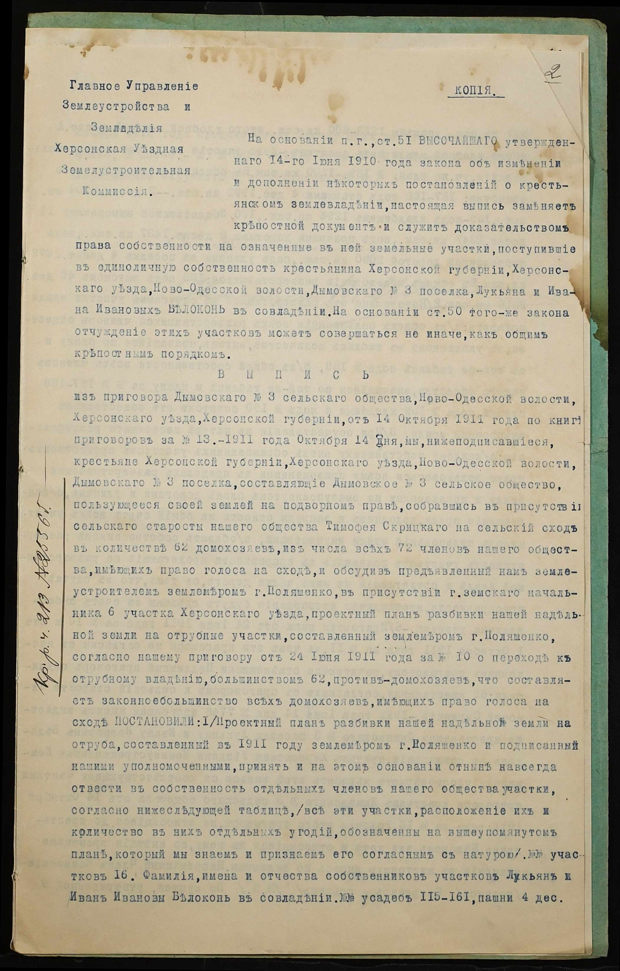 • • • • Справа № 1156 “Справа про вчинення купчої про продаж землі селянами Бєлоконь Лук’яном і Іваном Івановичем (Белоконь Лукьяном и Иваном Ивановичем) на користь селянина Тютюна Павла Родіоновича (Тютюна Павла Родионовича)”