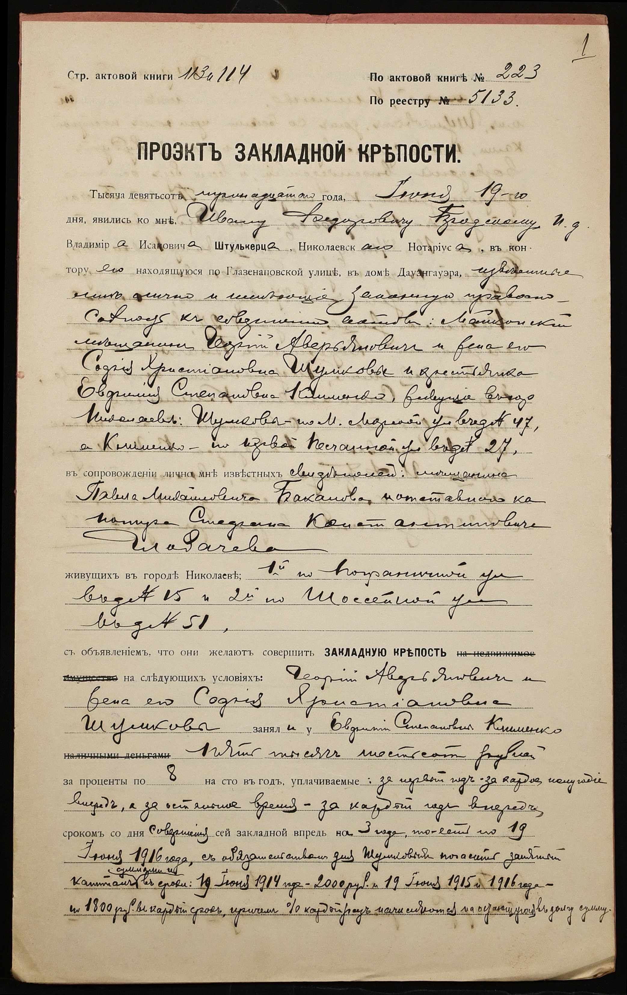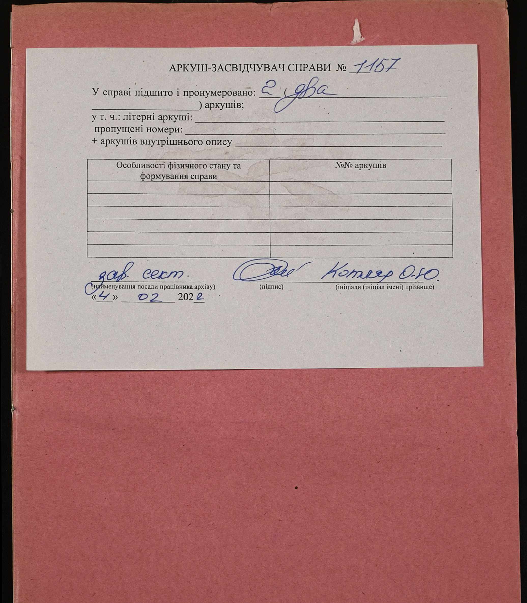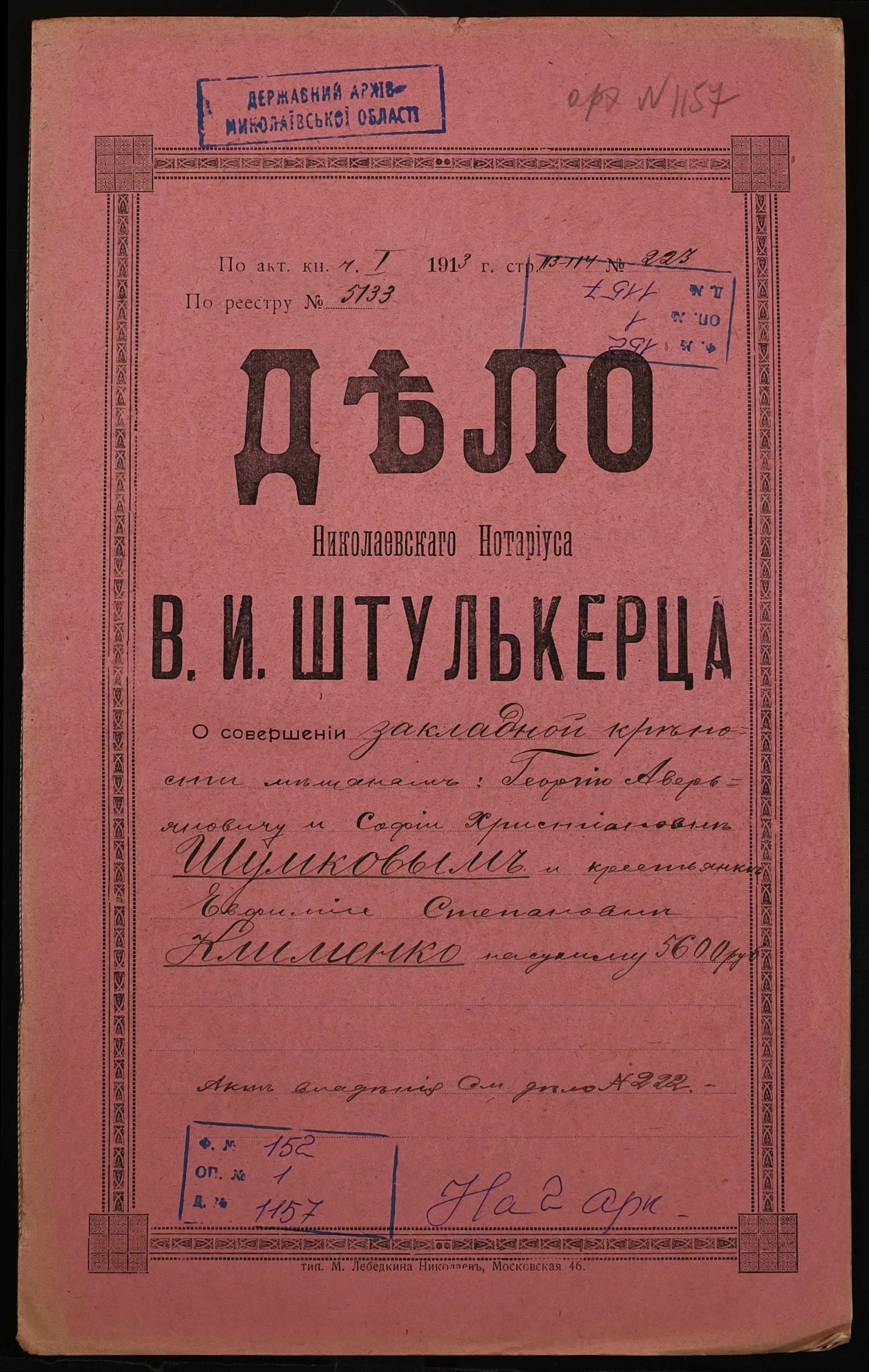 • • • • Справа № 1157 “Справа про вчинення заставної на будинок, закладений селянами Шумковим Георгієм Овер’яновичем (Шумковым Георгием Аверьяновичем) і Шумковою Софією Християнівною (Шумковой Софией Христиановной) – селянці Клименко Юхимії Степанівні (Клименко Ефимии Степановне)”
