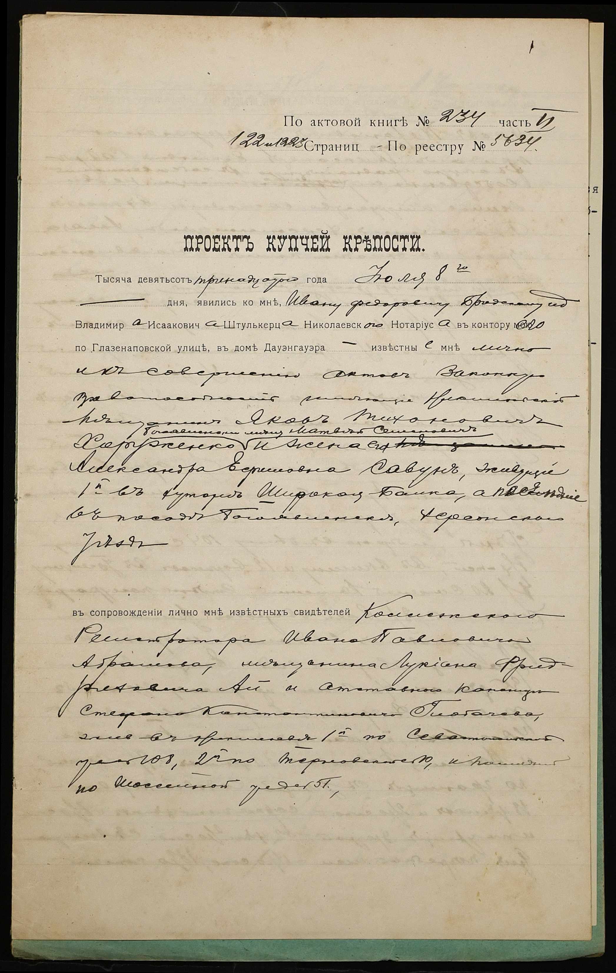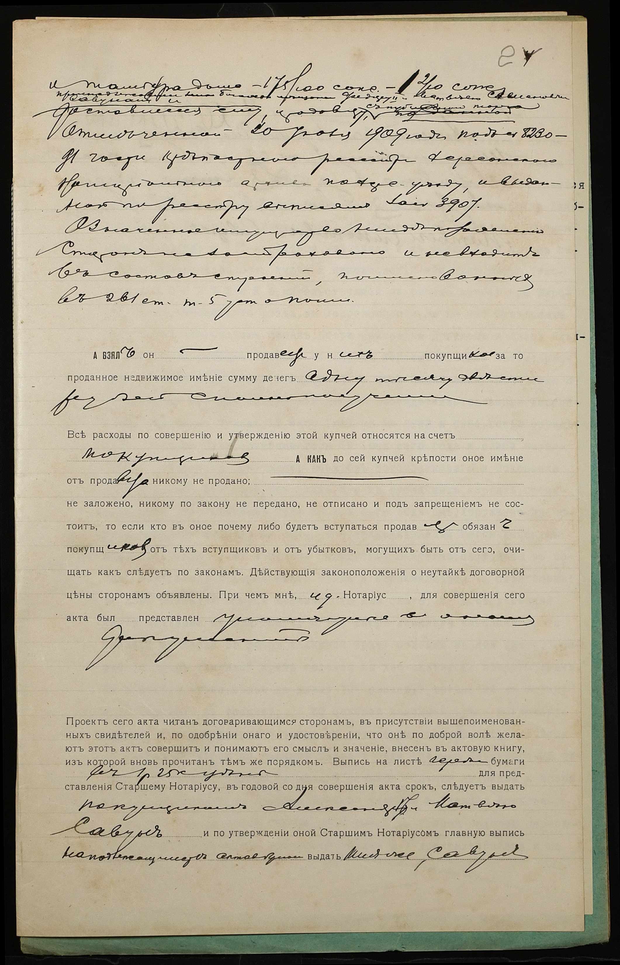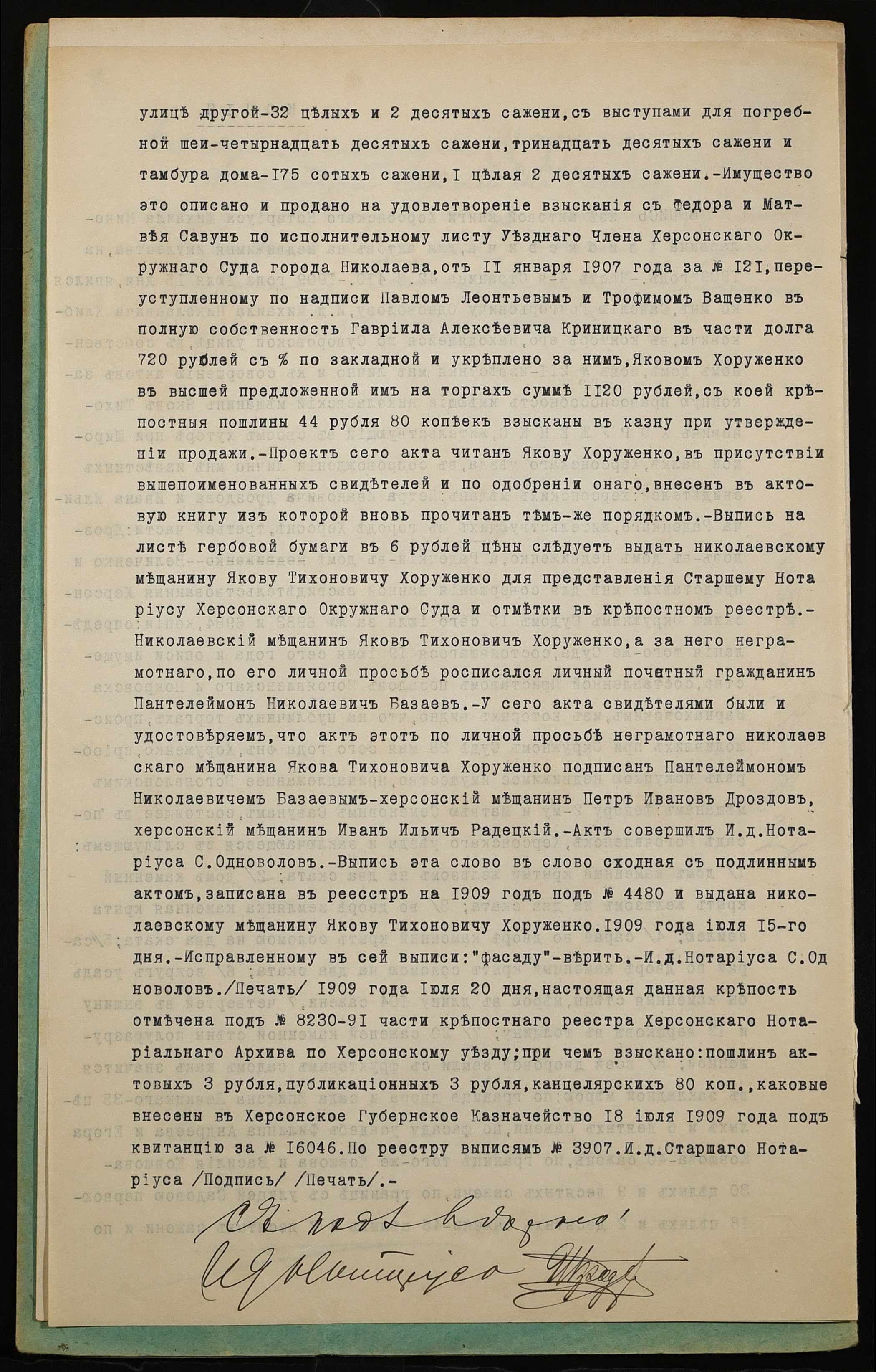 • • • • Справа № 1160 “Справа про вчинення купчої про продаж нерухомого майна міщанином Хоруженком Яковом Тихоновичем (Хоруженко Яковом Тихоновичем) на користь міщан Савун Олександри Юхимівни (Савун Александры Ефимовны) і Савуна Матвія Семеновича (Савуна Матвея Семеновича)”