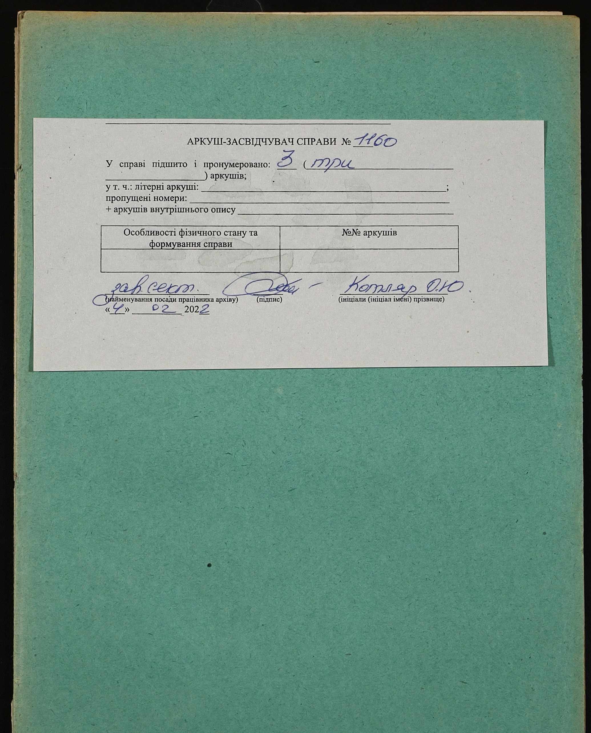 Фонд 152 / Опис 1 / Справа 1160