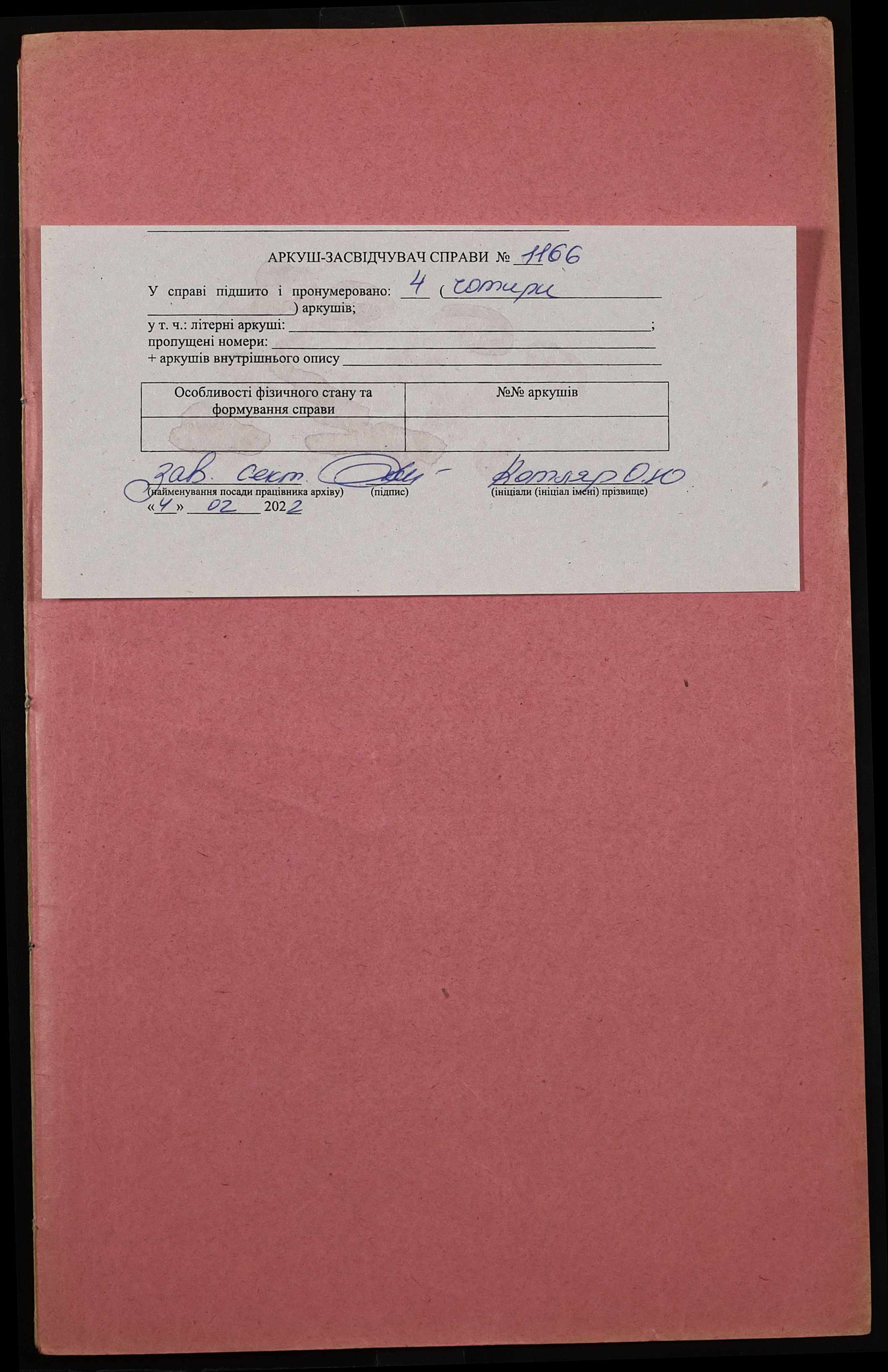 Фонд 152 / Опис 1 / Справа 1166