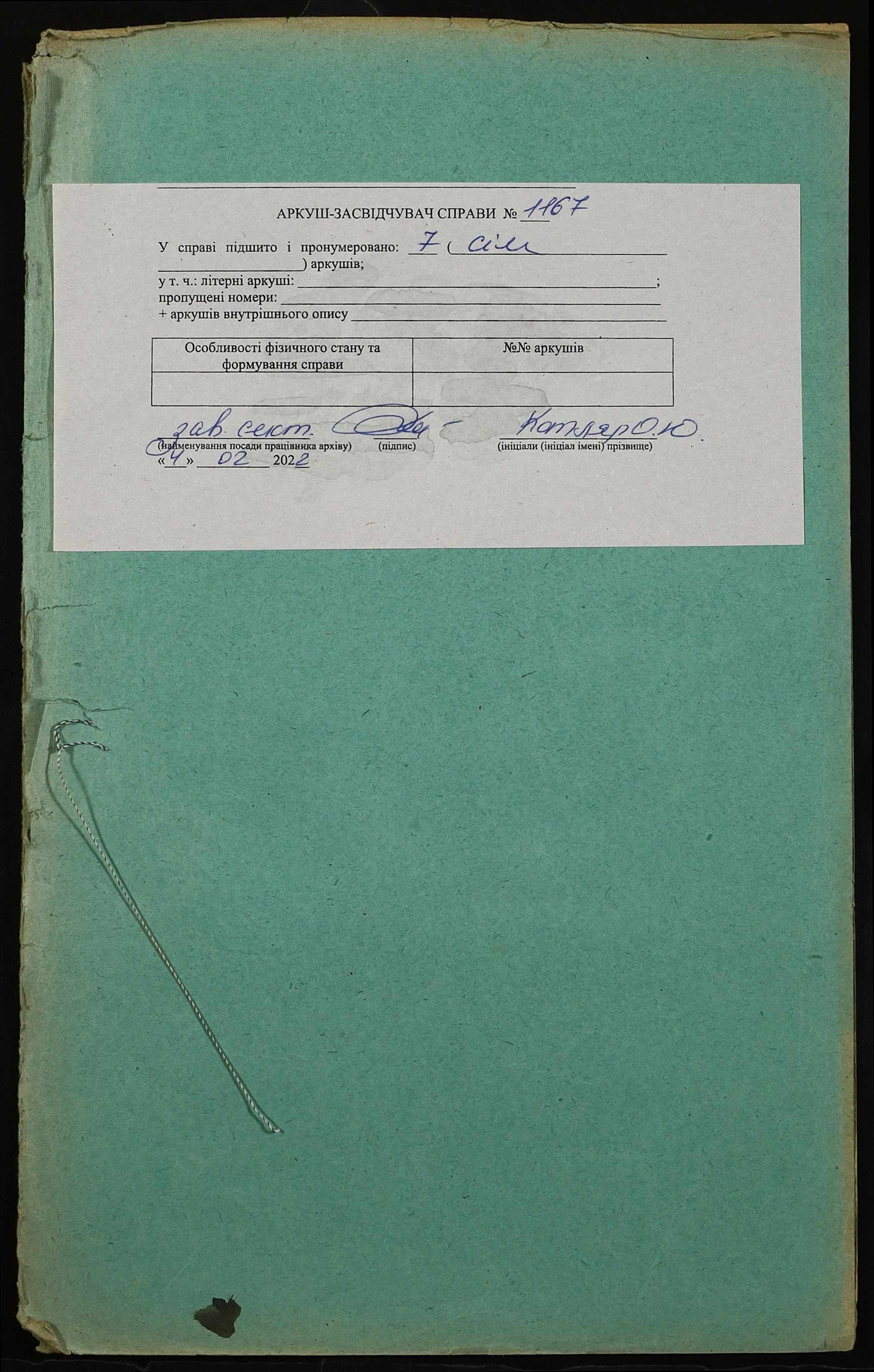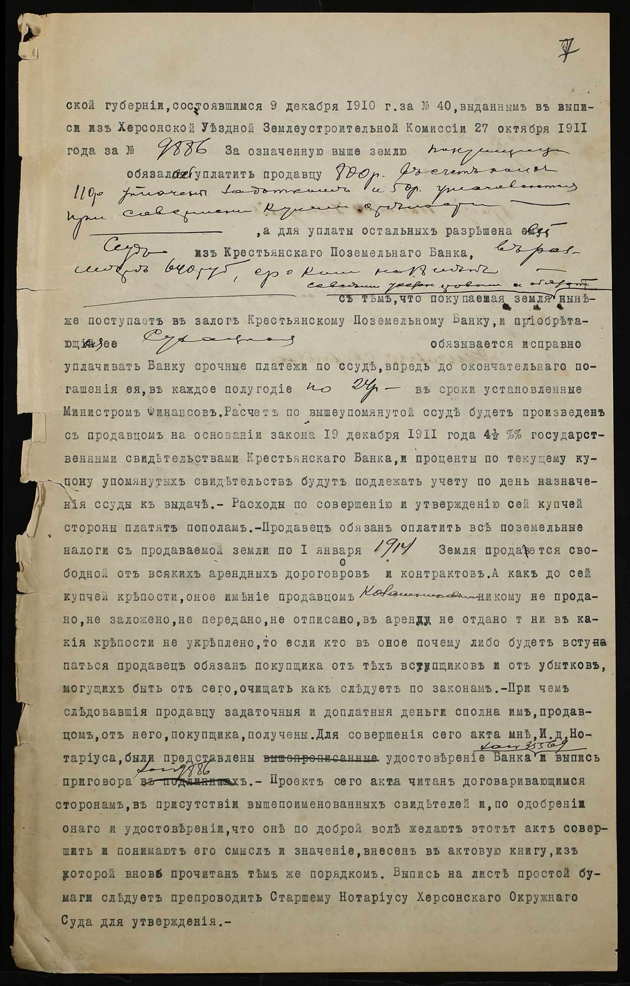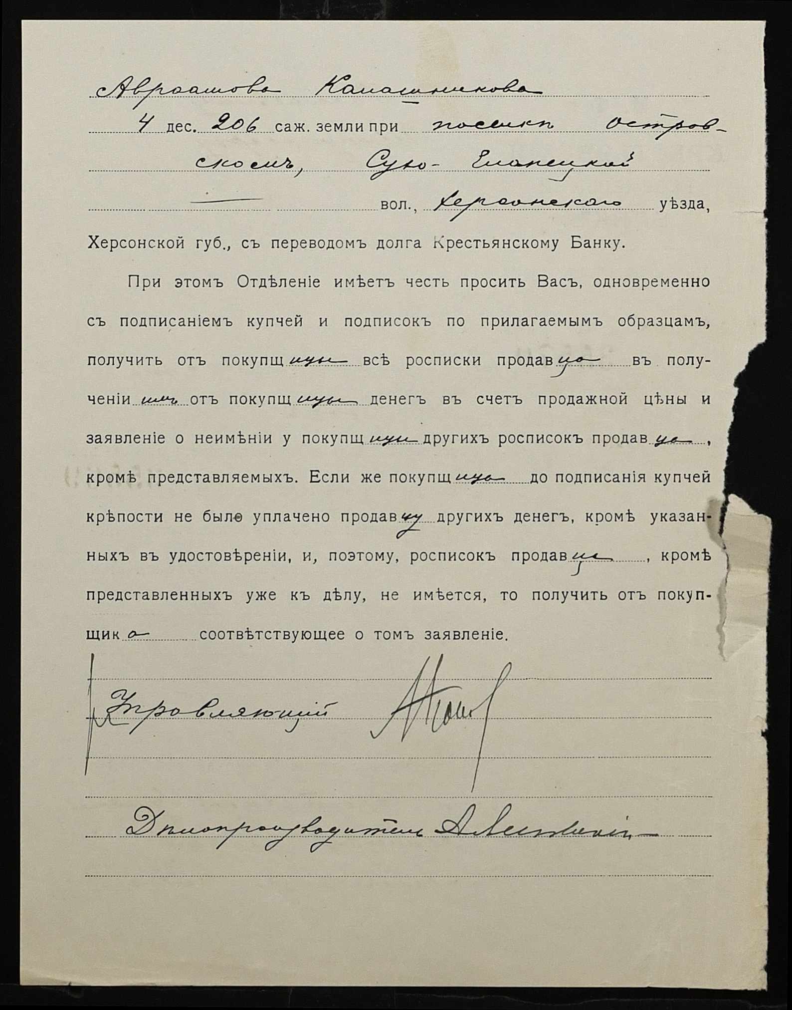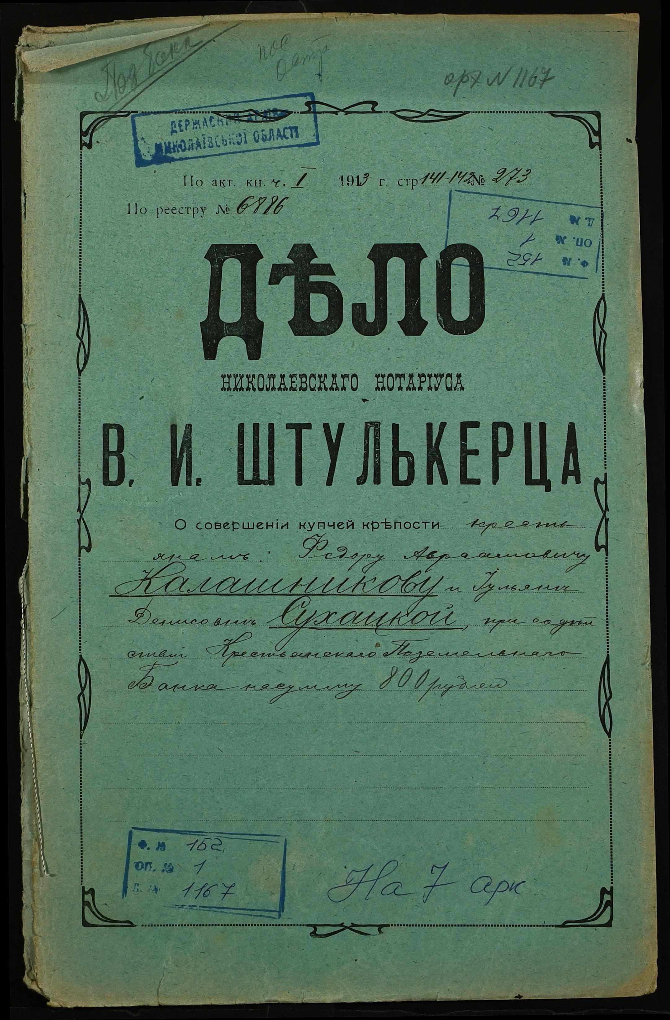 • • • • Справа № 1167 “Справа про вчинення купчої про продаж землі селянином Калашниковим Федором Аврамовичем (Калашниковым Федором Аврамовичем) на користь селянки Сухацької Уляни Денисівни (Сухацкой Иулианы) Денисовны) за сприяння Селянського поземельного банку”