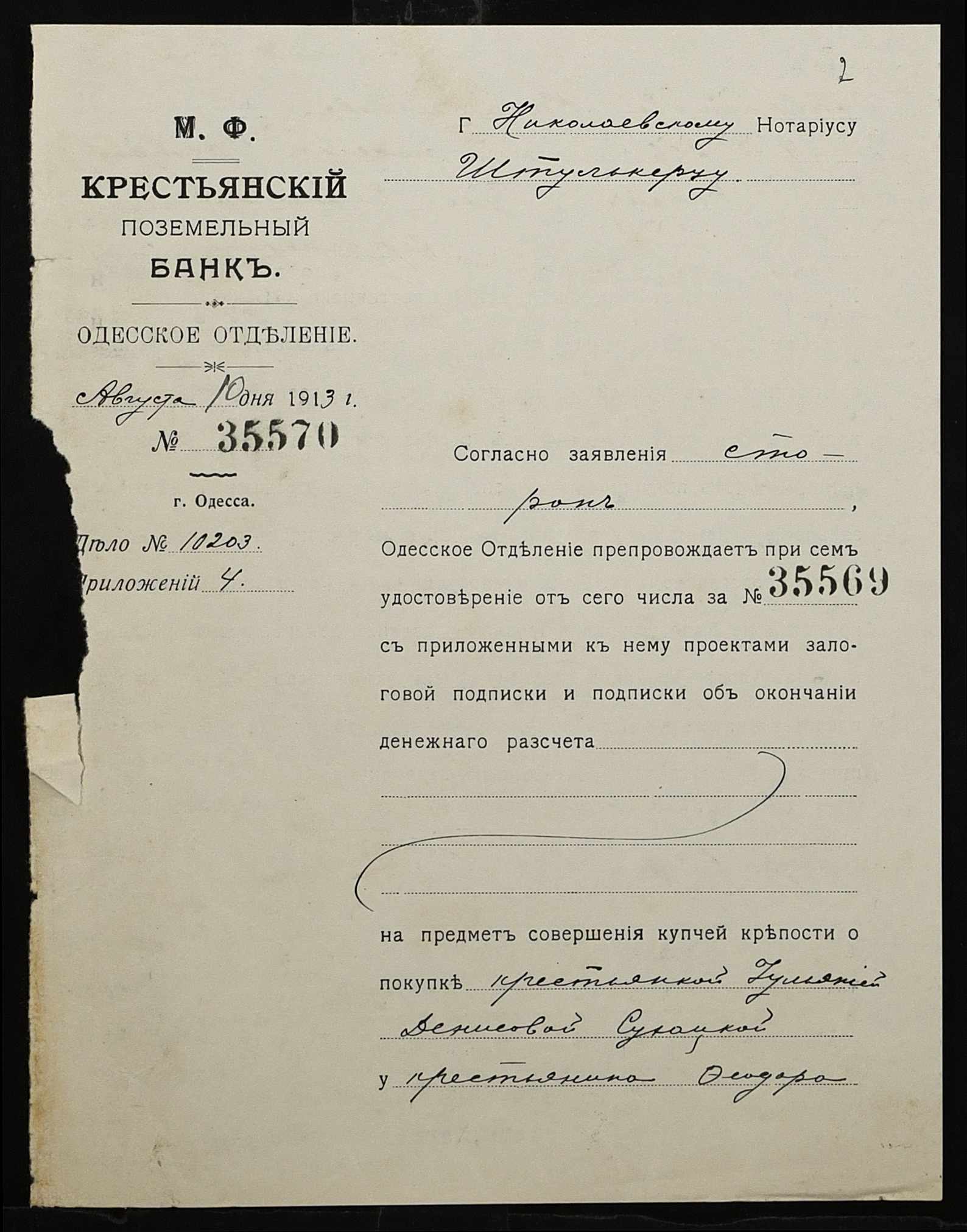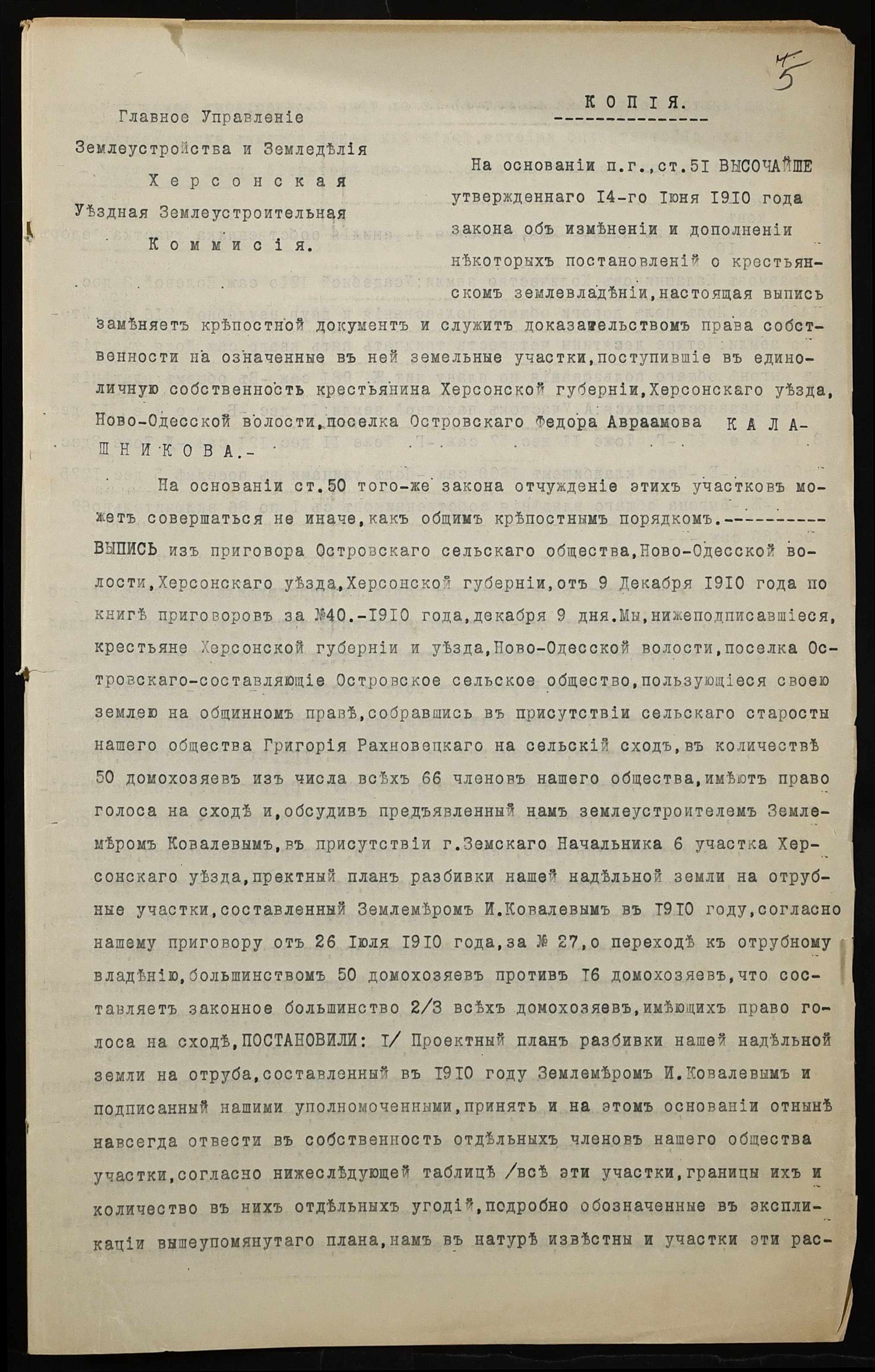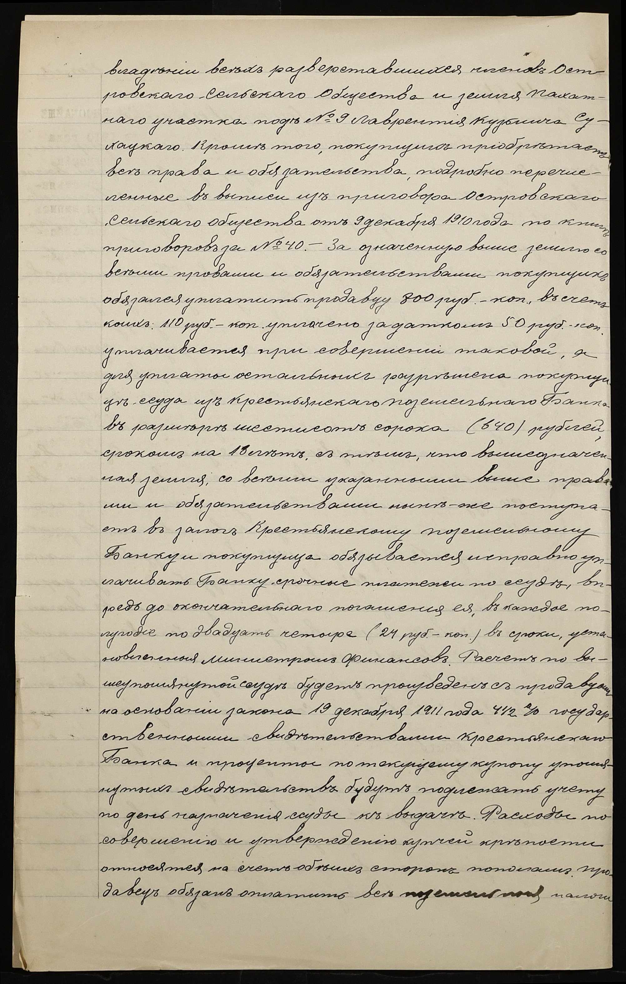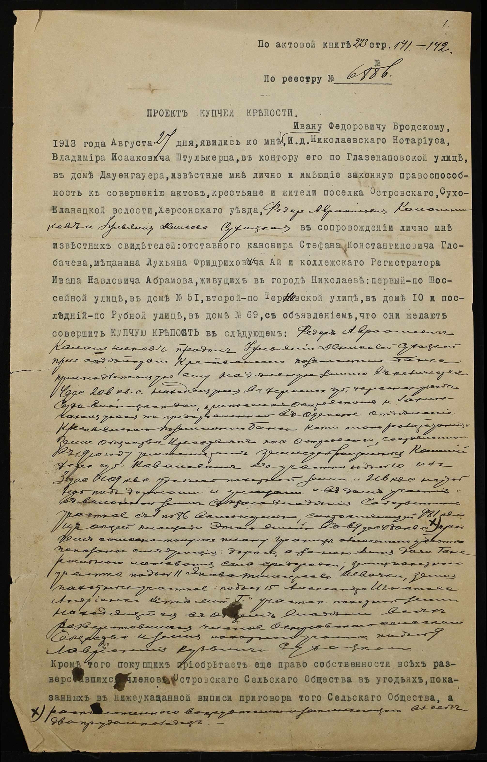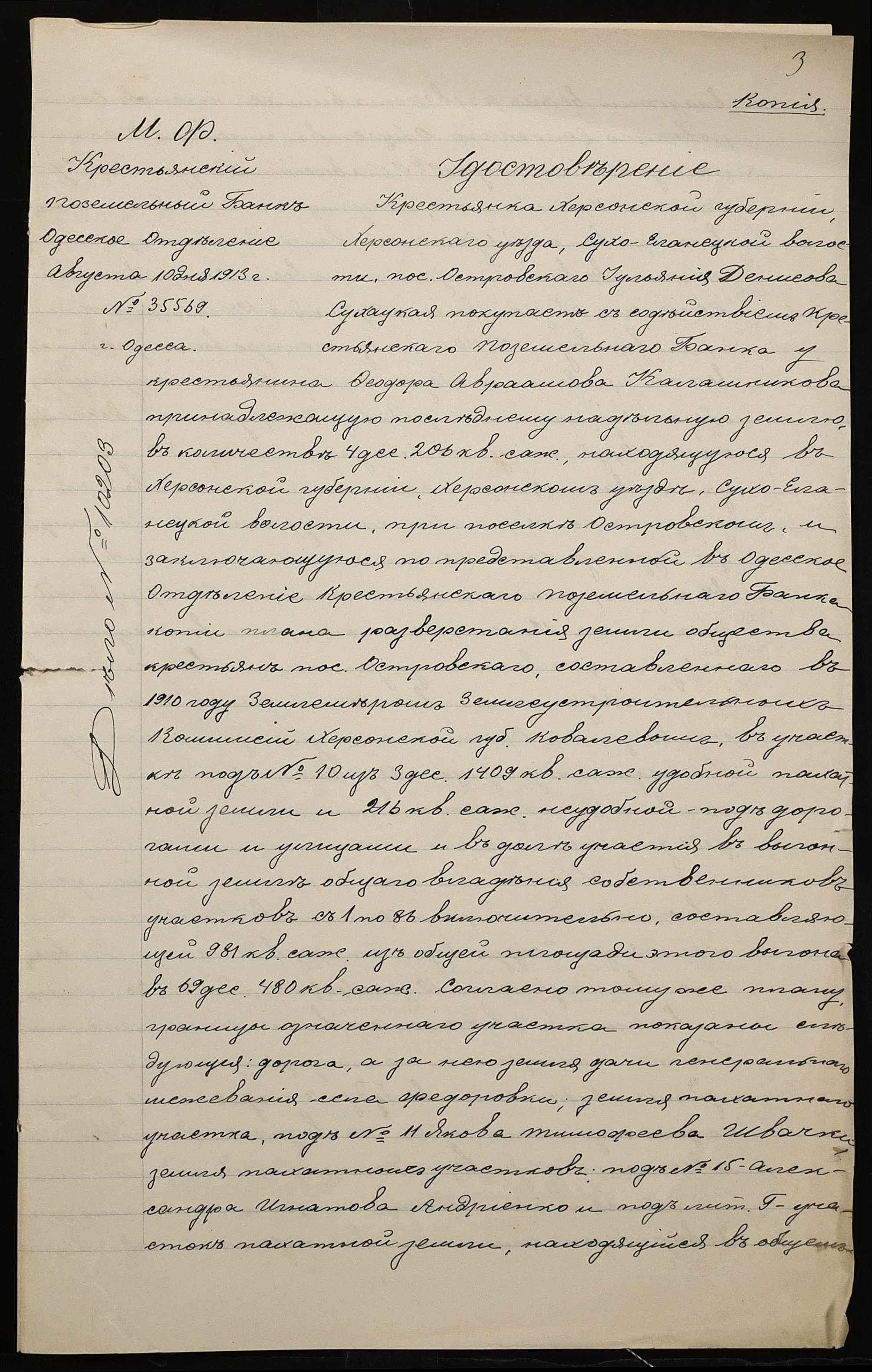 • • • • Справа № 1167 “Справа про вчинення купчої про продаж землі селянином Калашниковим Федором Аврамовичем (Калашниковым Федором Аврамовичем) на користь селянки Сухацької Уляни Денисівни (Сухацкой Иулианы) Денисовны) за сприяння Селянського поземельного банку”