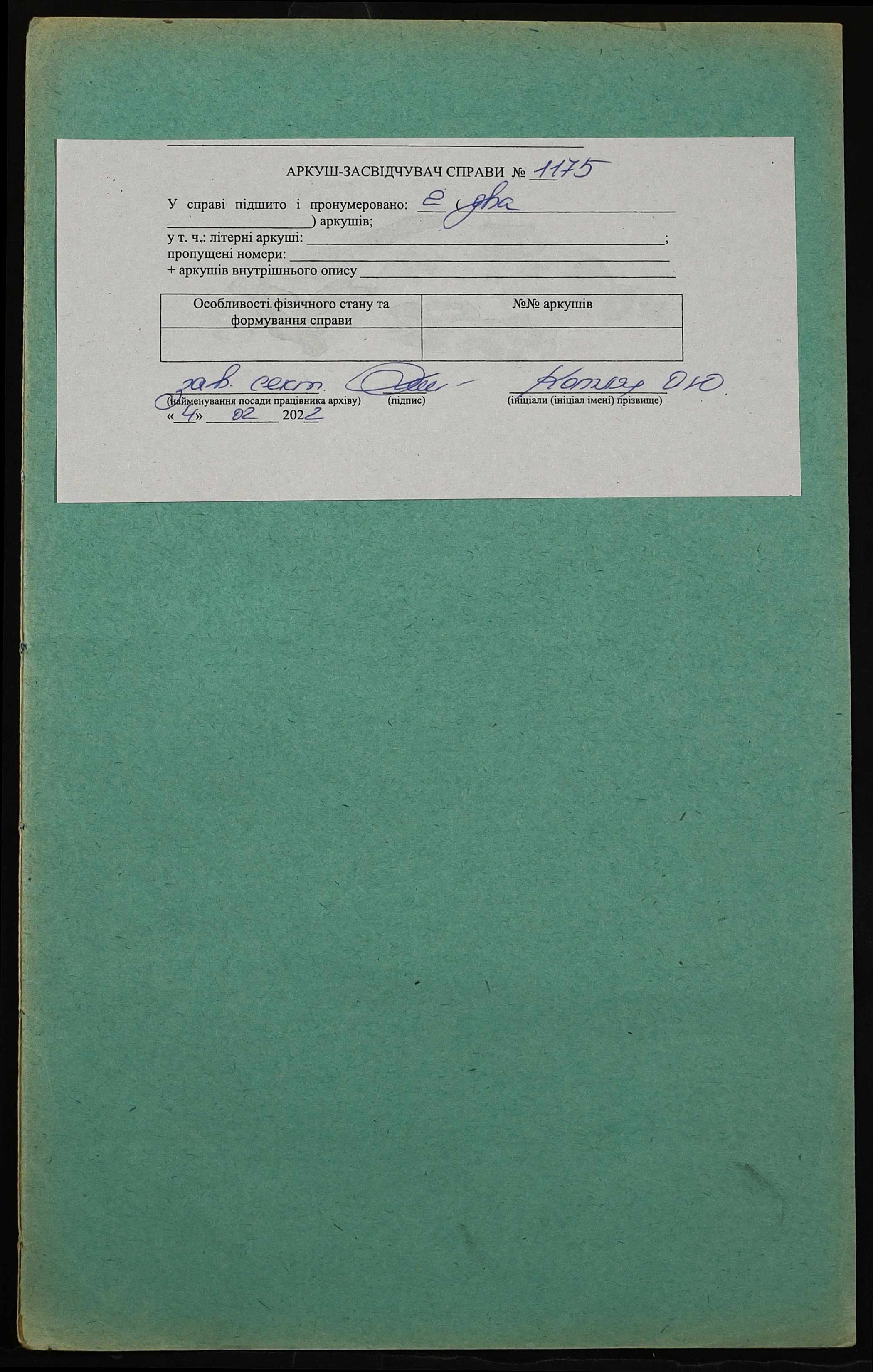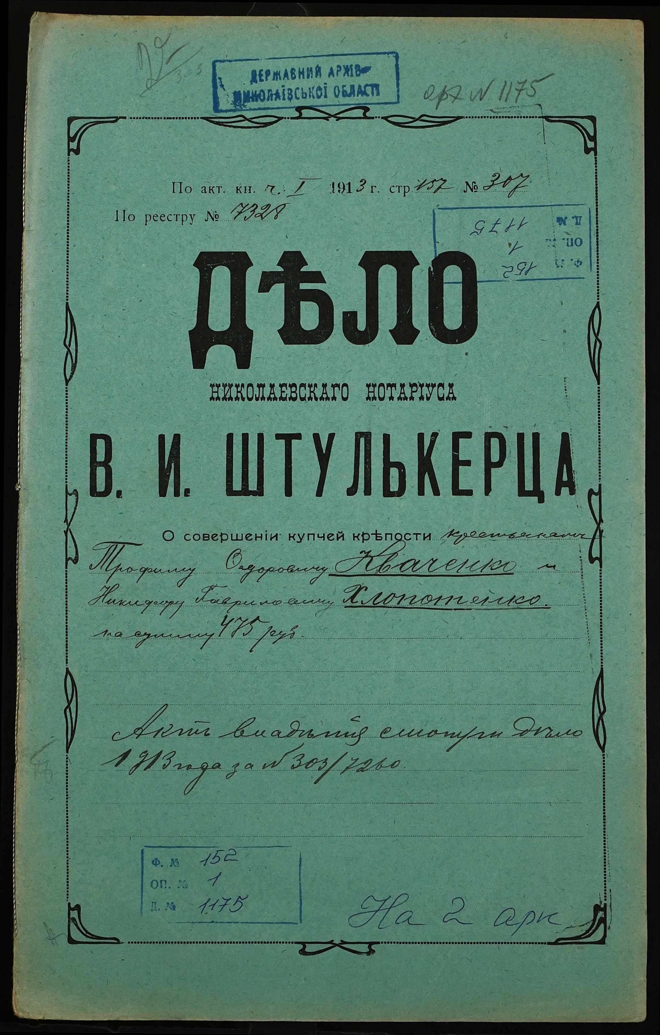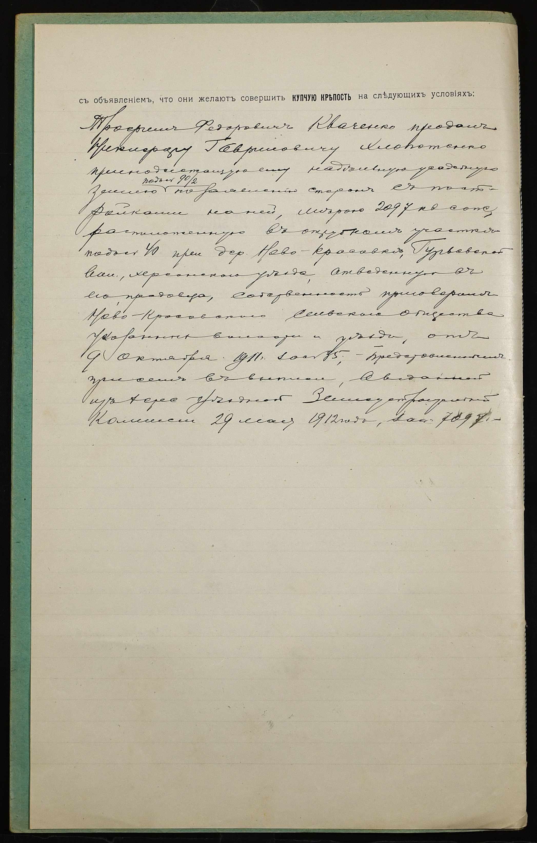 • • • • Справа № 1175 “Справа про вчинення купчої про продаж землі селянином Кваченком Трохимом Федоровичем (Кваченко Трофимом Федоровичем) на користь селянина Хлопотенка Никифора Гавриловича (Хлопотенко Никифора Гаврииловича)”