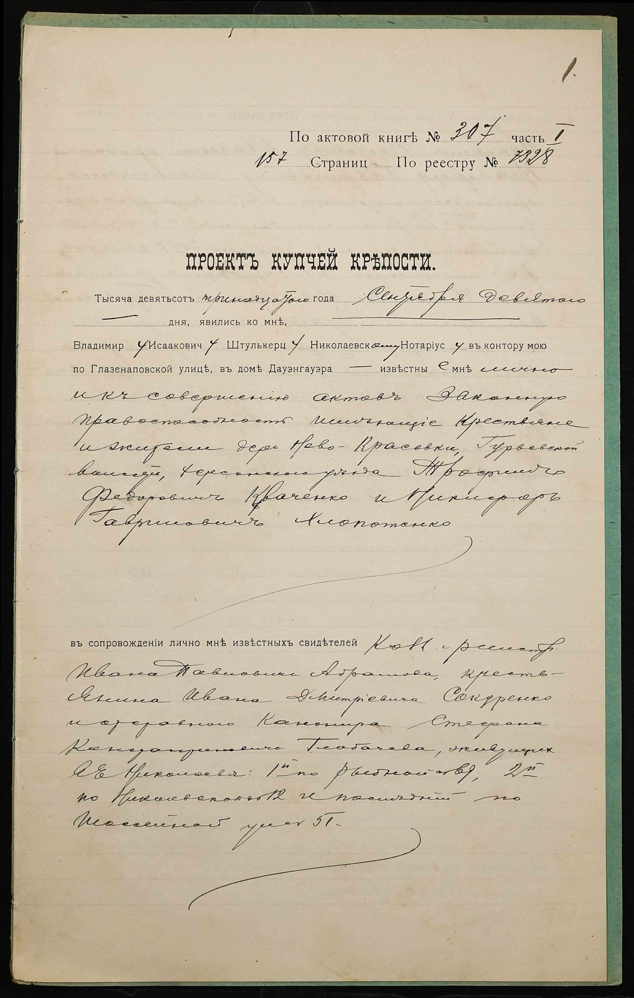 ◦ ◦ Фонд № 152 “Контора миколаївського нотаріуса Херсонського окружного суду Штулькерца Володимира Ісааковича”
