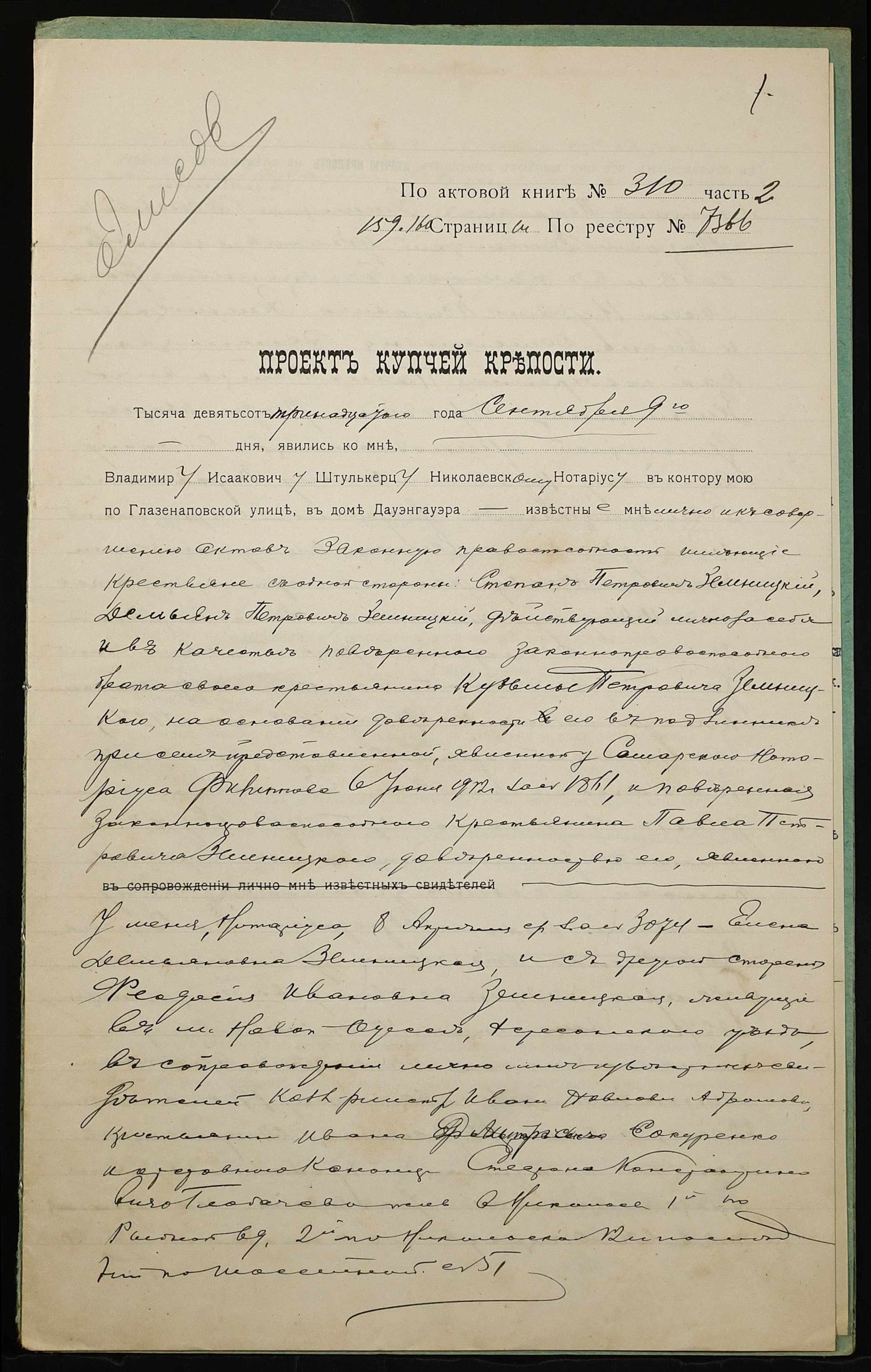 ◦ ◦ Фонд № 152 “Контора миколаївського нотаріуса Херсонського окружного суду Штулькерца Володимира Ісааковича”