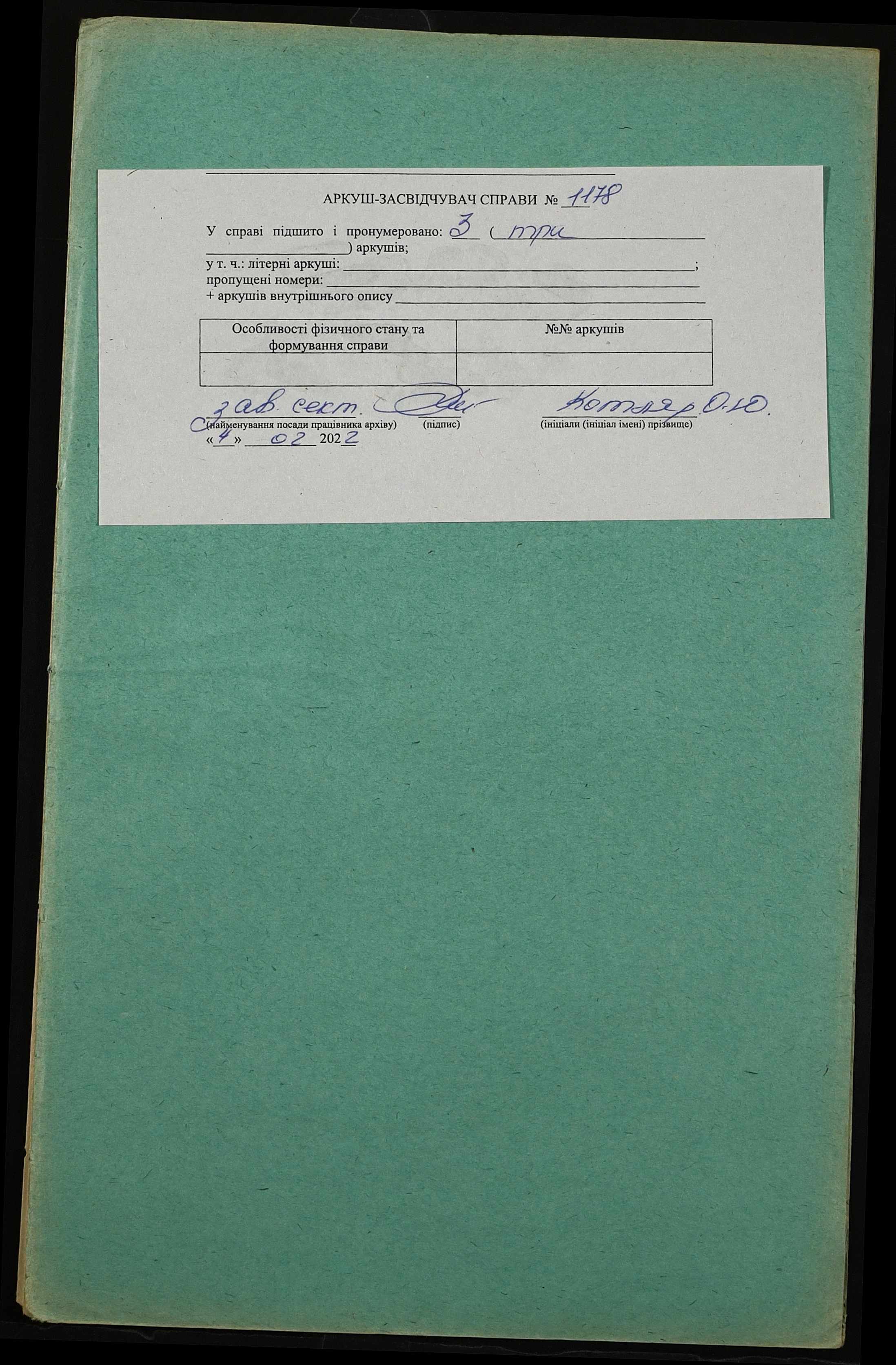 Фонд 152 / Опис 1 / Справа 1178