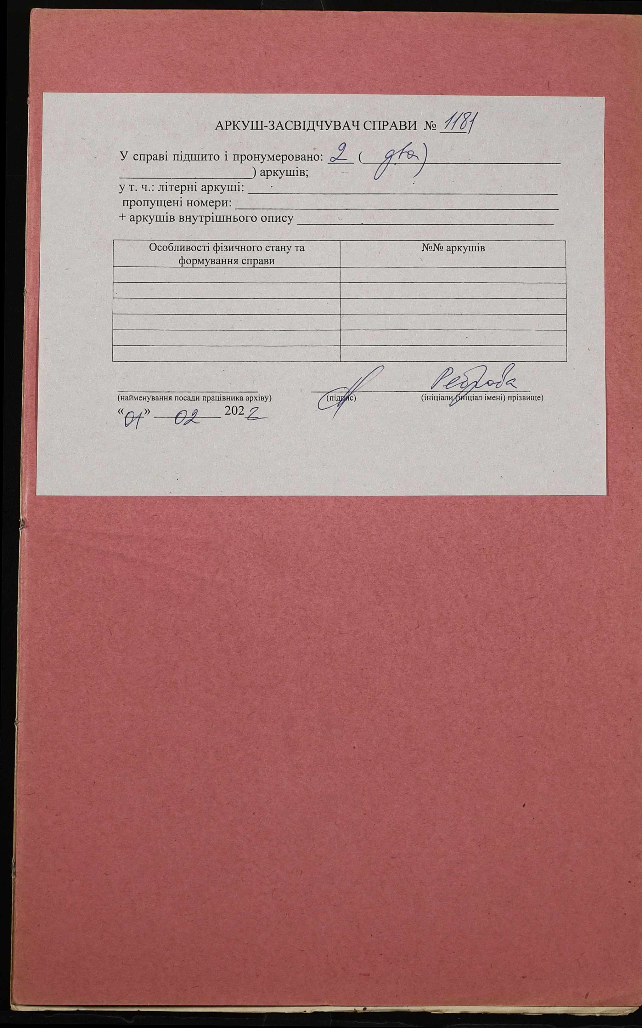 Фонд 152 / Опис 1 / Справа 1181