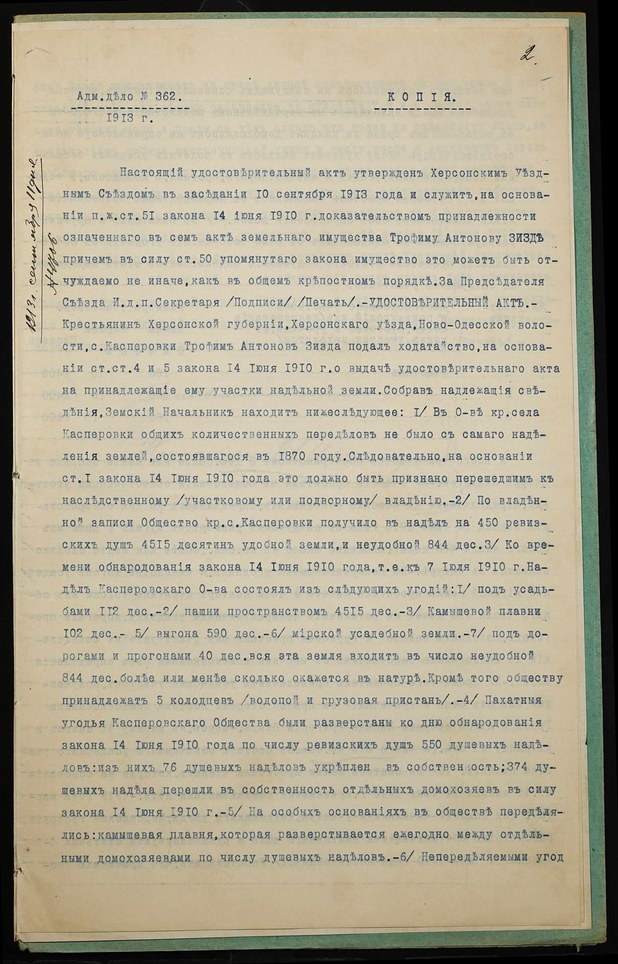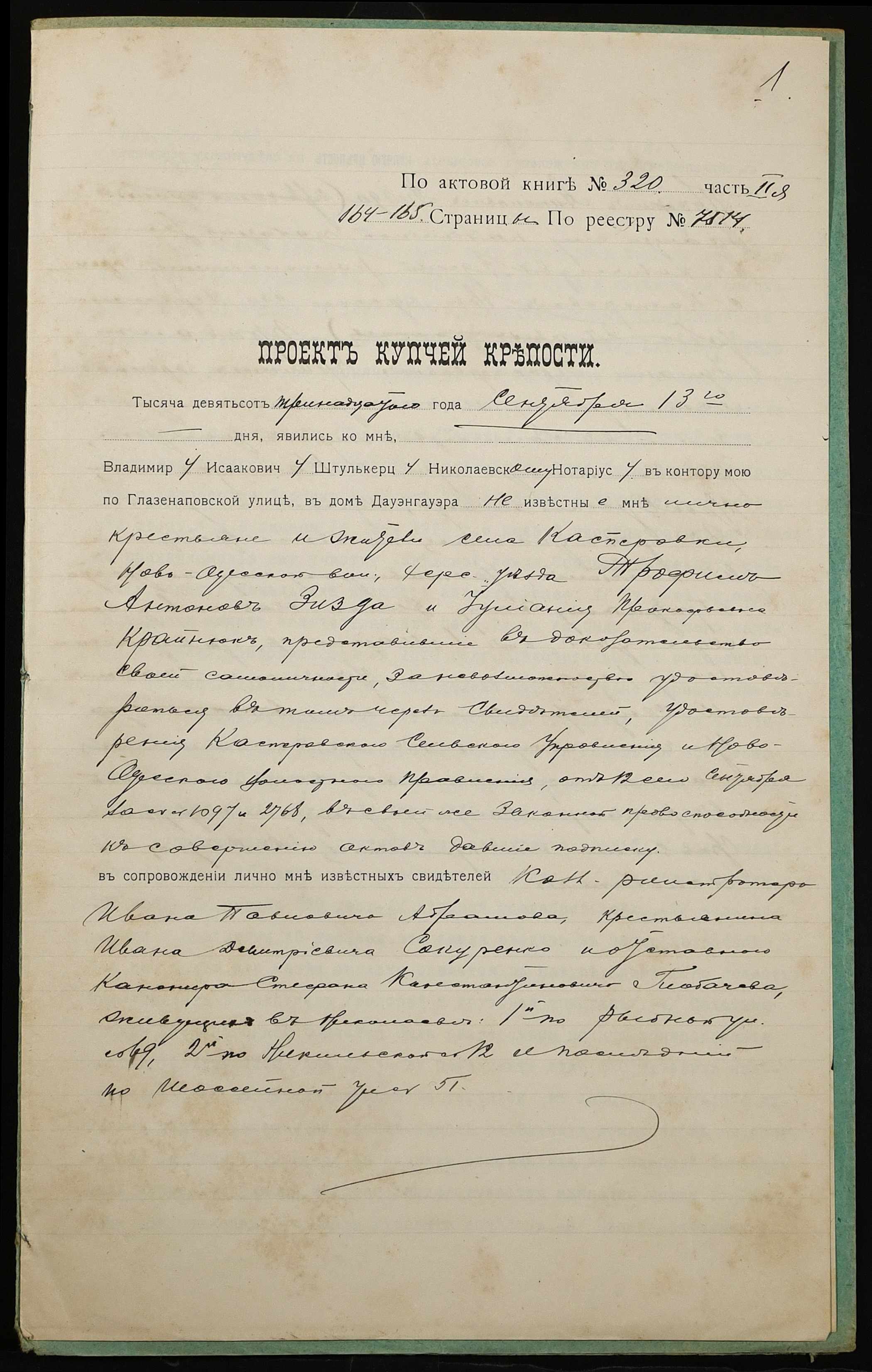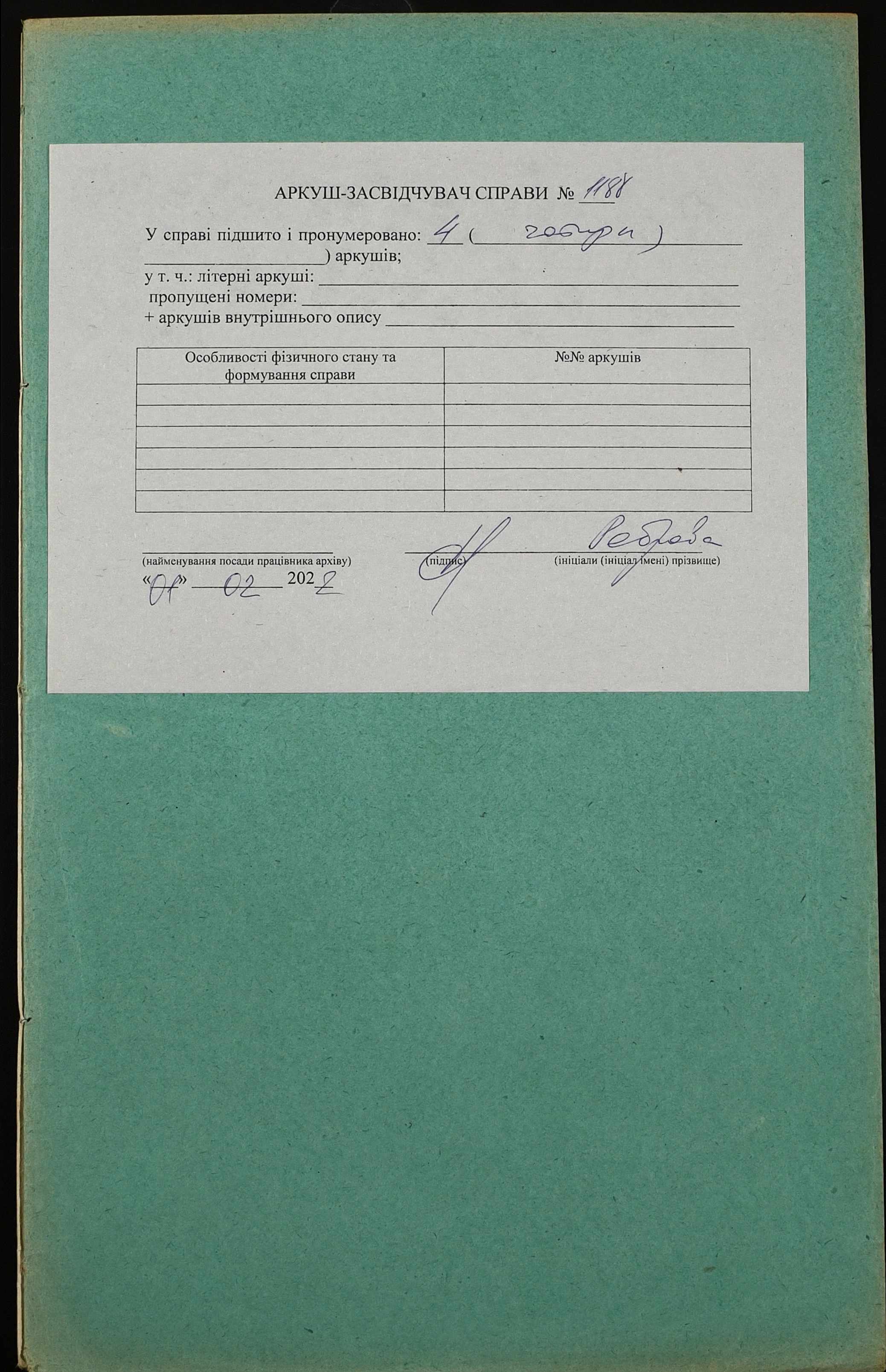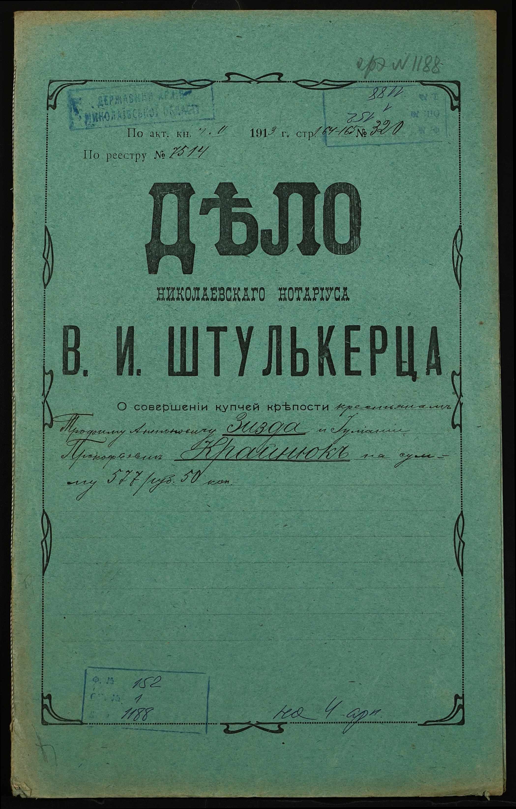 • • • • Справа № 1188 “Справа про вчинення купчої про продаж землі селянином Зіздою Трохимом Антоновичем (Зиздой Трофимом Антоновичем) на користь селянки Крайнюк Уляни Прокопівни (Крайнюк Иулианы Прокофьевны)”