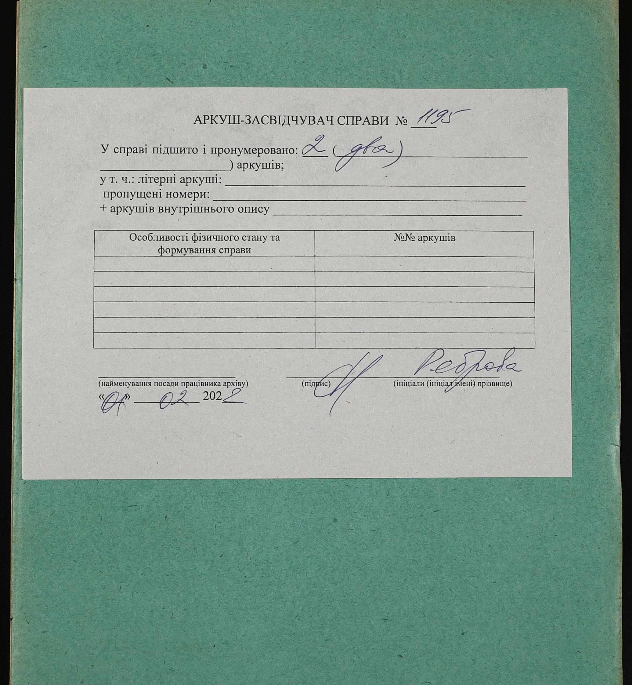 Фонд 152 / Опис 1 / Справа 1195