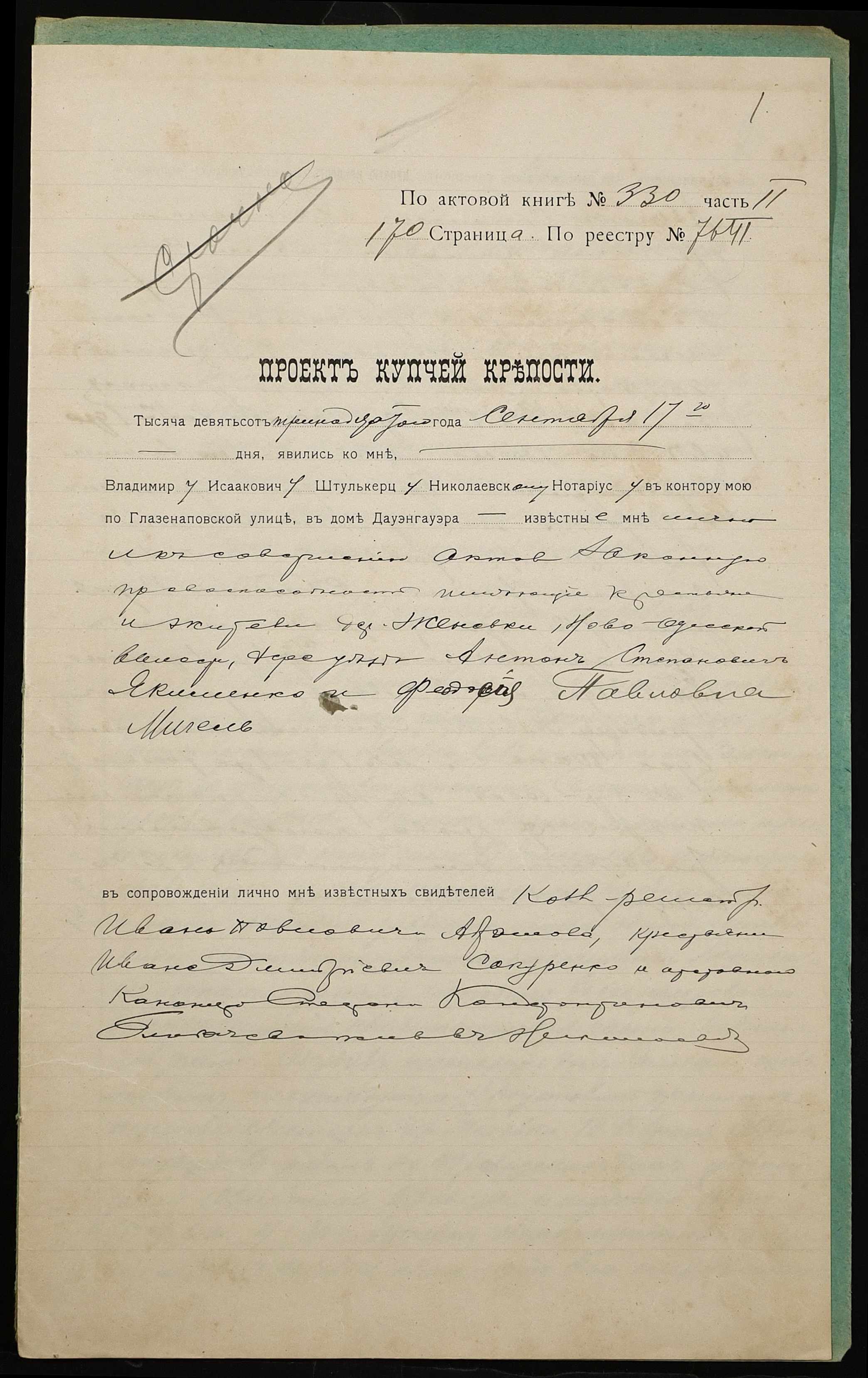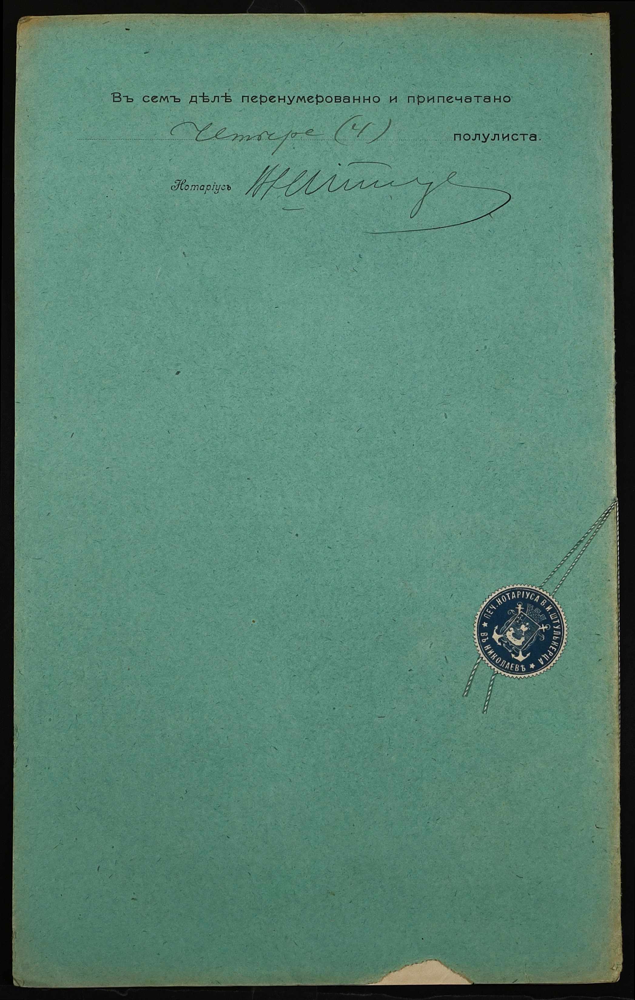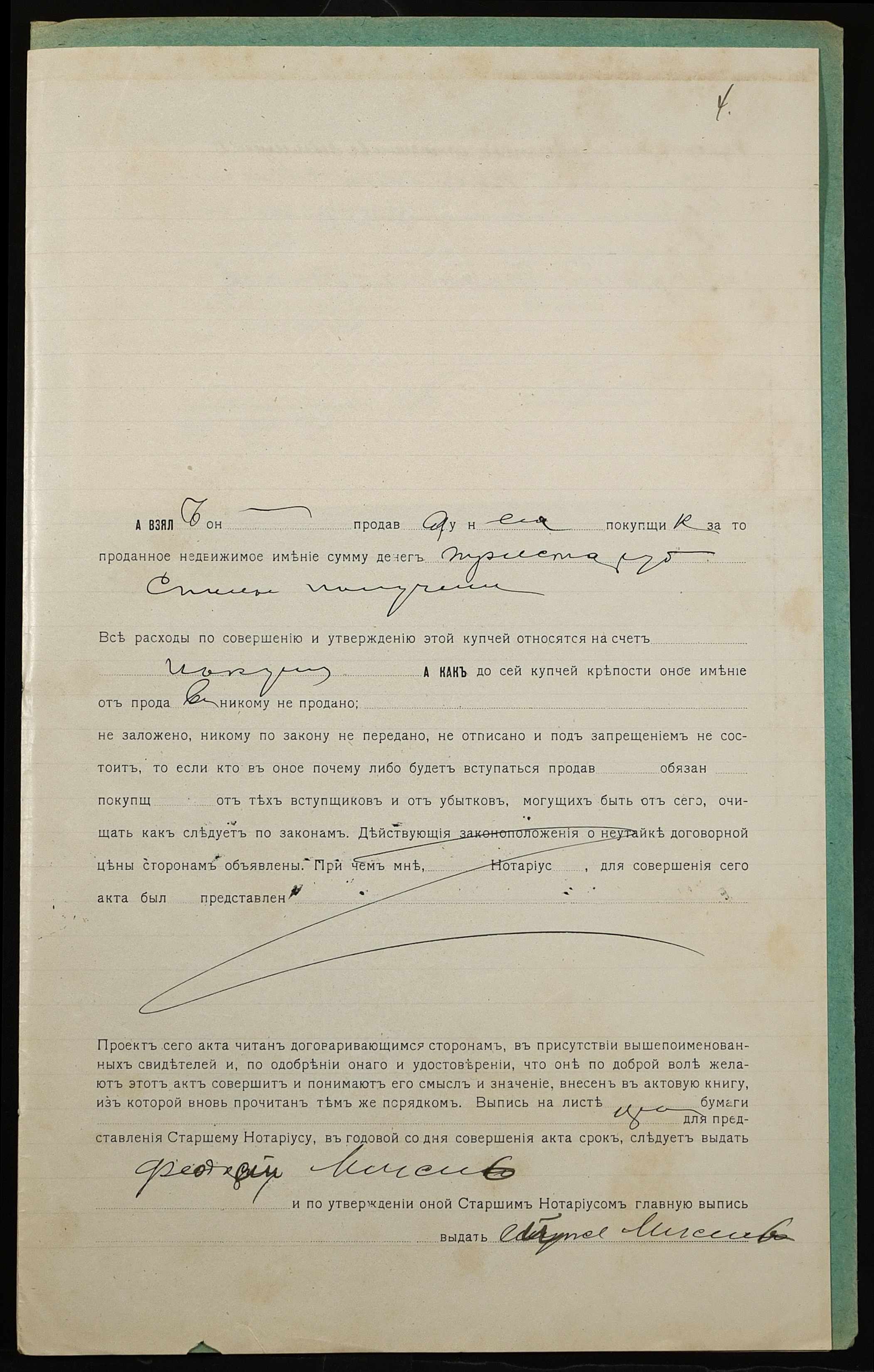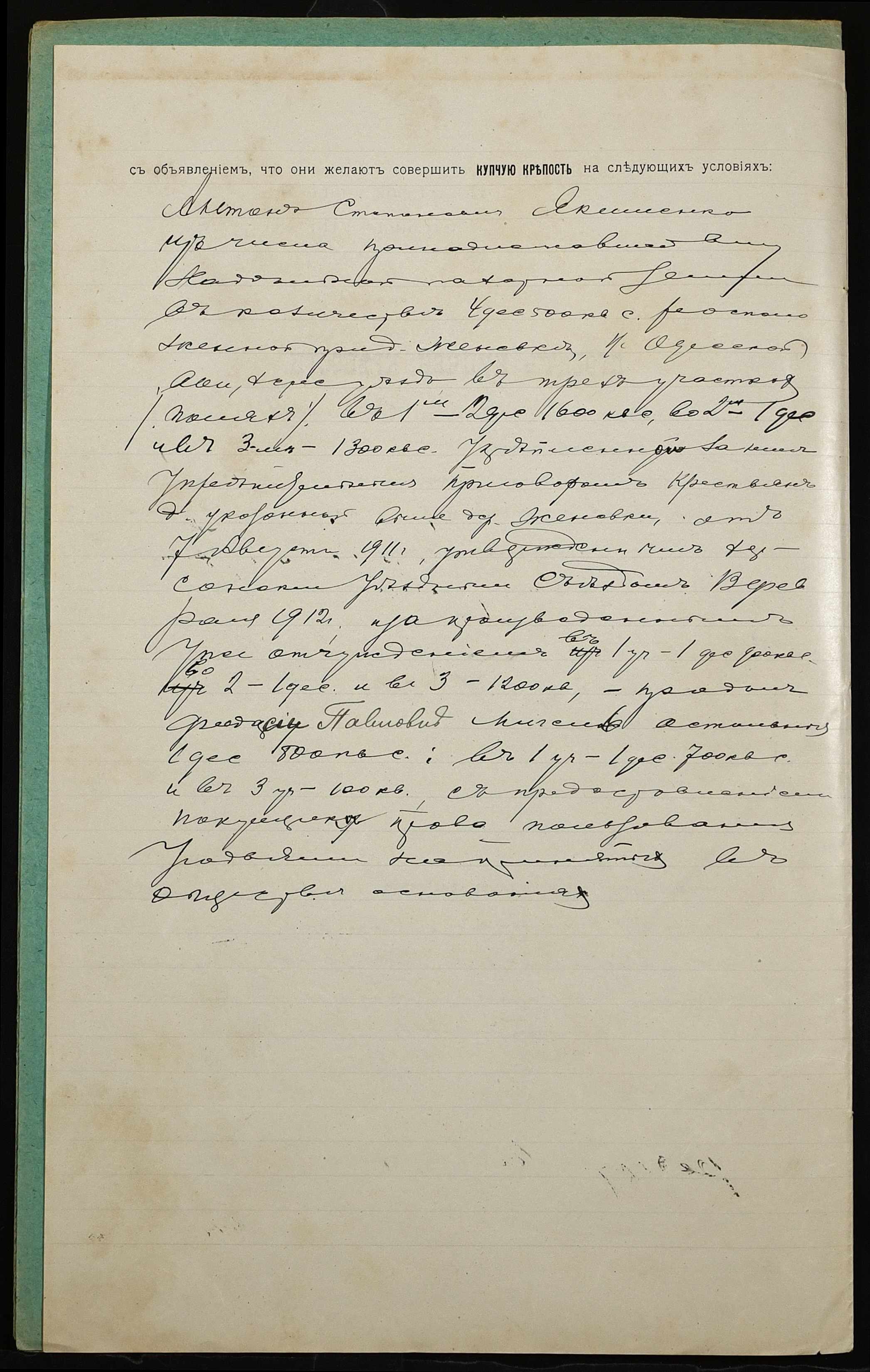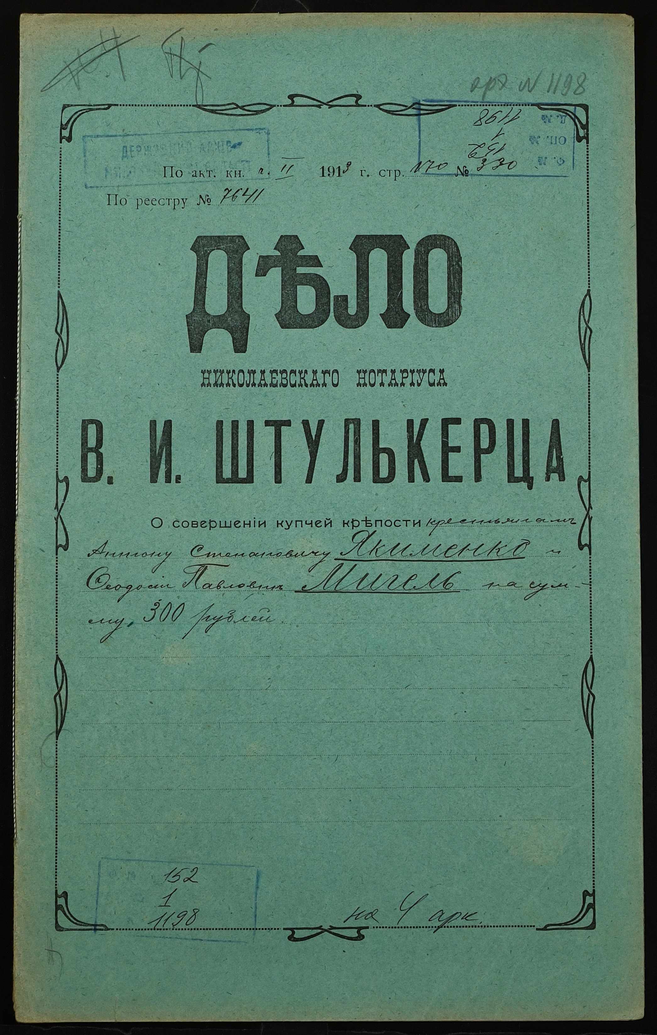 • • • • Справа № 1198 “Справа про вчинення купчої про продаж землі селянином Якименком Антоном Степановичем (Якименко Антоном Степановичем) на користь селянки Мігель Феодосії Павлівни (Мигель Феодосии Павловны)”
