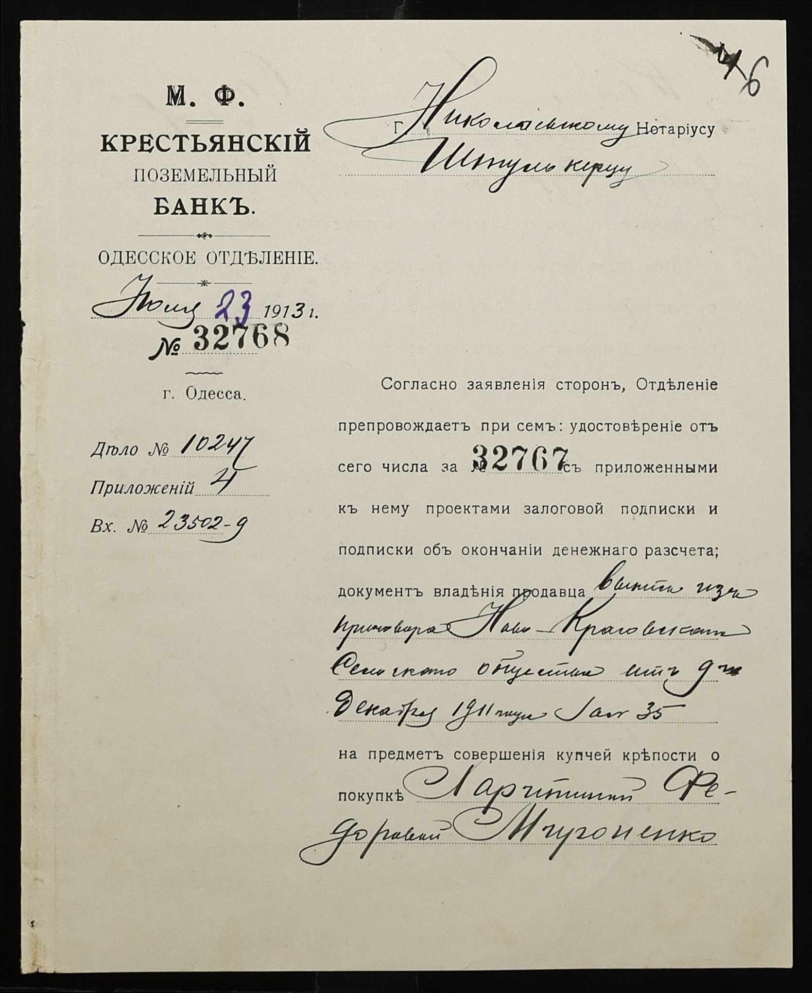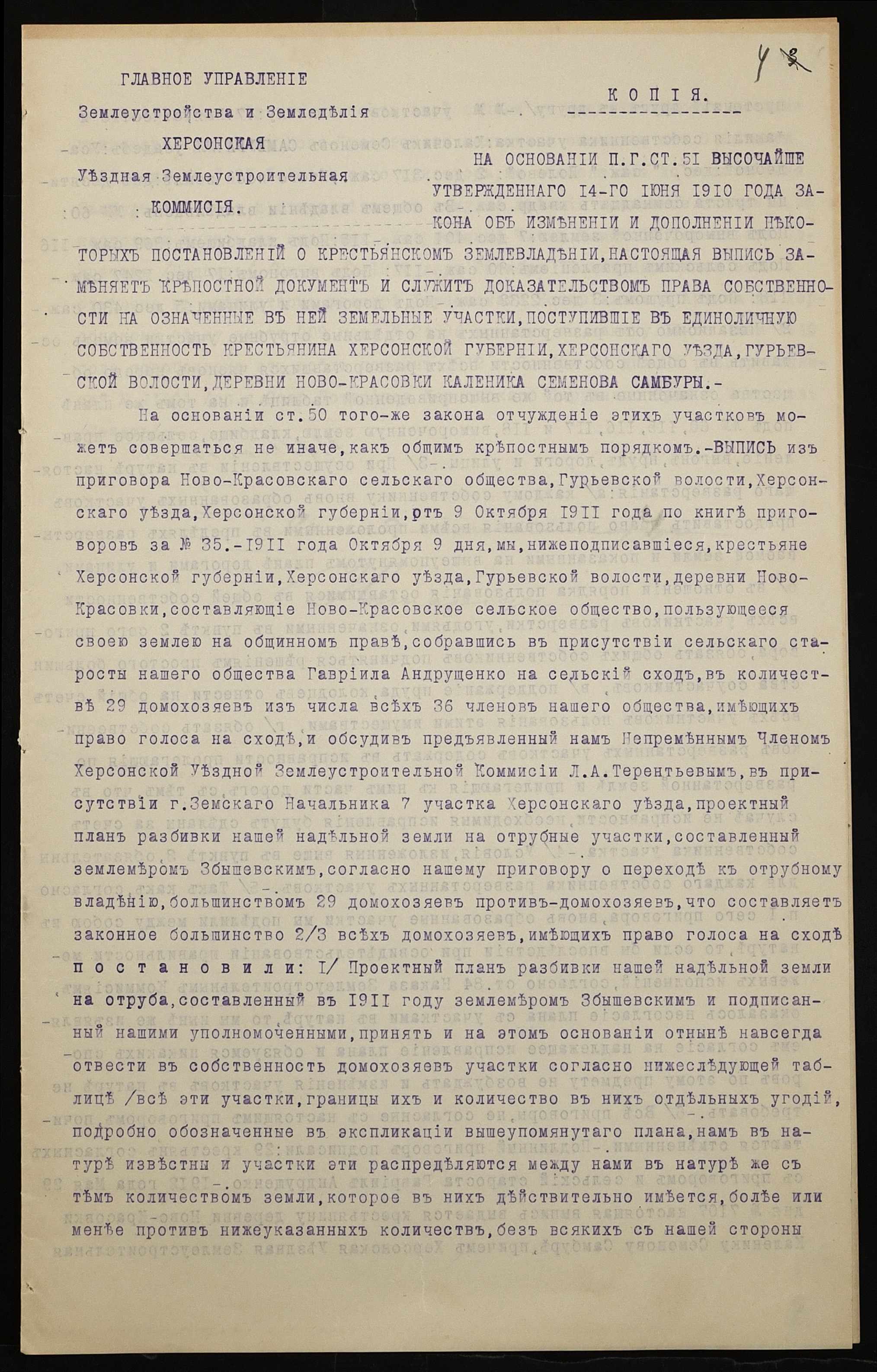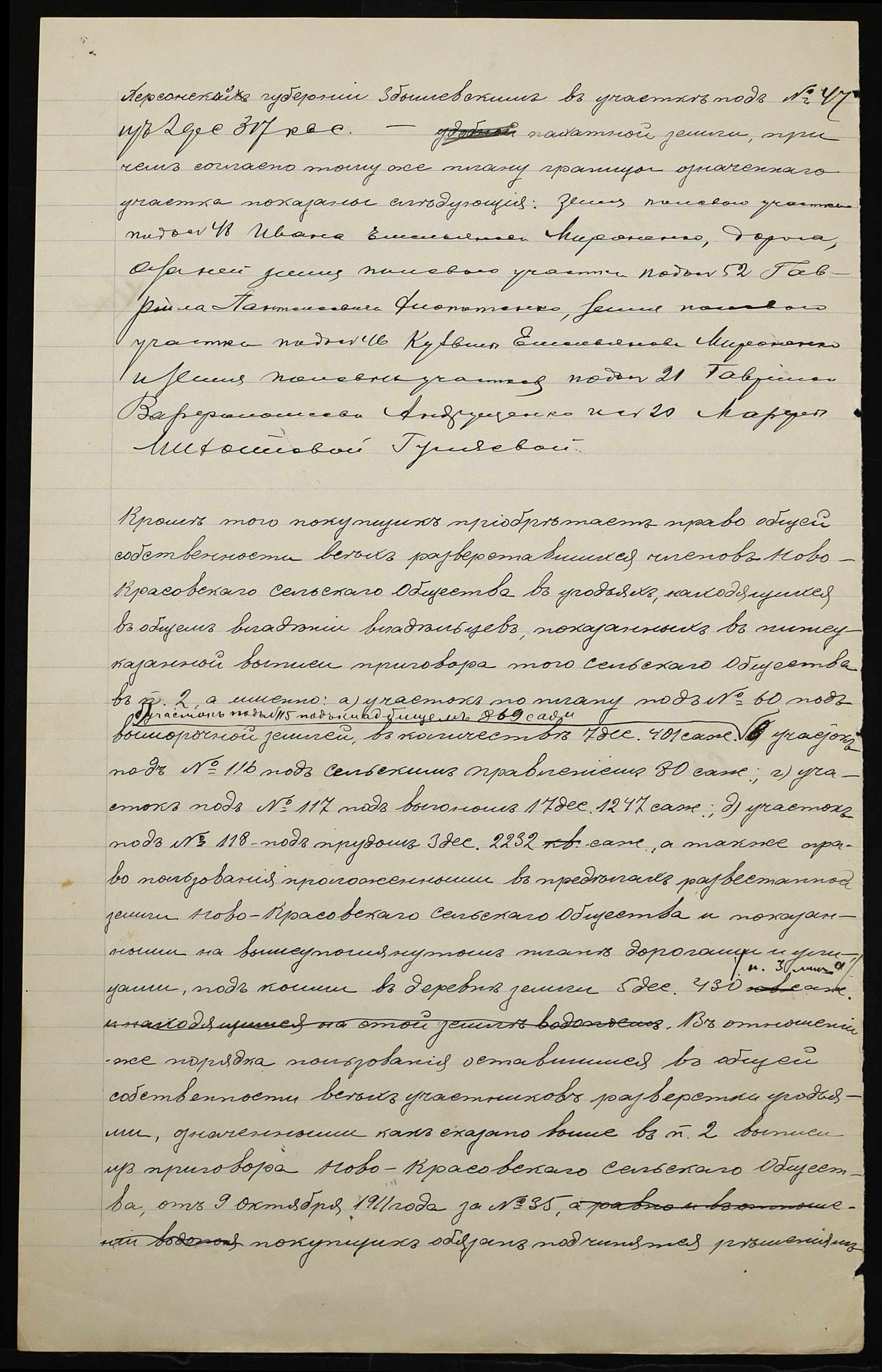 • • • • Справа № 1199 “Справа про вчинення купчої про продаж землі селянином Самбуром Калеником Семеновичем (Самбуром Калеником Семеновичем) на користь селянки Мироненко Харитини Федорівни (Мироненко Харитины Федоровны) за сприяння Селянського поземельного банку”