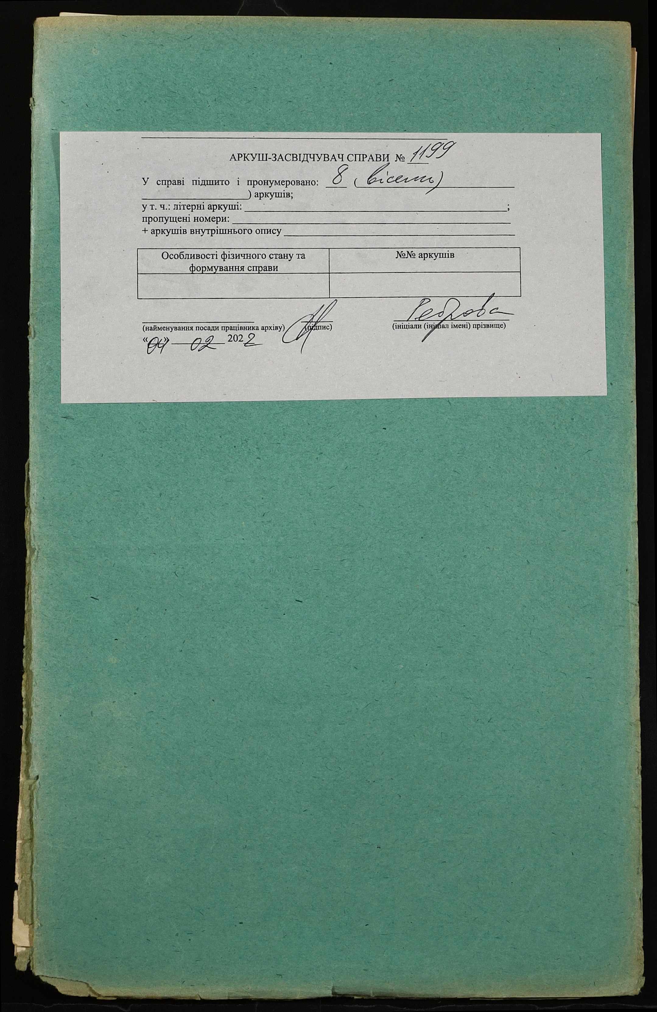Фонд 152 / Опис 1 / Справа 1199
