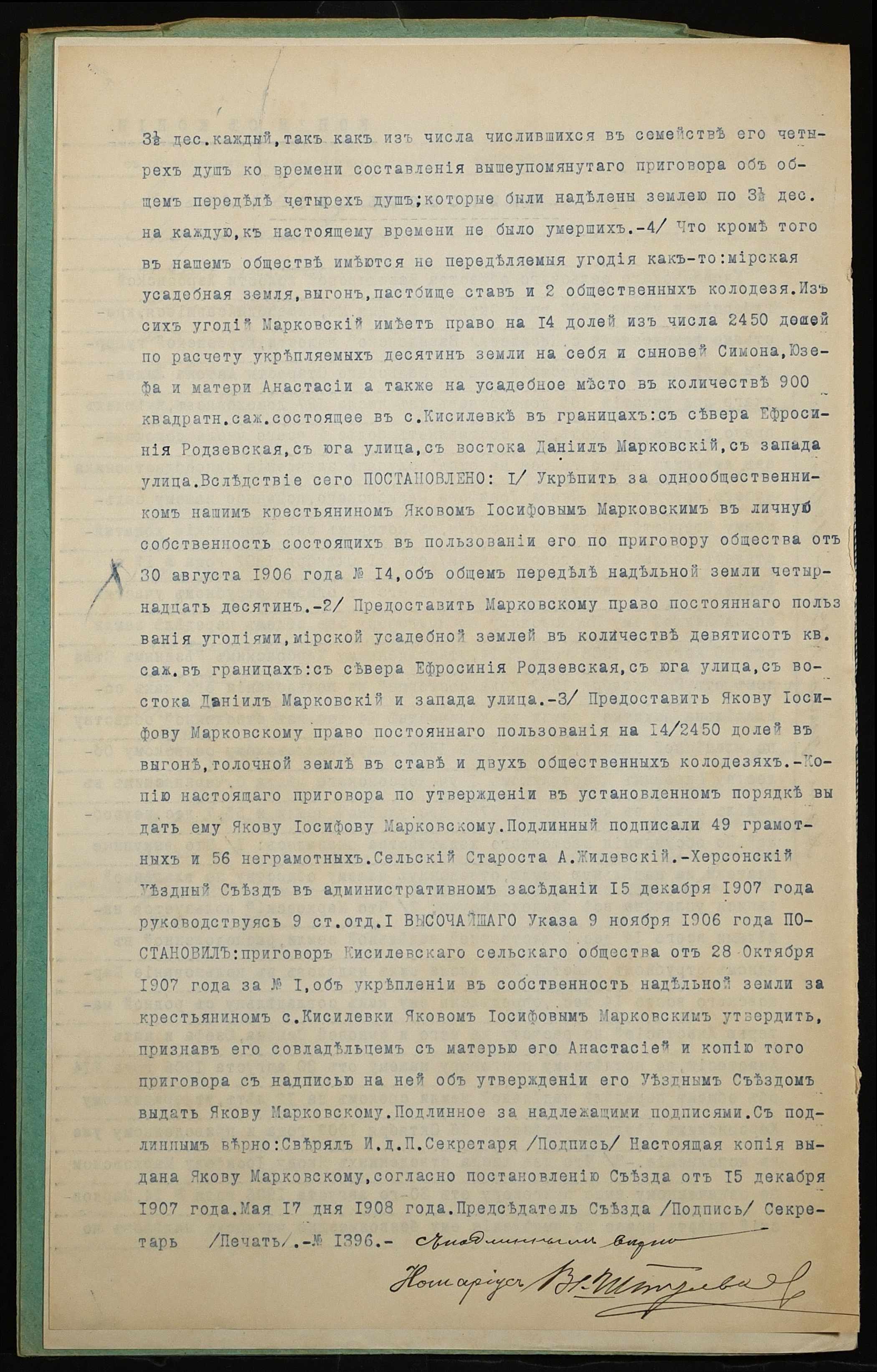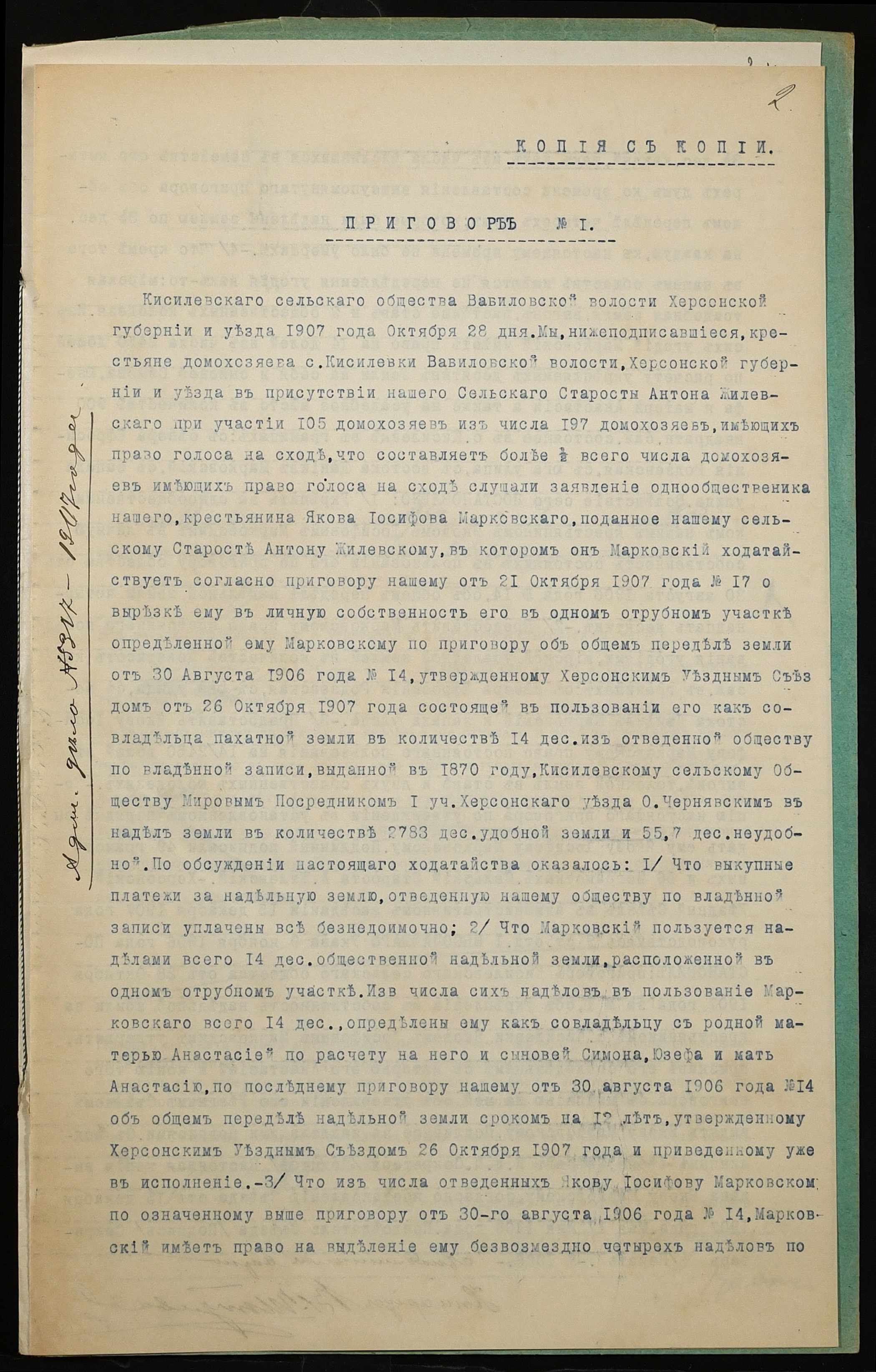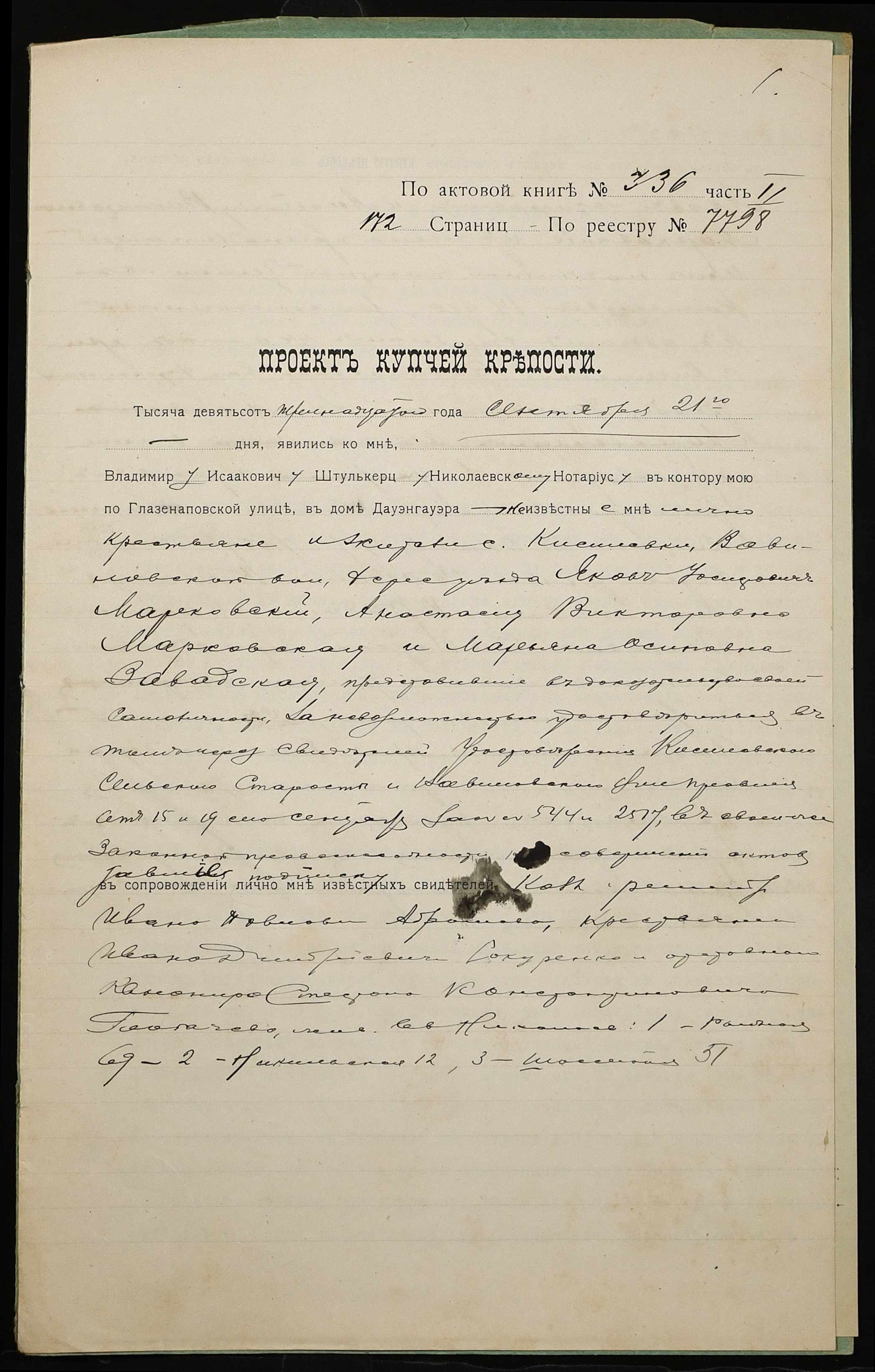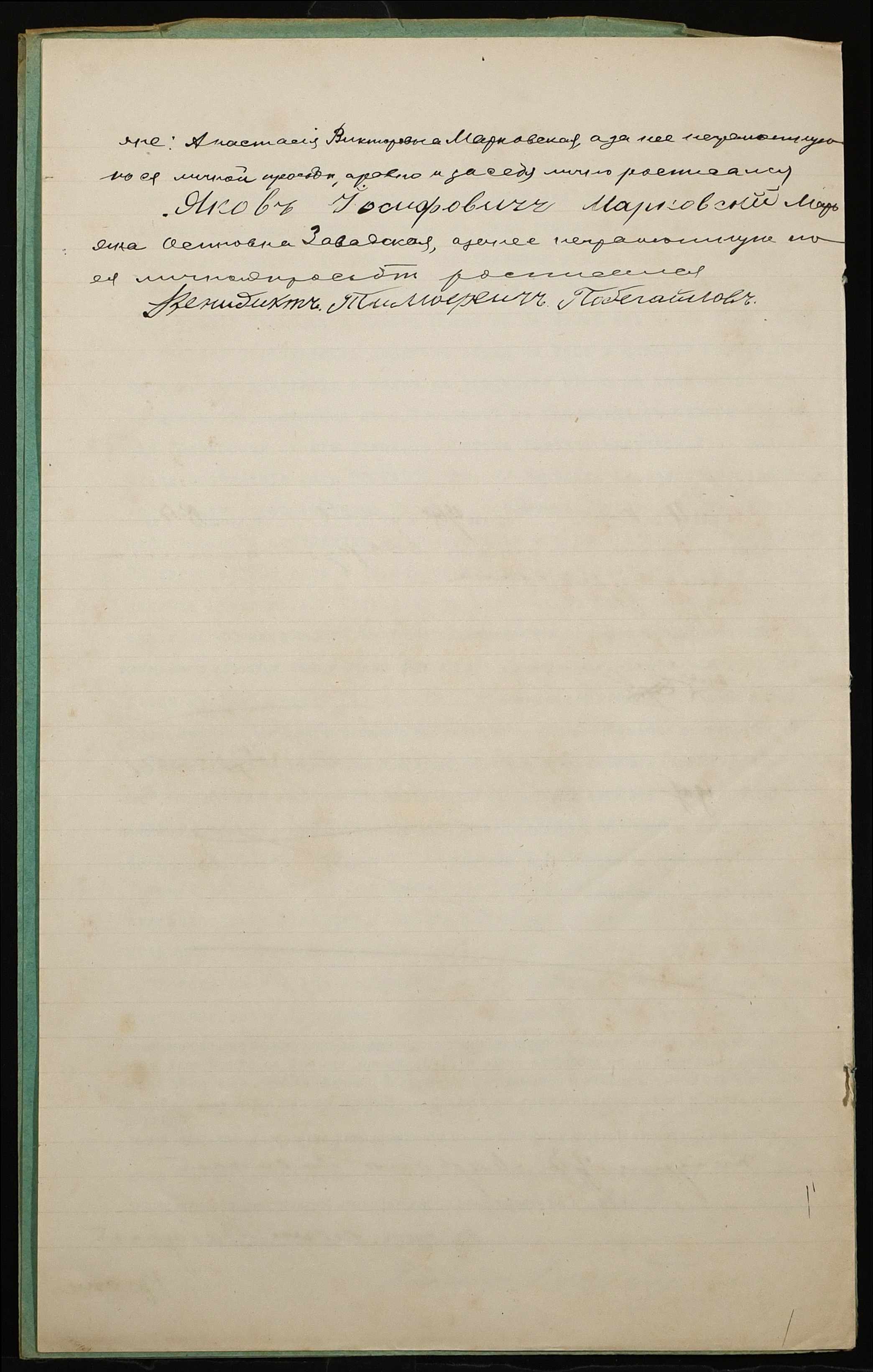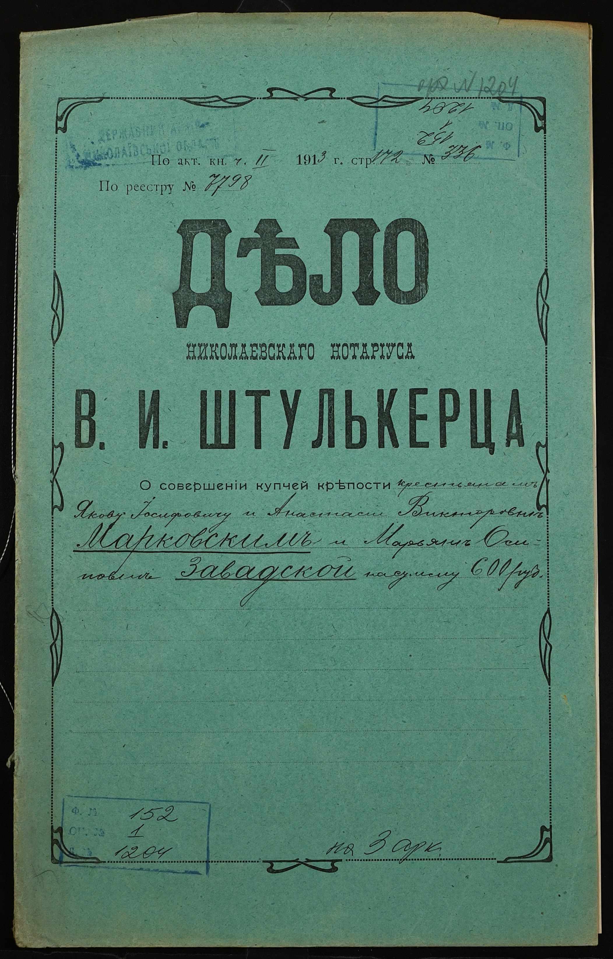 • • • • Справа № 1204 “Справа про вчинення купчої про продаж землі селянами Марковським Яковом Йосиповичем (Марковским Яковом Иосифовичем) і Марковською Анастасією Вікторівною (Марковской Анастасией Викторовной) на користь селянки Завадської Мар’яни Осипівни (Завадской Марьяны Осиповны)”