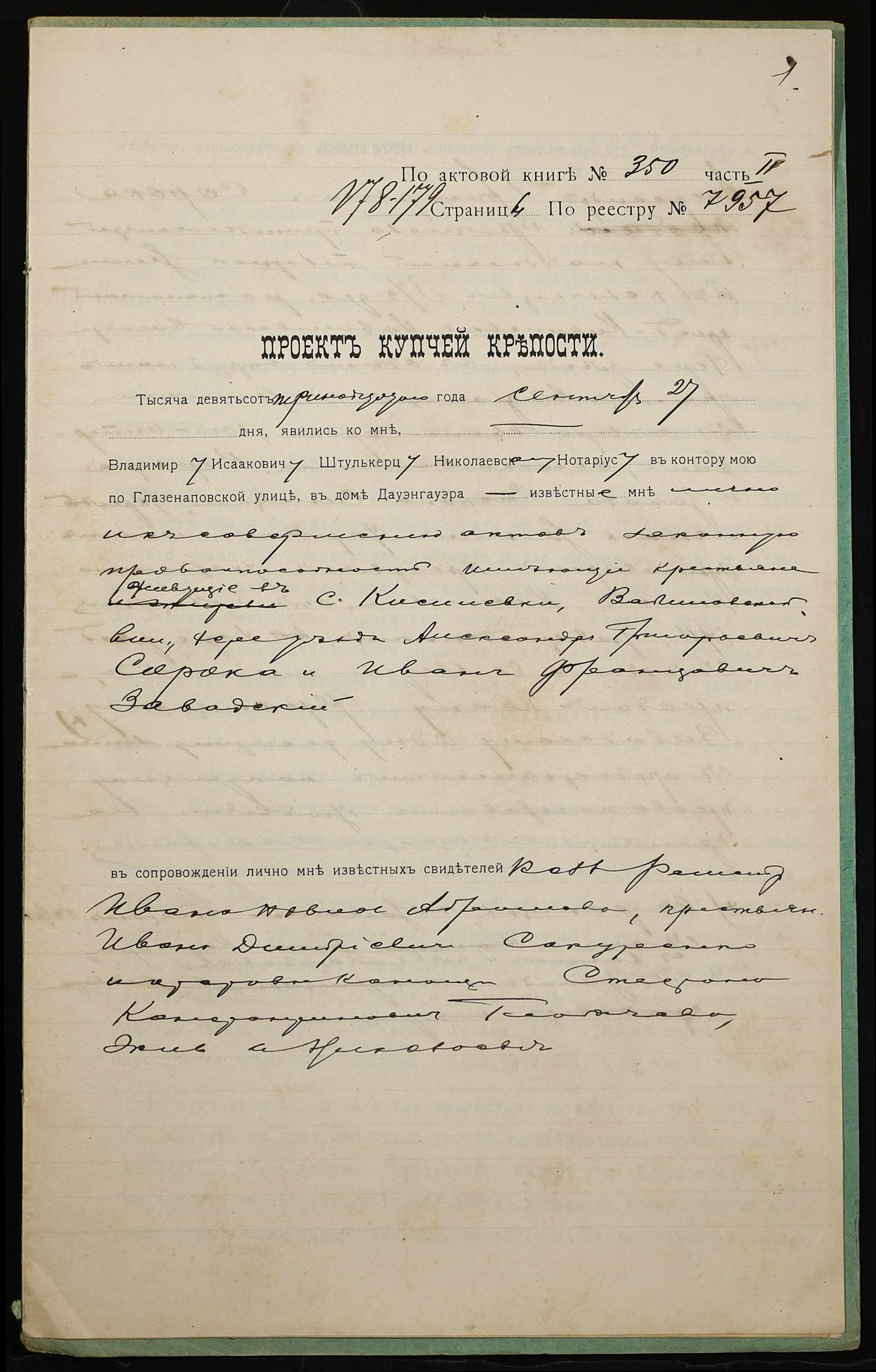 ◦ ◦ Фонд № 152 “Контора миколаївського нотаріуса Херсонського окружного суду Штулькерца Володимира Ісааковича”