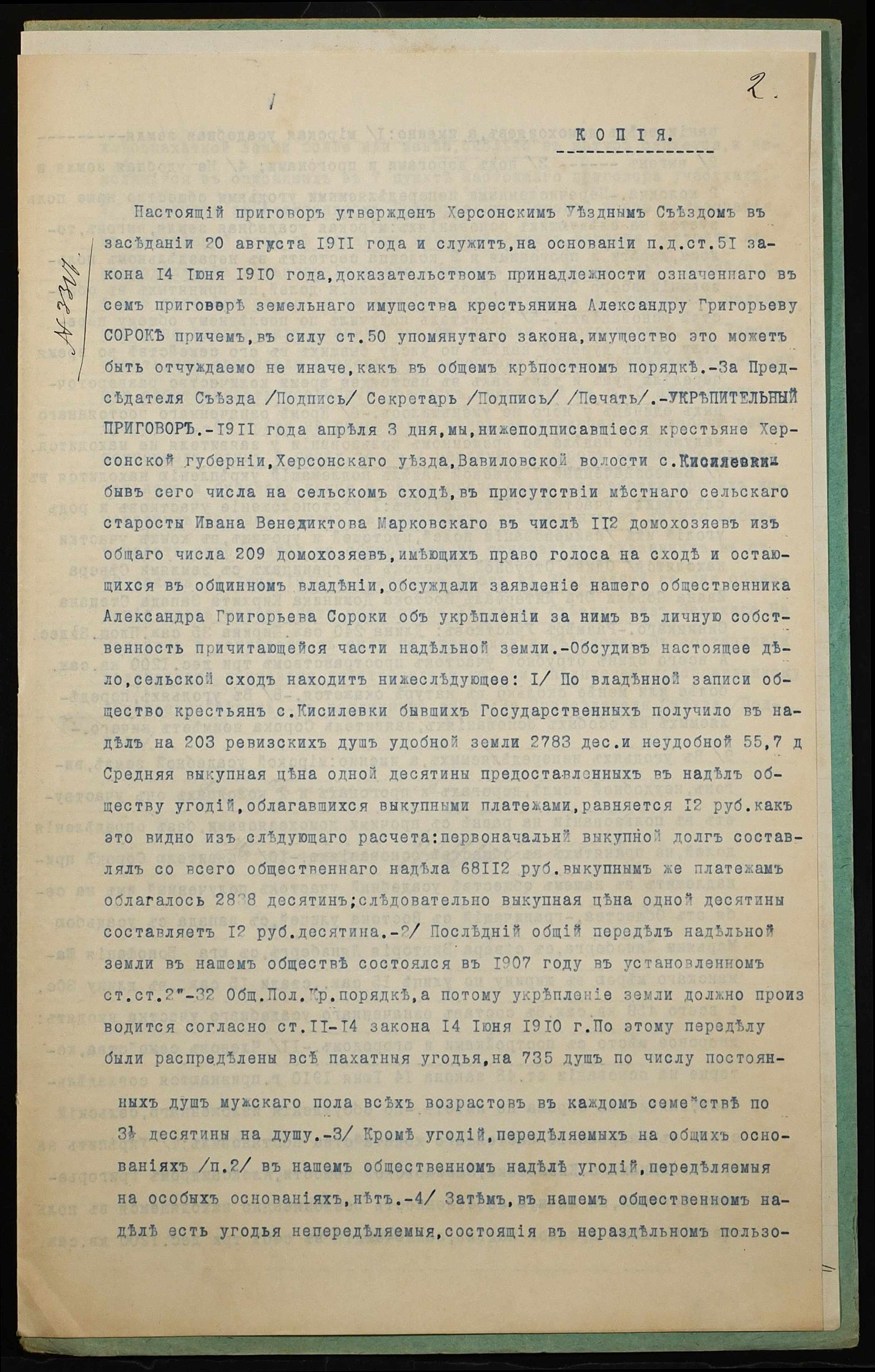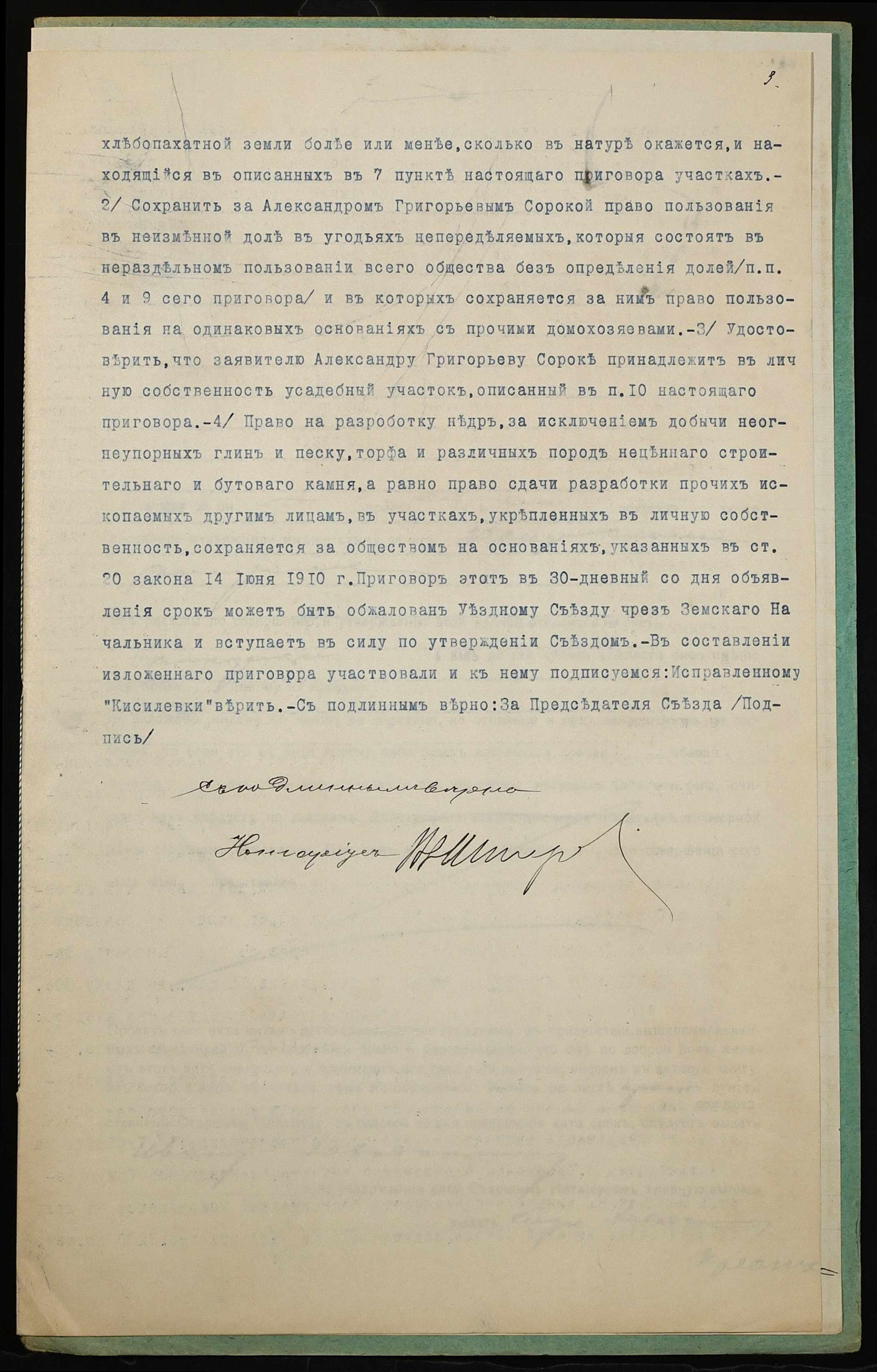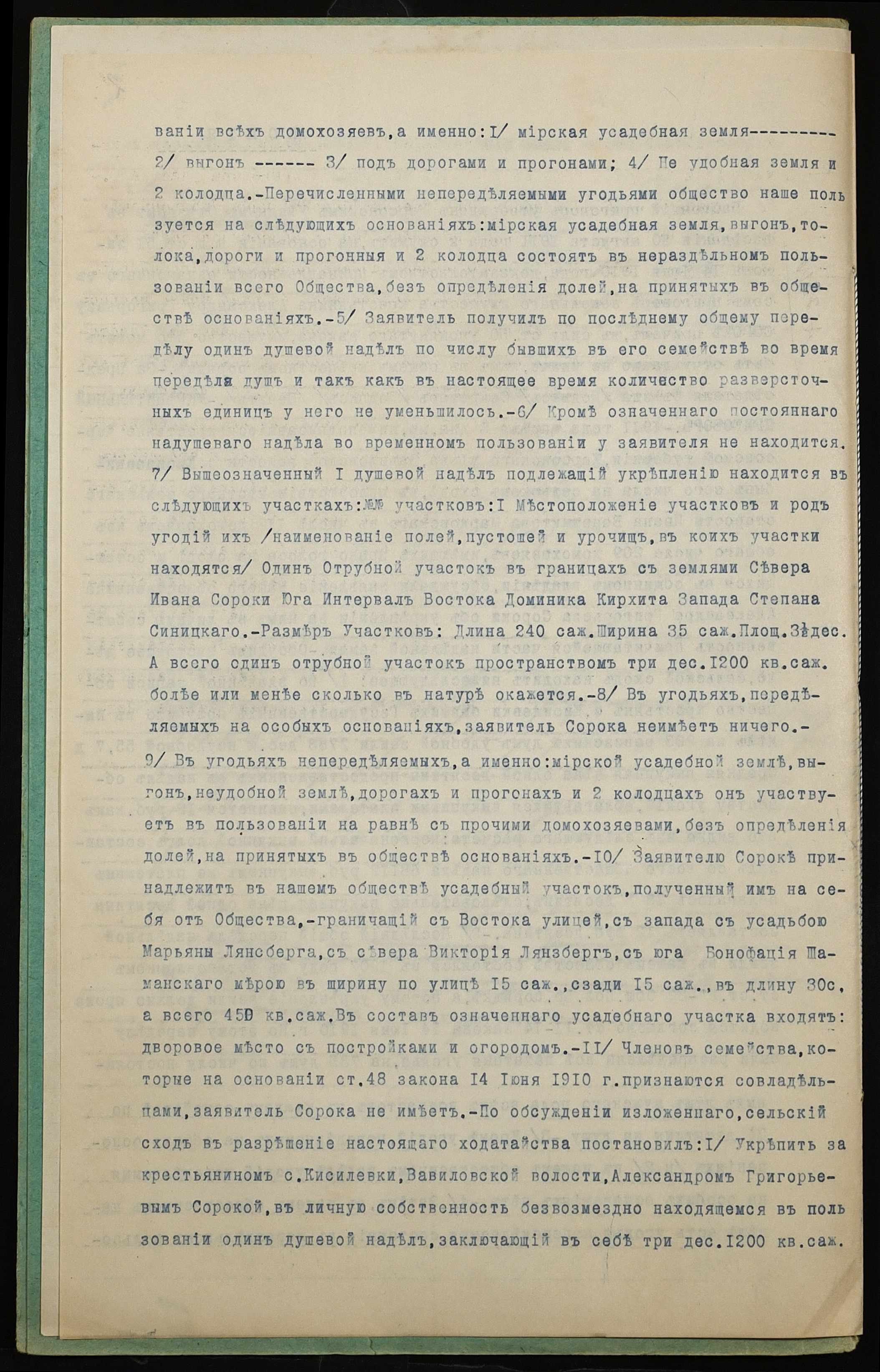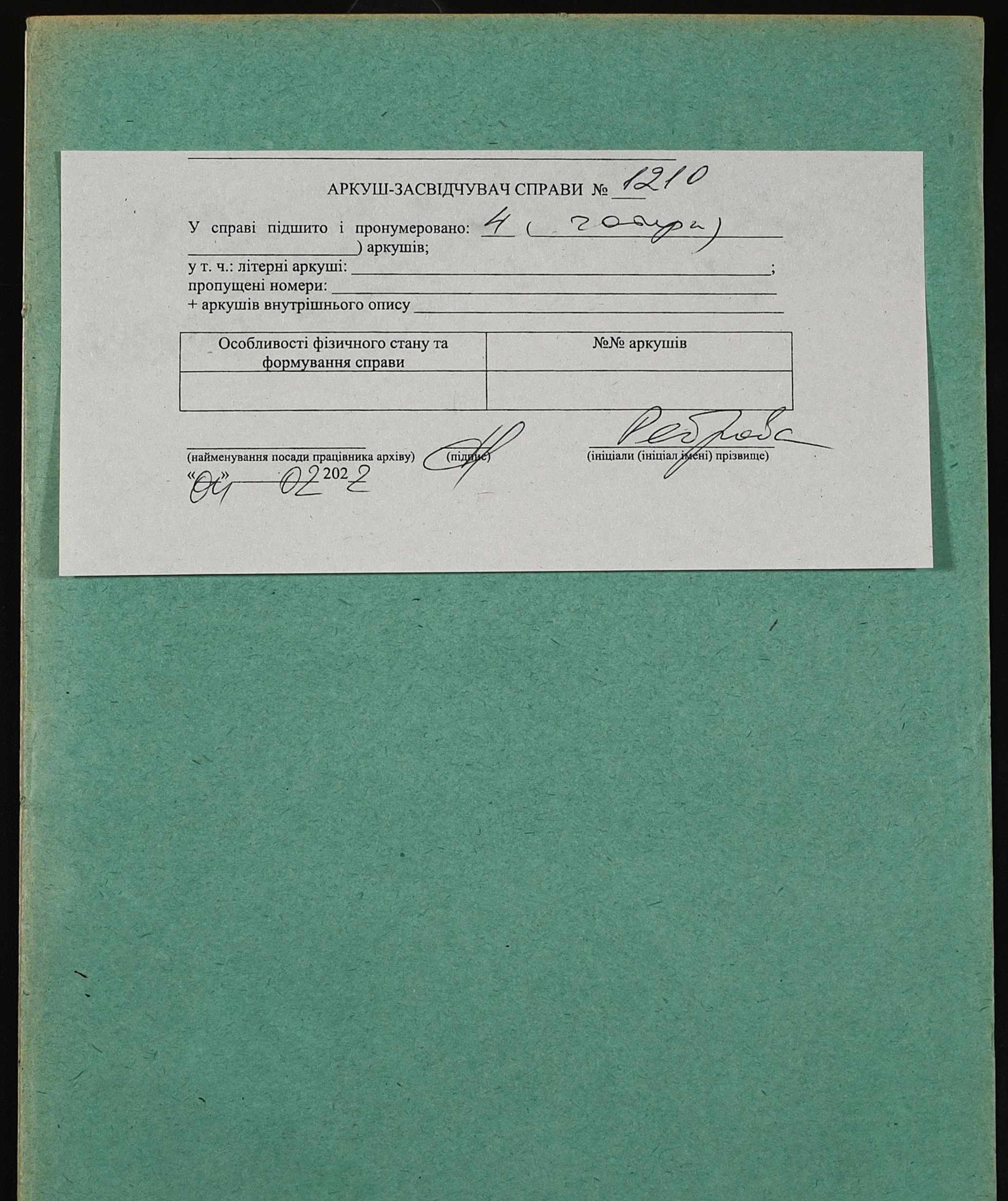 • • • • Справа № 1210 “Справа про вчинення купчої про продаж землі селянином Сорокою Олександром Григоровичем (Сорокой Александром Григорьевичем) на користь селянина Завадського Івана Францовича (Завадского Ивана Францевича)”