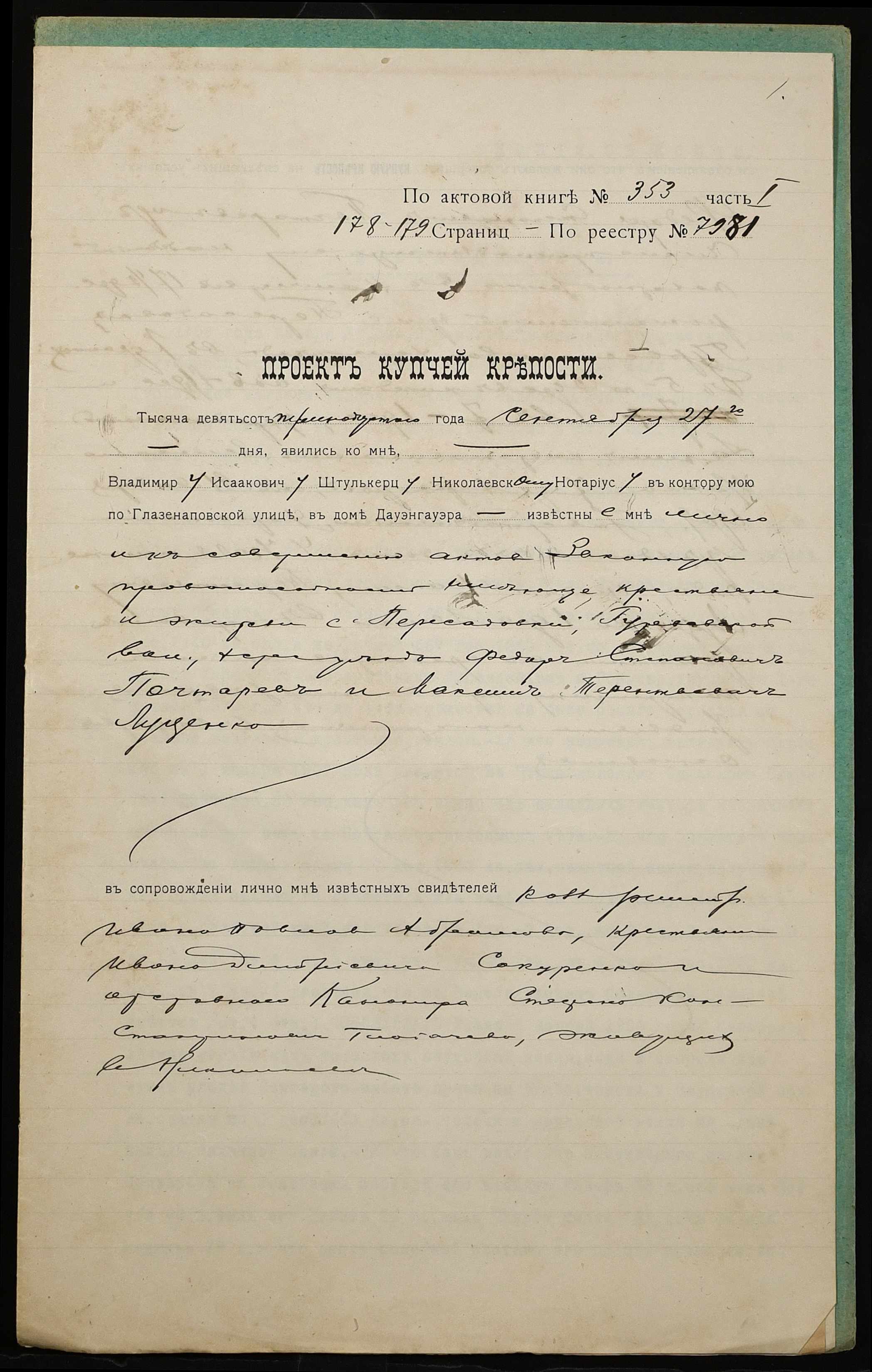◦ ◦ Фонд № 152 “Контора миколаївського нотаріуса Херсонського окружного суду Штулькерца Володимира Ісааковича”