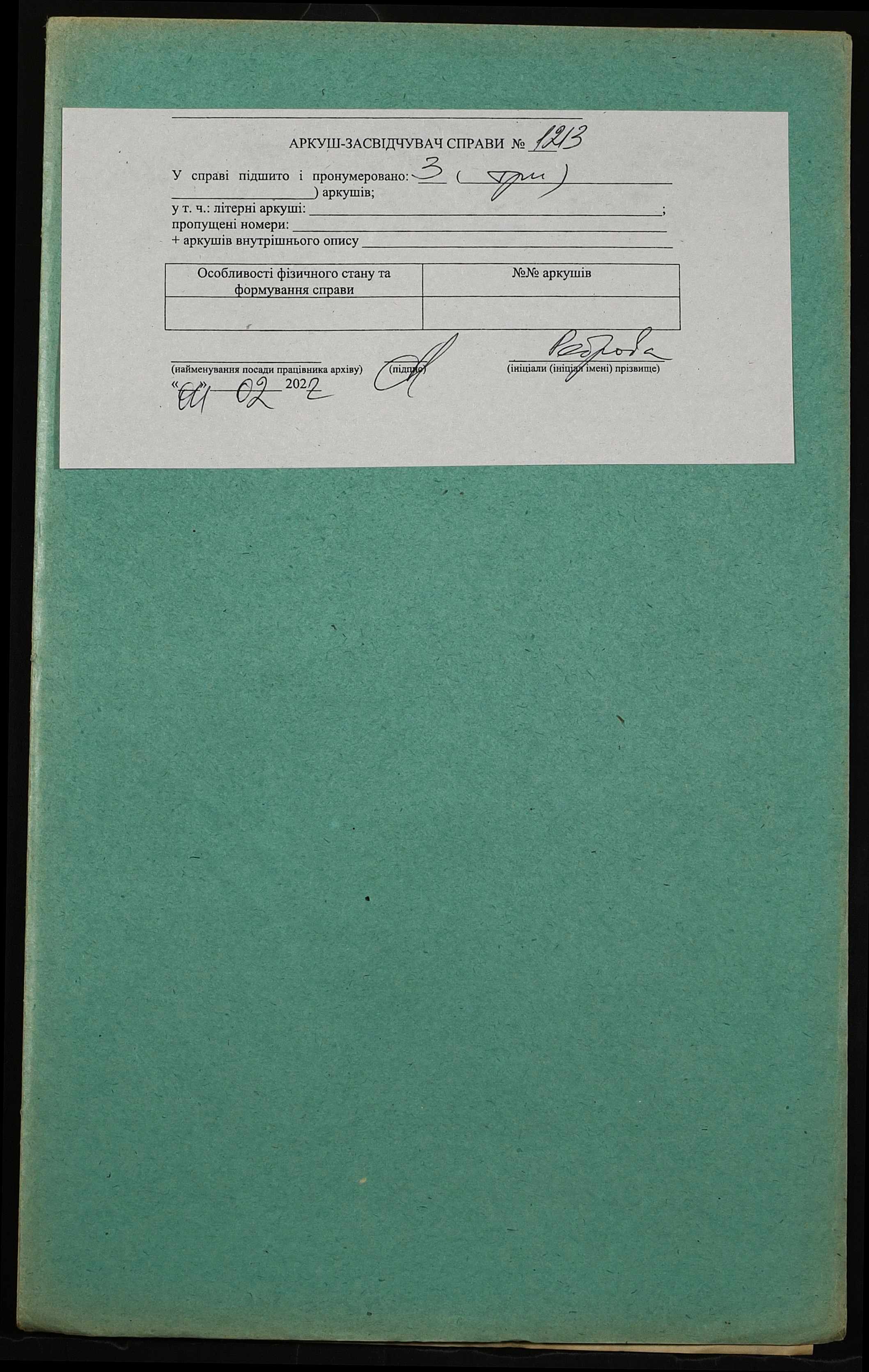 Фонд 152 / Опис 1 / Справа 1213