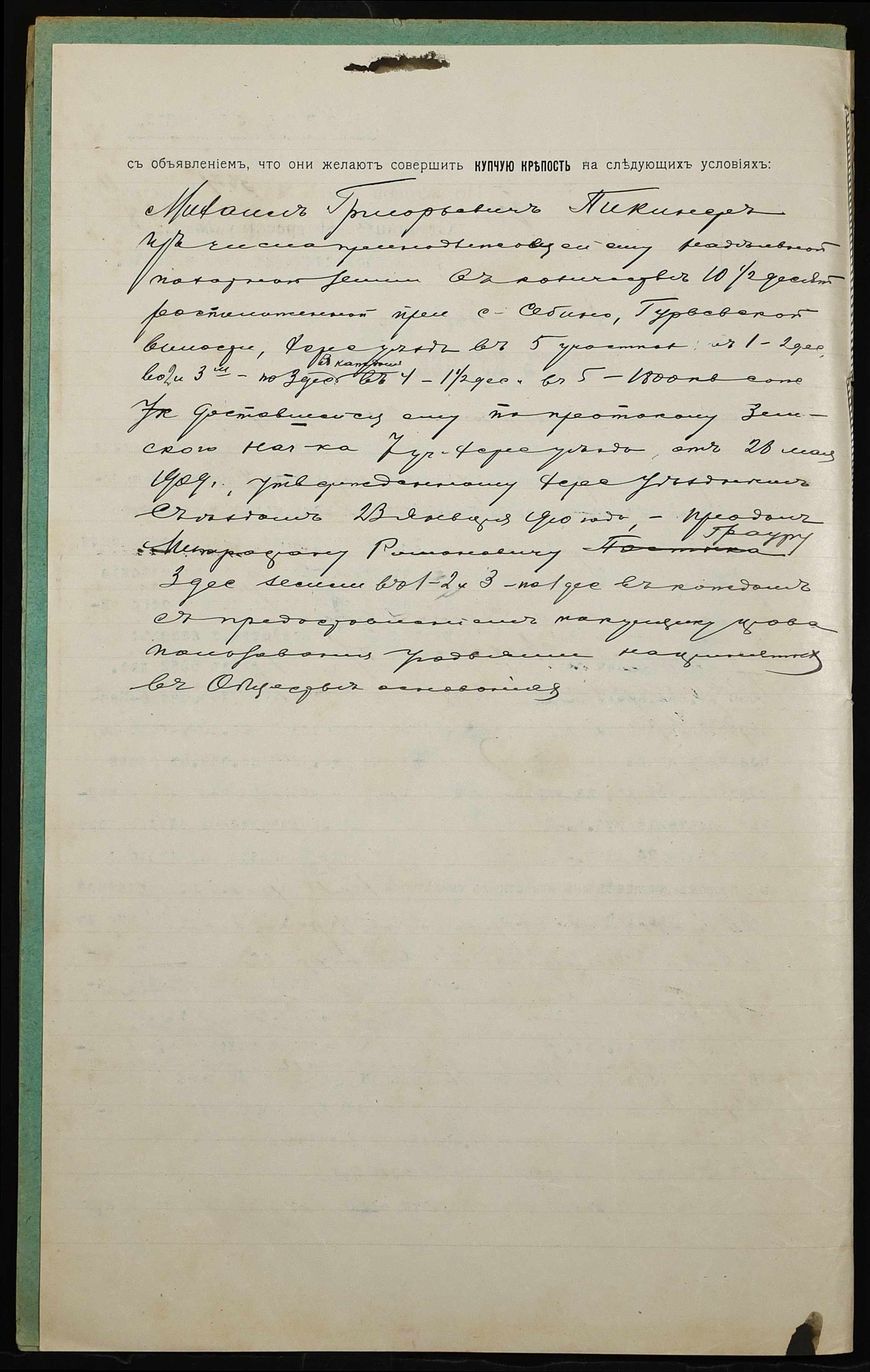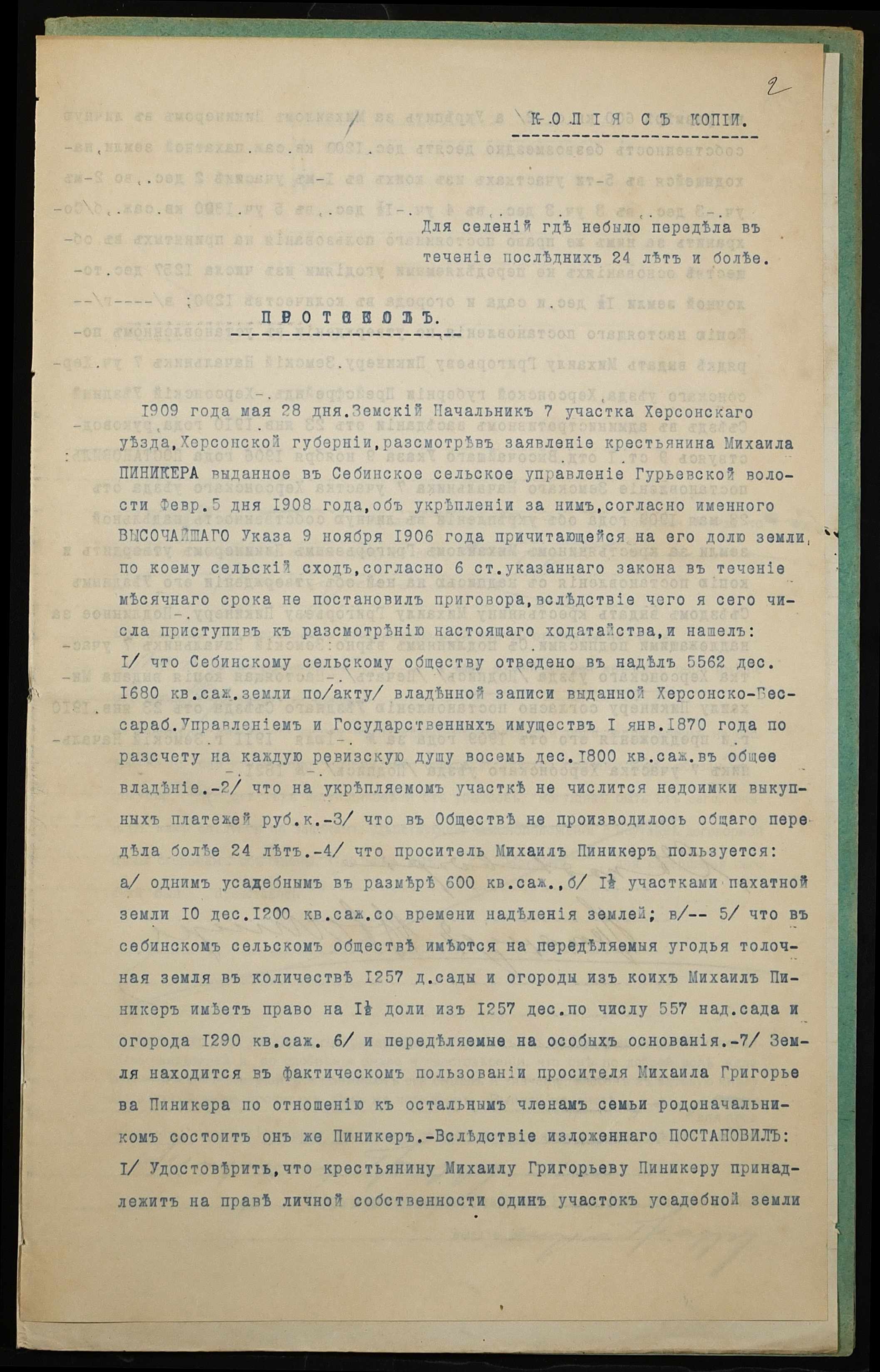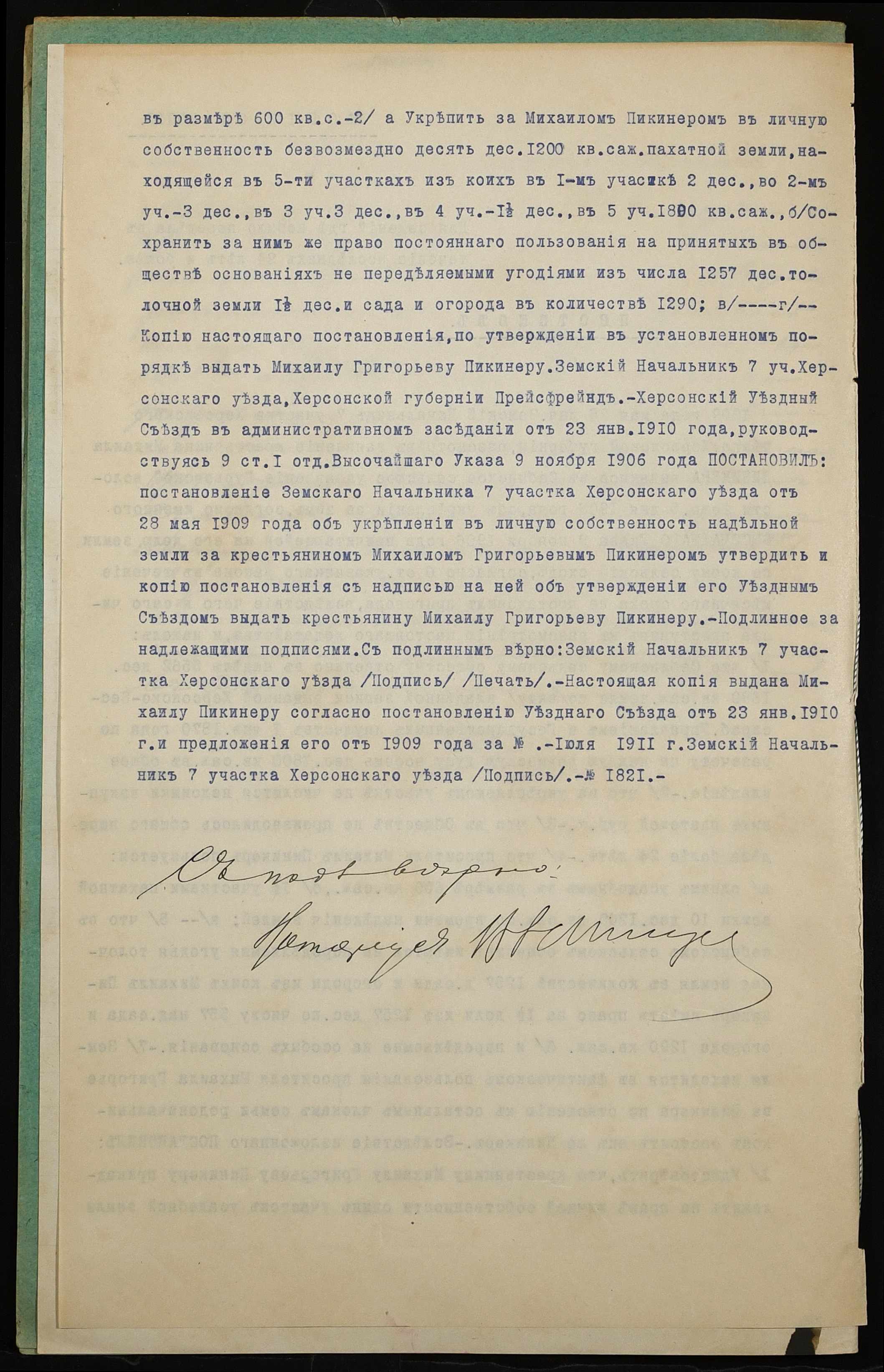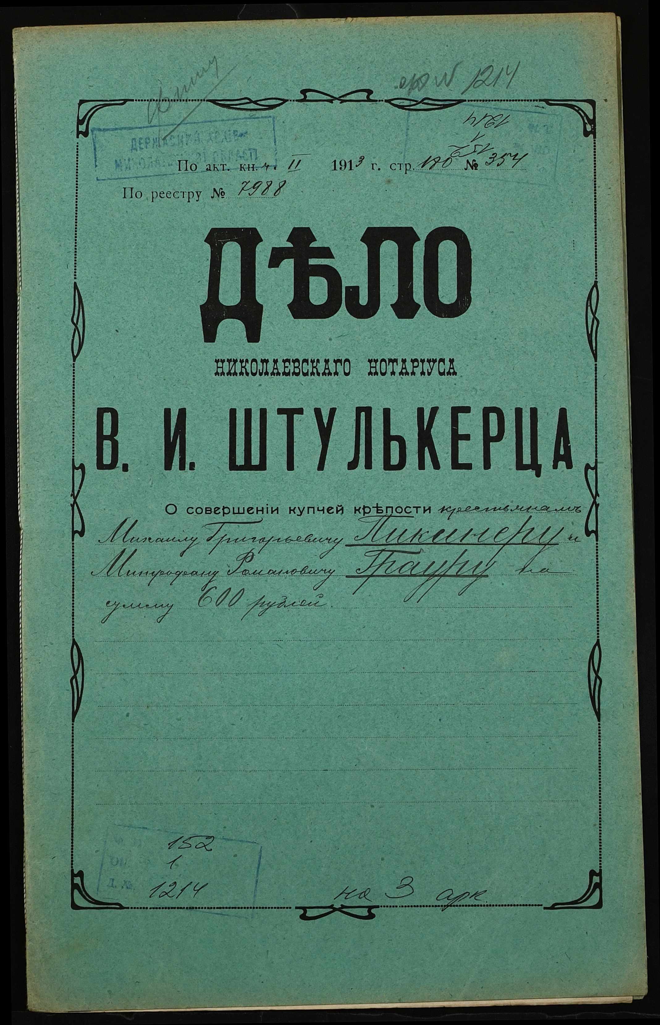 • • • • Справа № 1214 “Справа про вчинення купчої про продаж землі селянином Пікінером Михайлом Григоровичем (Пикинером Михаилом Григорьевичем) на користь селянина Граура Митрофана Романовича (Граура Митрофана Романовича)”