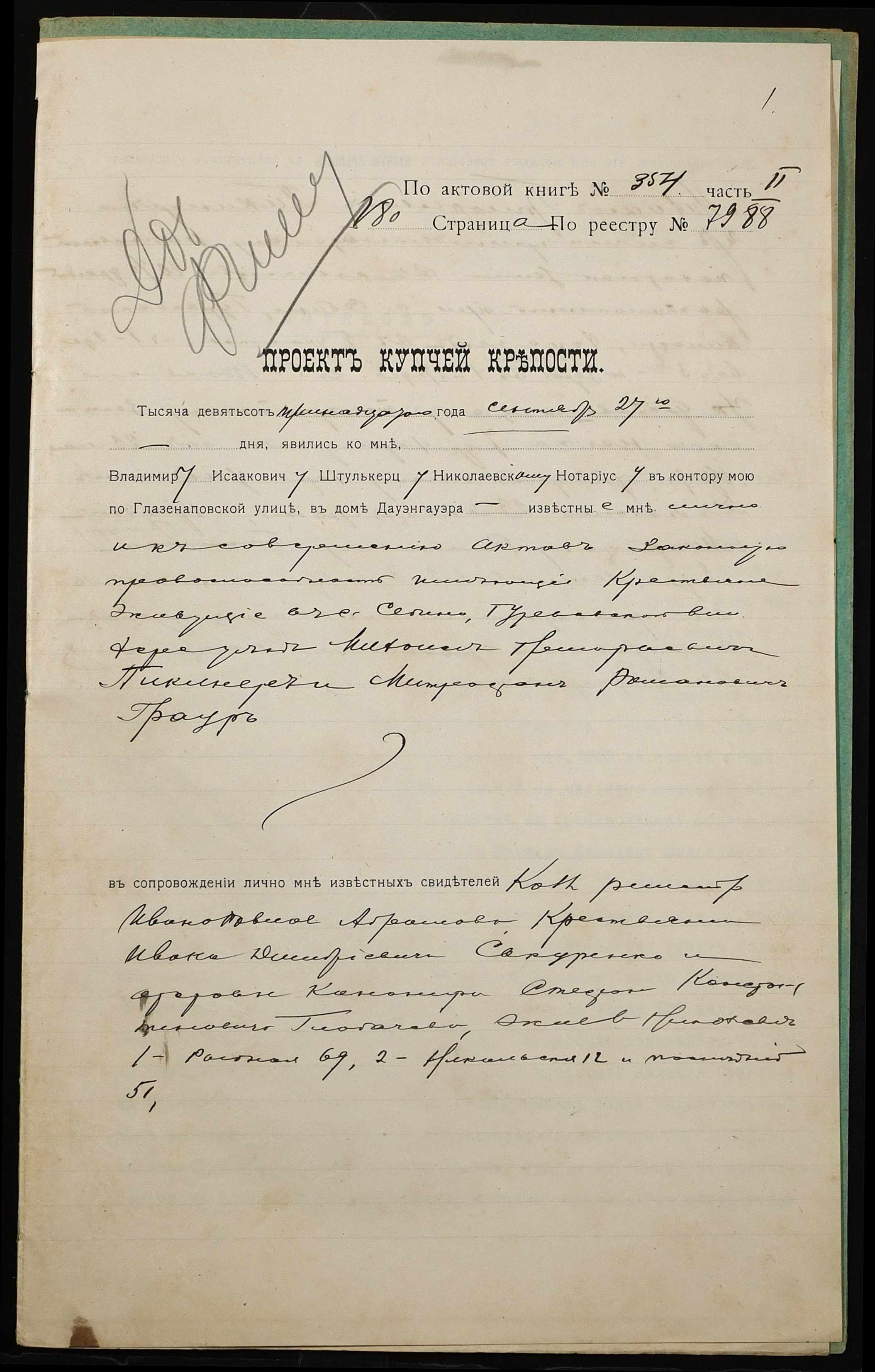 ◦ ◦ Фонд № 152 “Контора миколаївського нотаріуса Херсонського окружного суду Штулькерца Володимира Ісааковича”