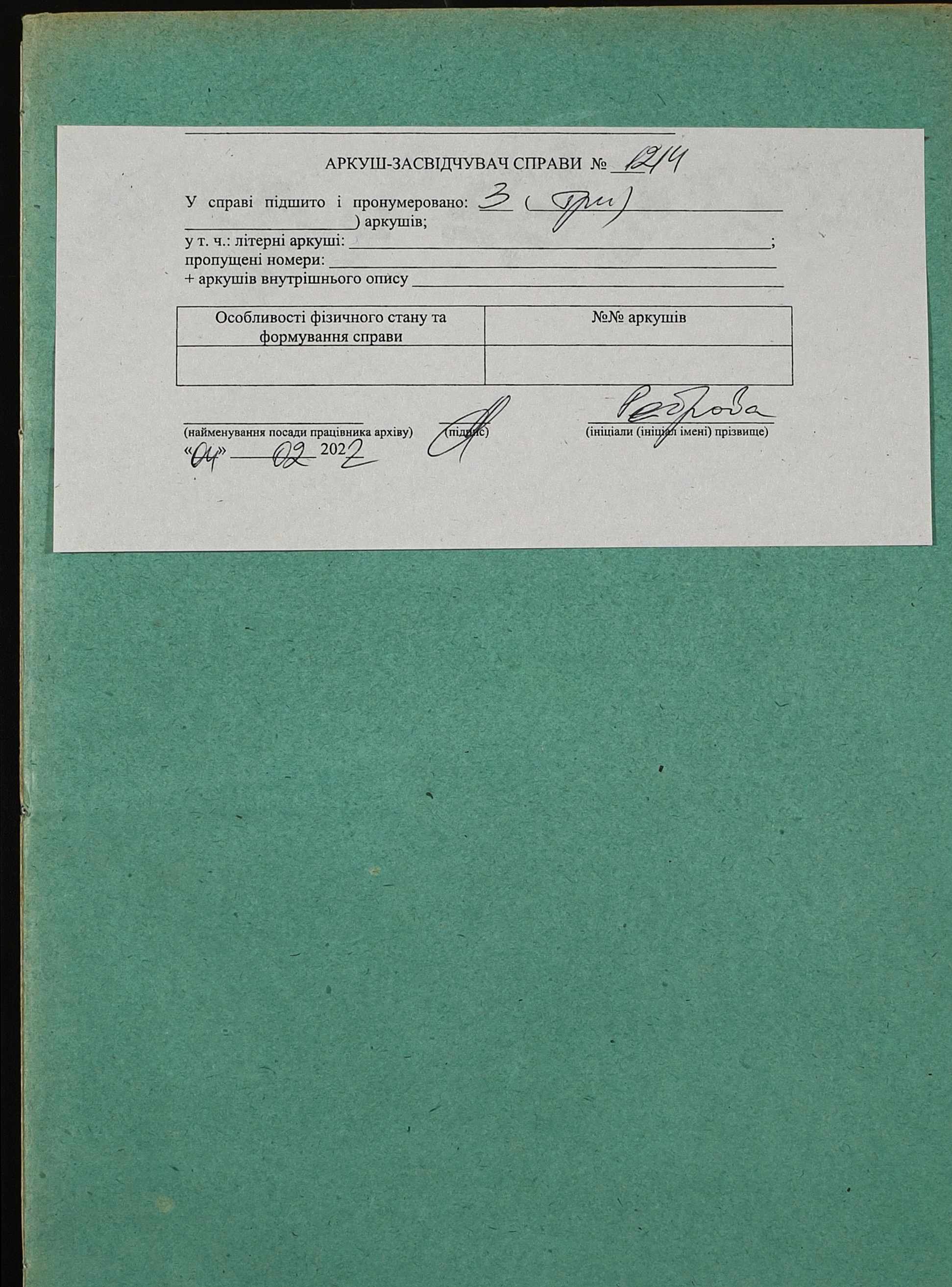 Фонд 152 / Опис 1 / Справа 1214