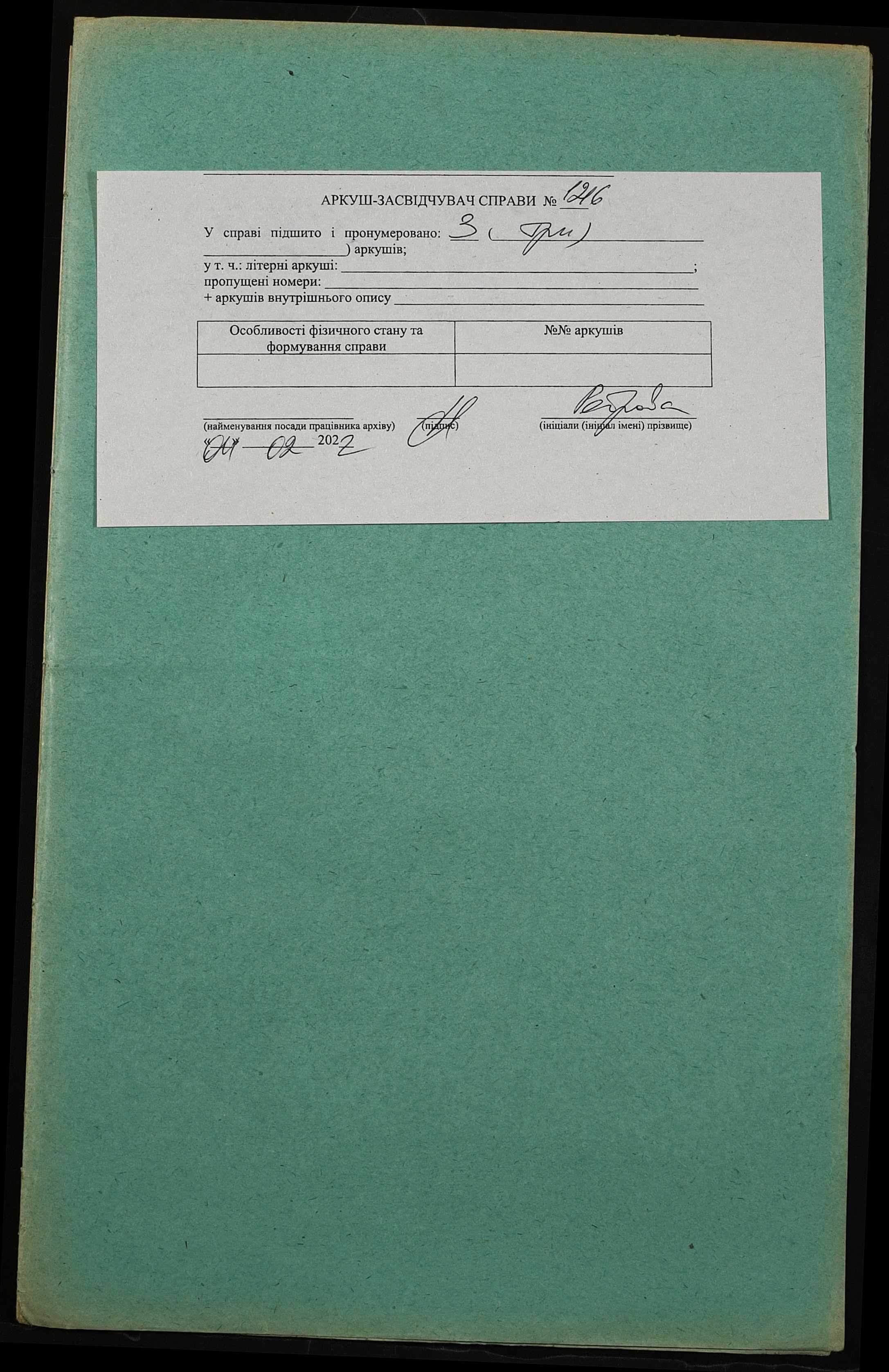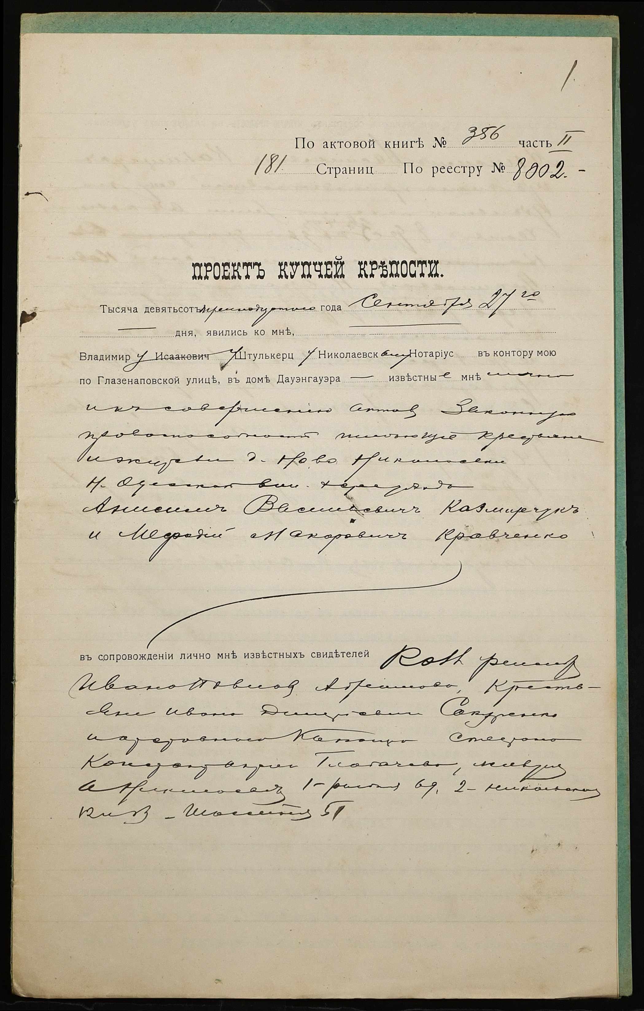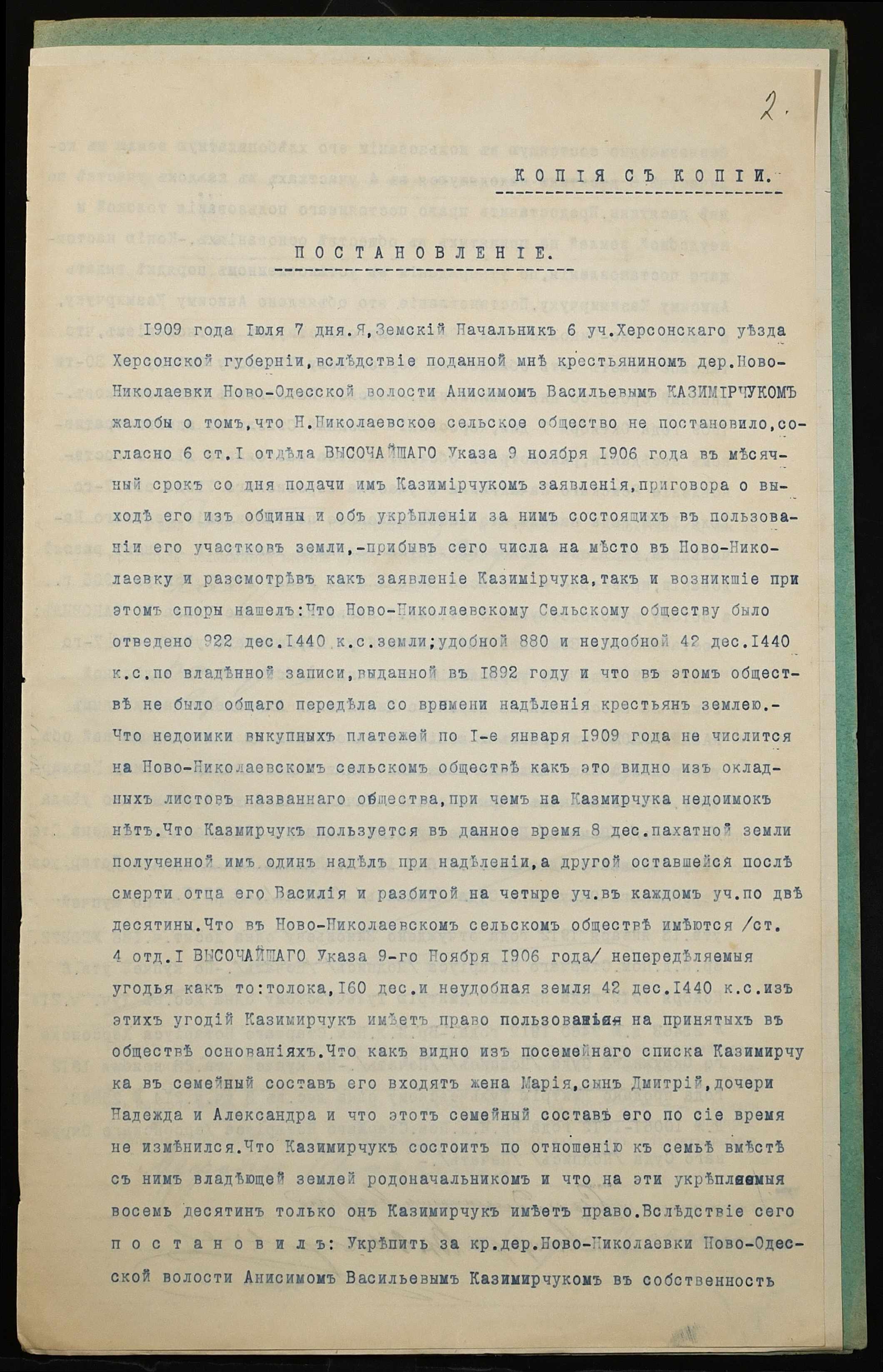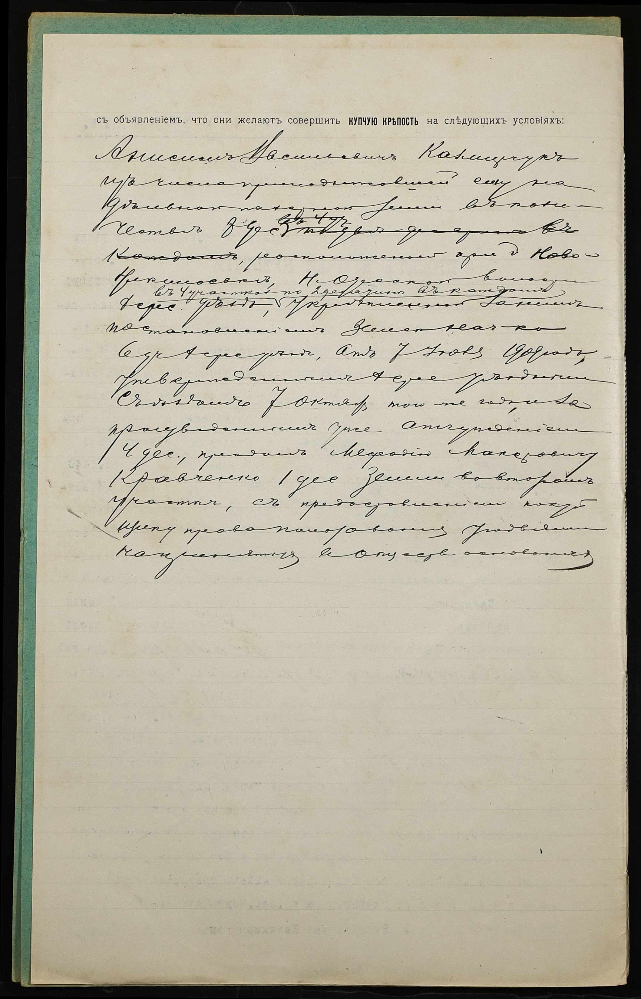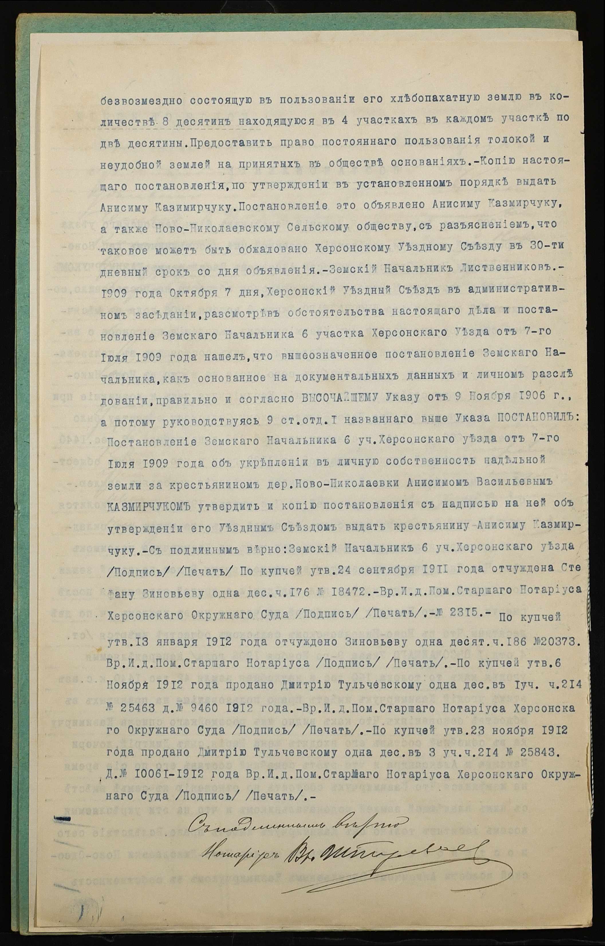 • • • • Справа № 1216 “Справа про вчинення купчої про продаж землі селянином Казмирчуком Онисимом Васильовичем (Казмирчуком Анисимом Васильевичем) на користь селянина Кравченка Мефодія Макаровича (Кравченко Мефодия Макаровича)”