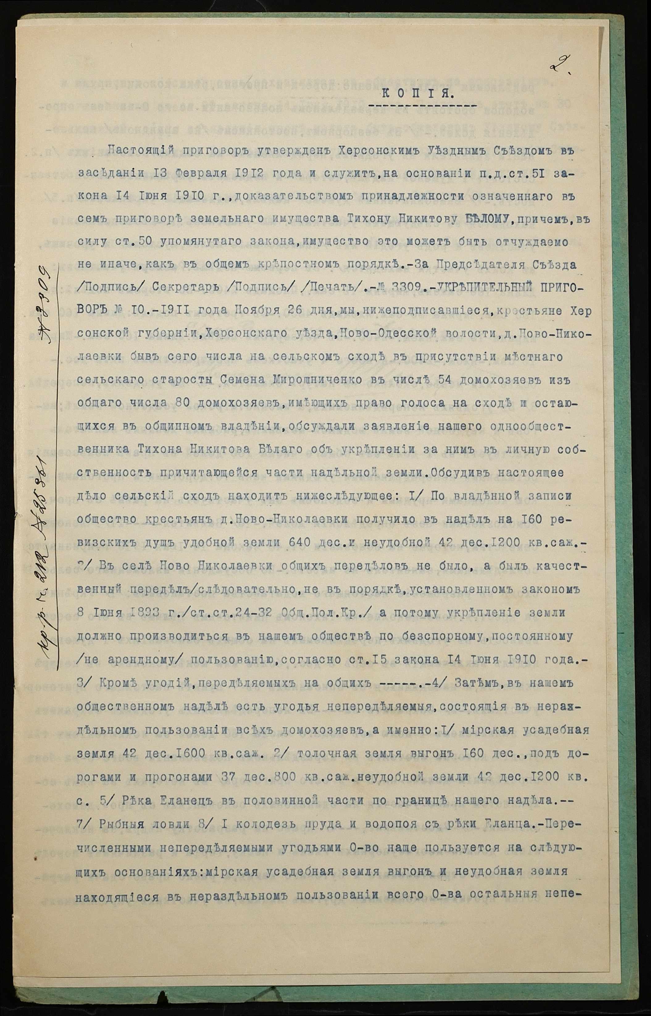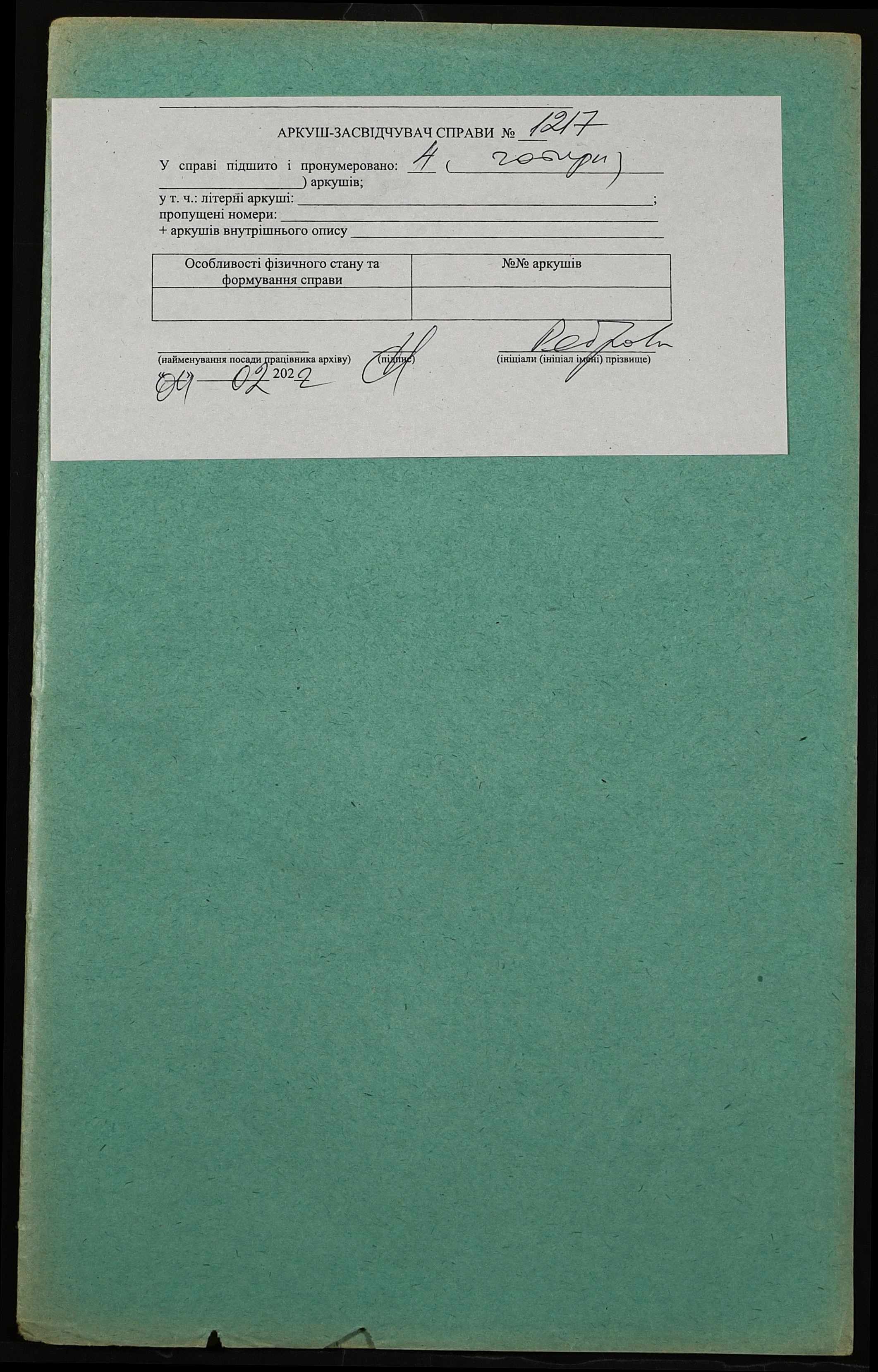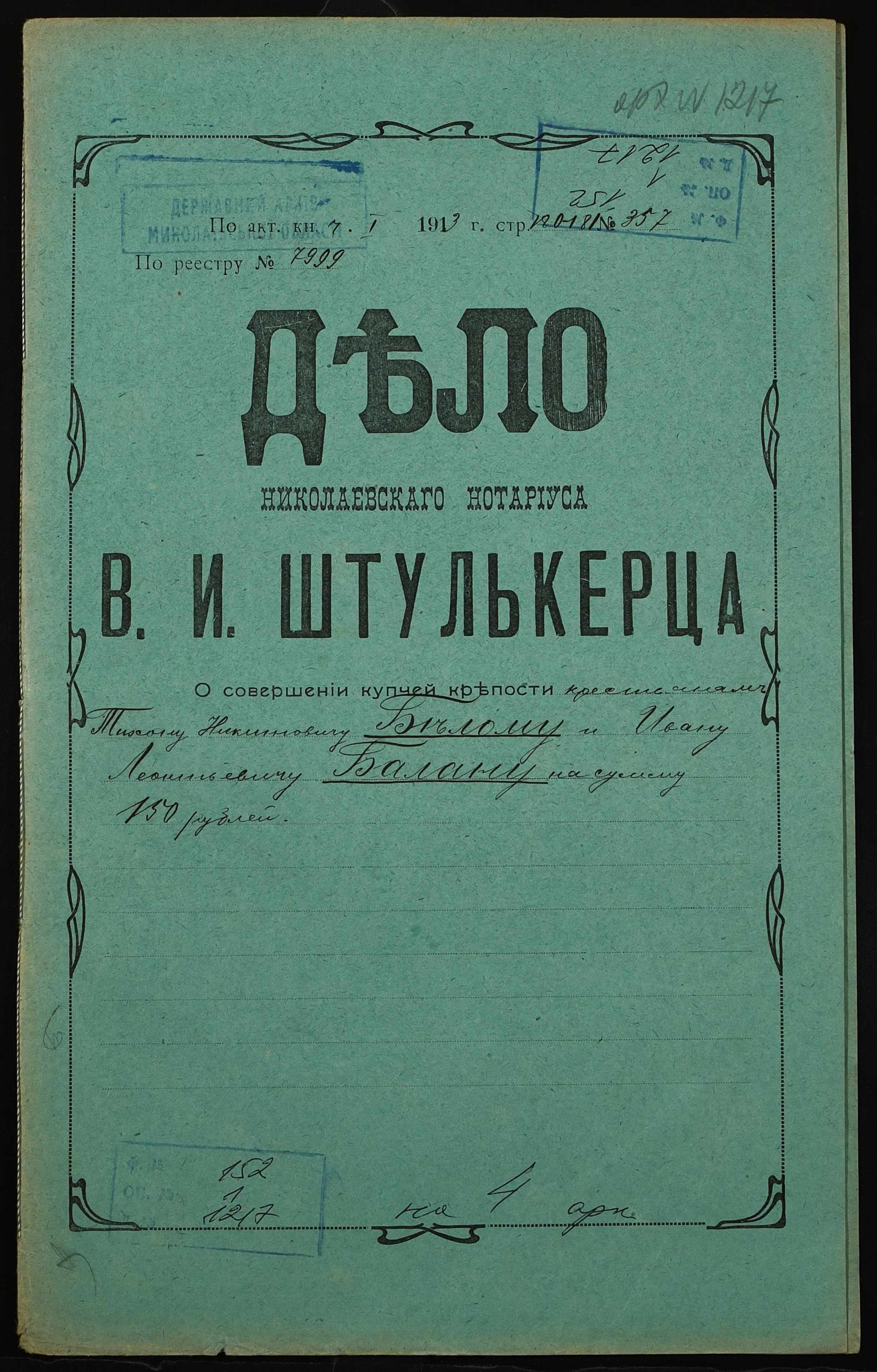 • • • • Справа № 1217 “Справа про вчинення купчої про продаж землі селянином Бєлим Тихоном Микитовичем (Белым Тихоном Никитовичем) на користь селянина Балана Івана Леонтійовича (Балана Ивана Леонтьевича)”