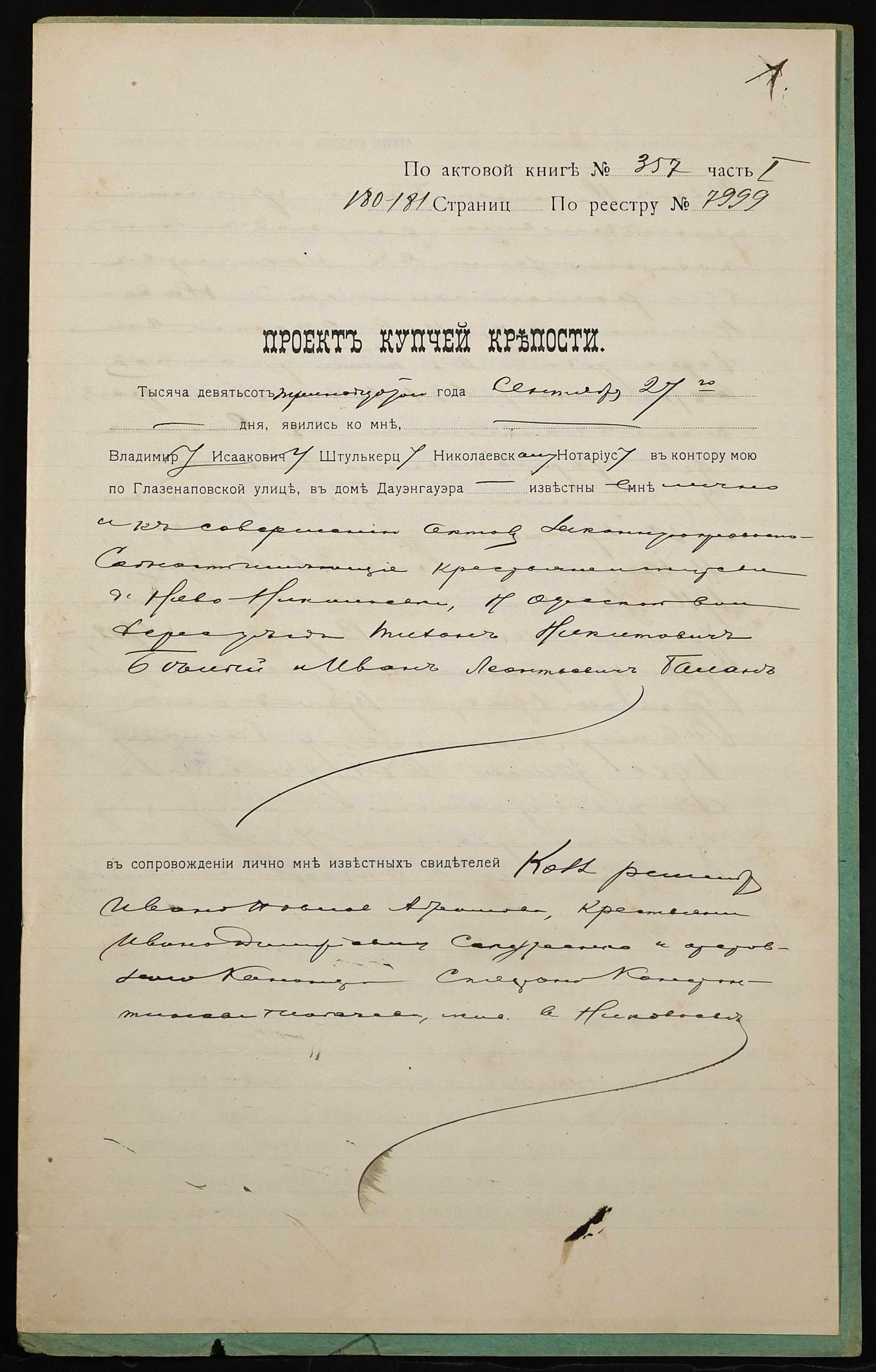 ◦ ◦ Фонд № 152 “Контора миколаївського нотаріуса Херсонського окружного суду Штулькерца Володимира Ісааковича”